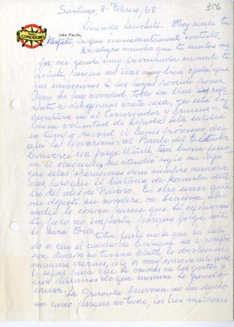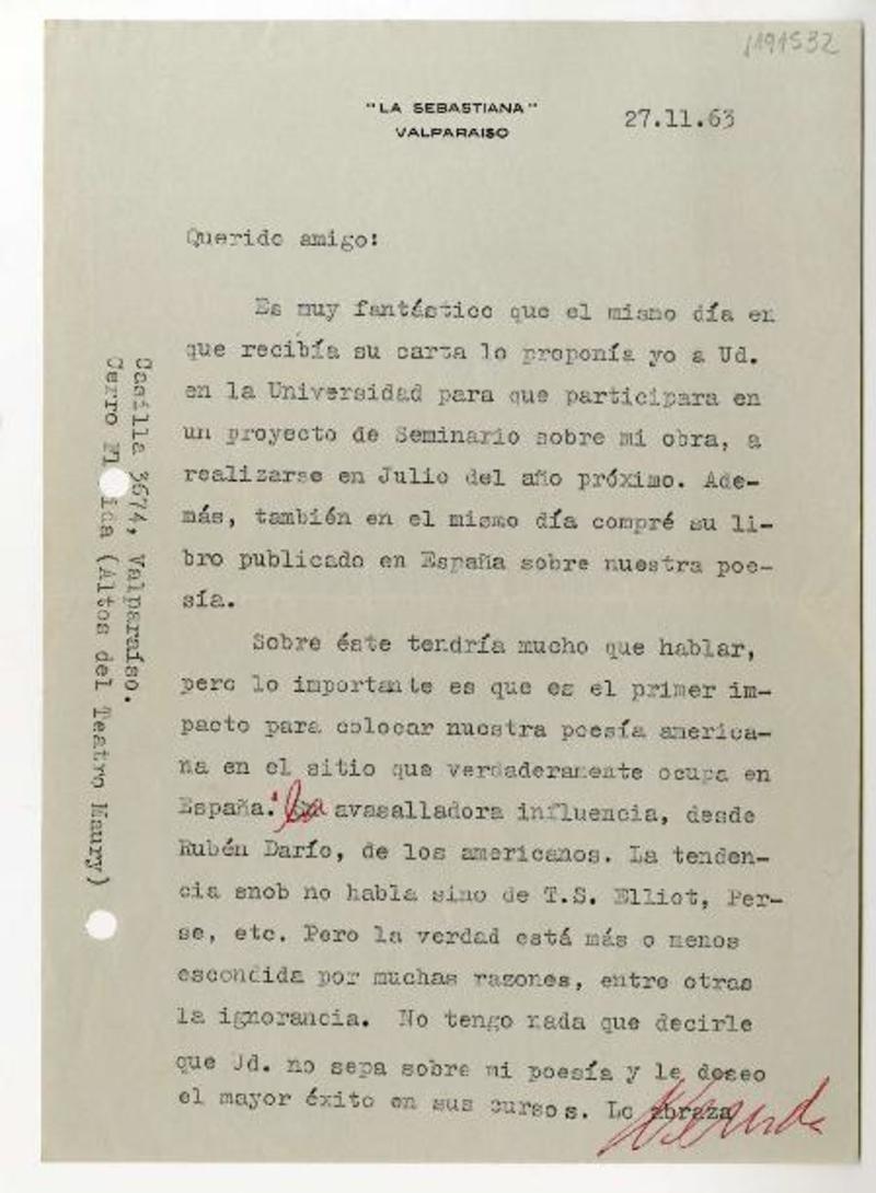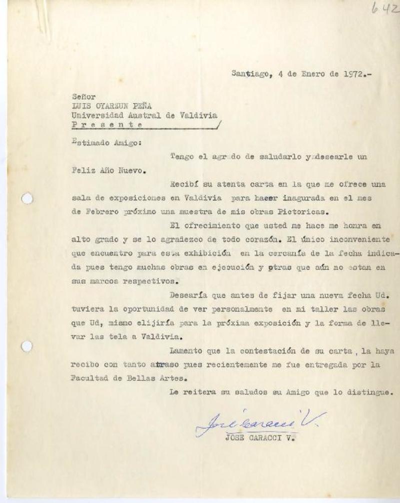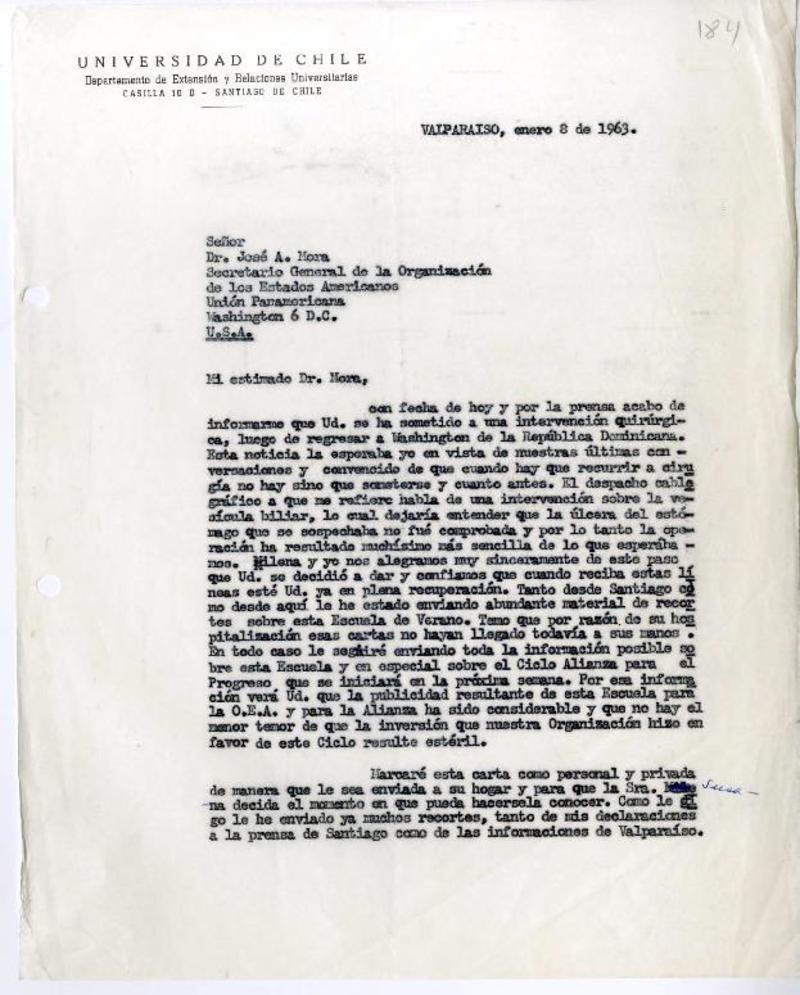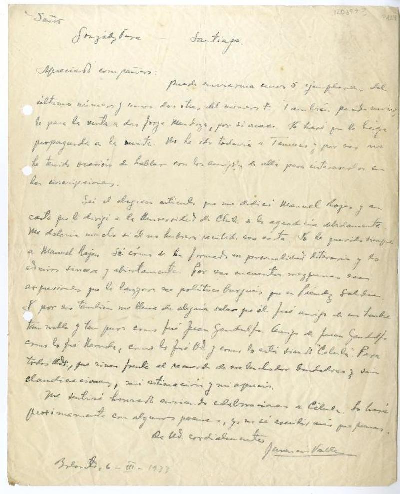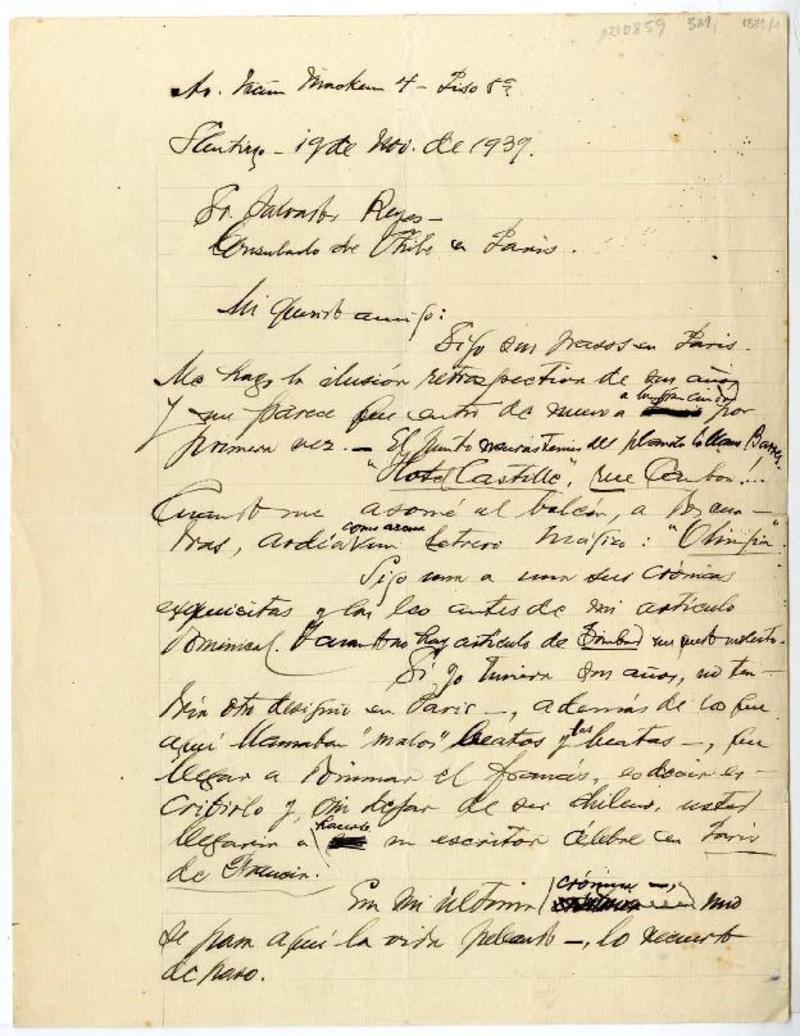 Valparaíso, Chile [a] Oscar Castro Carta, 1939 enero 6, [manuscrito] Augusto d'Halmar.