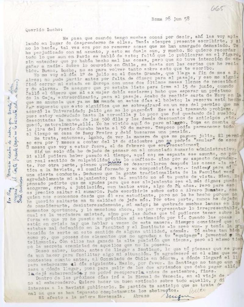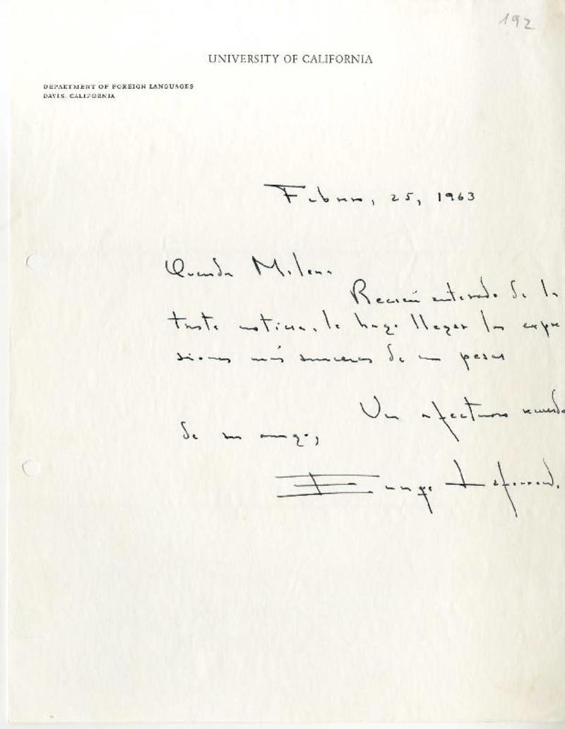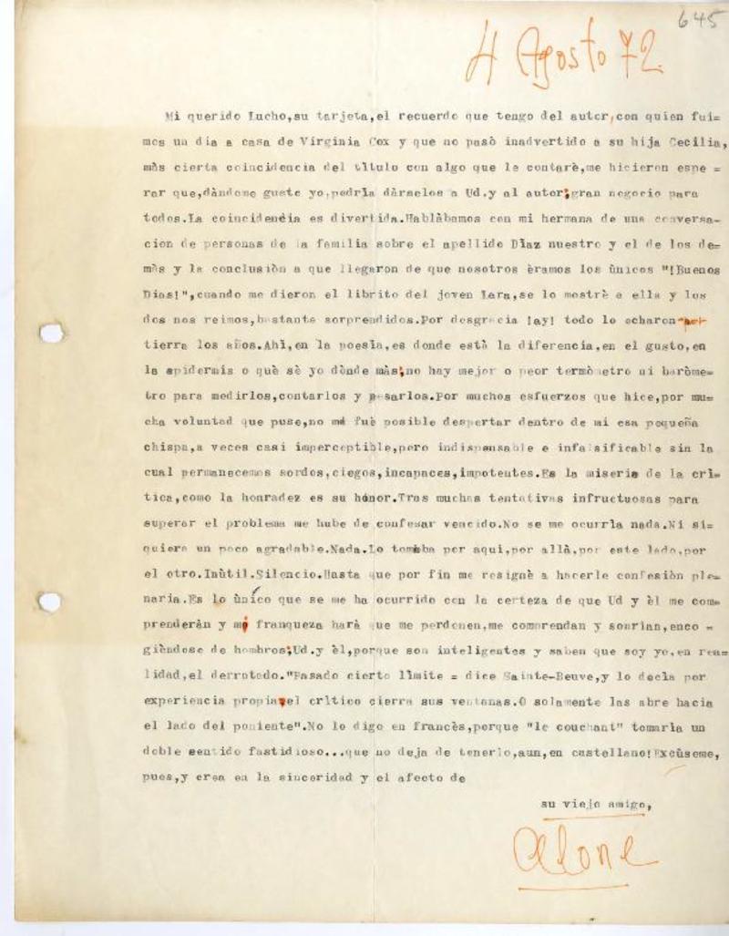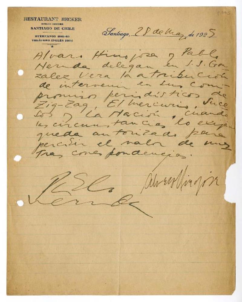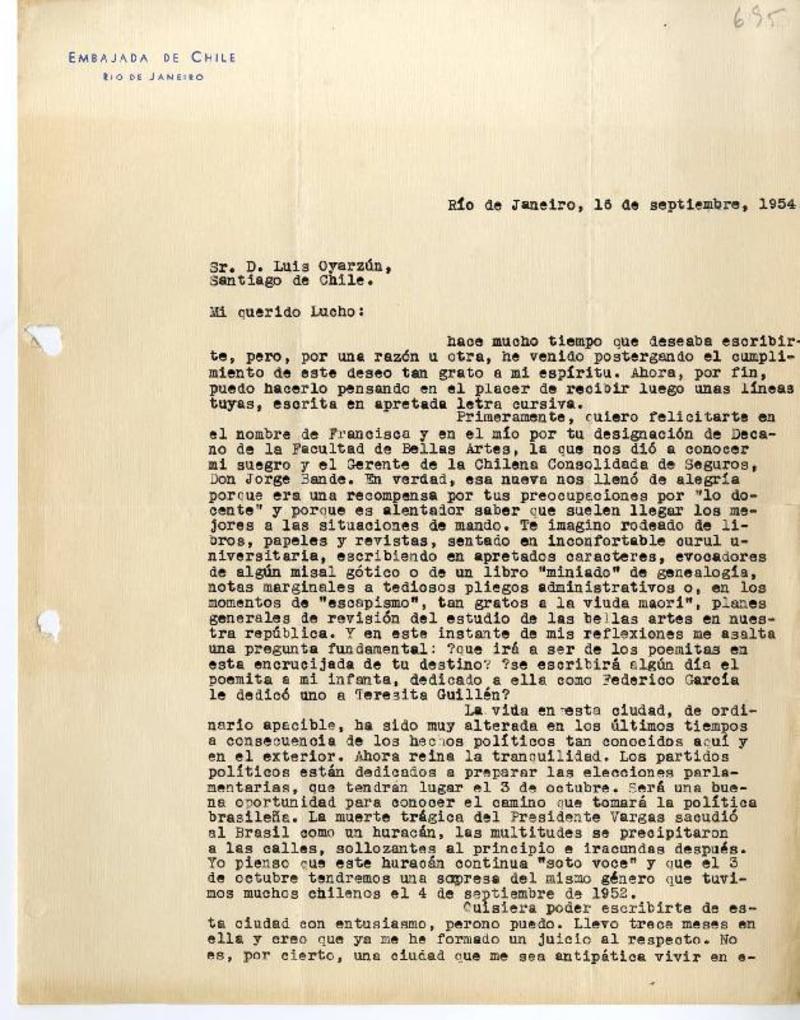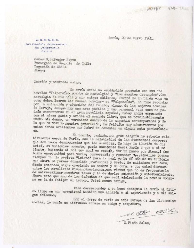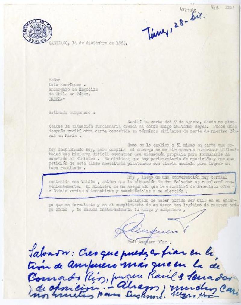 Herrera, Felipe - Correspondencia - Autores chilenos - Manuscritos chilenos - Reyes, Salvador