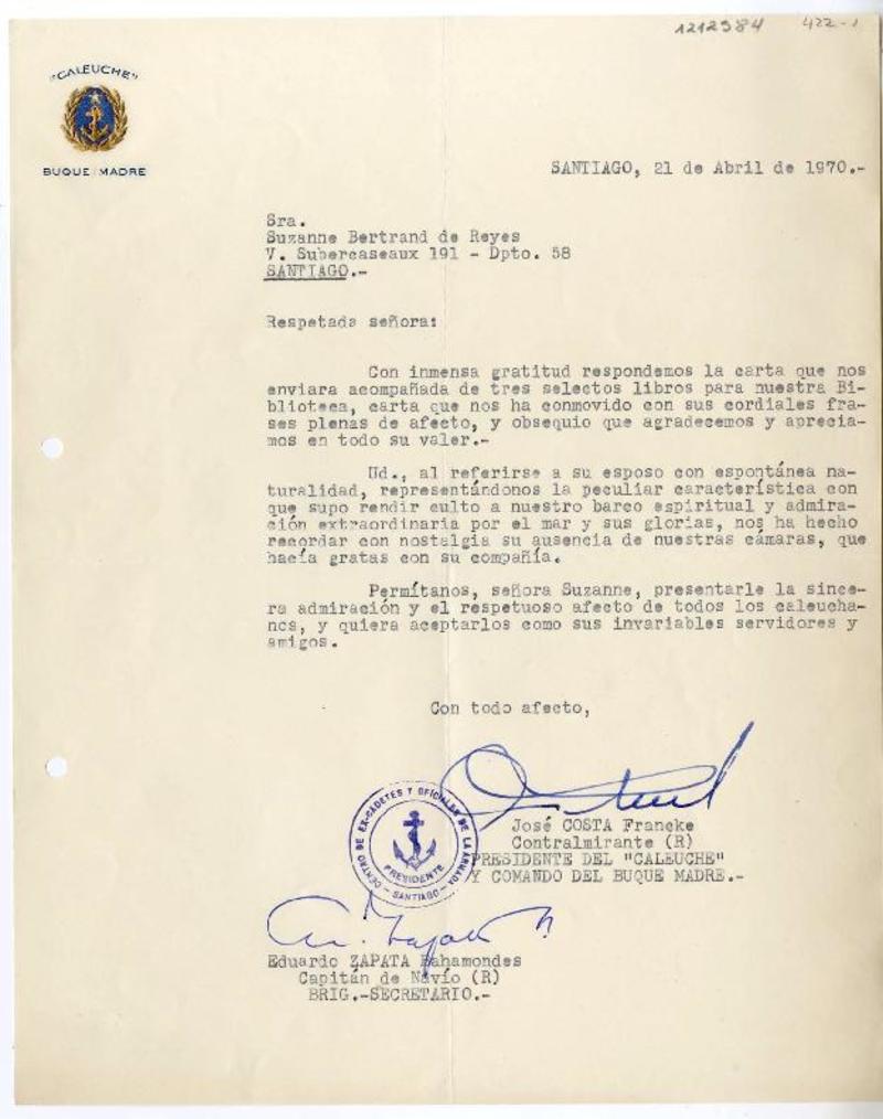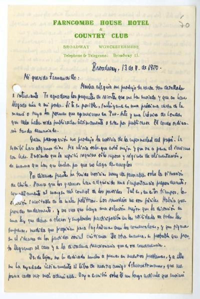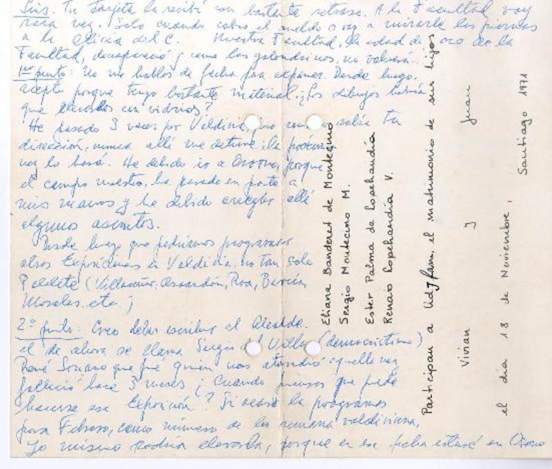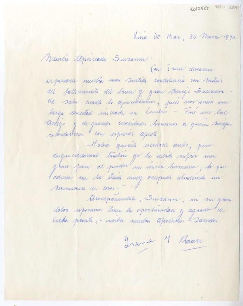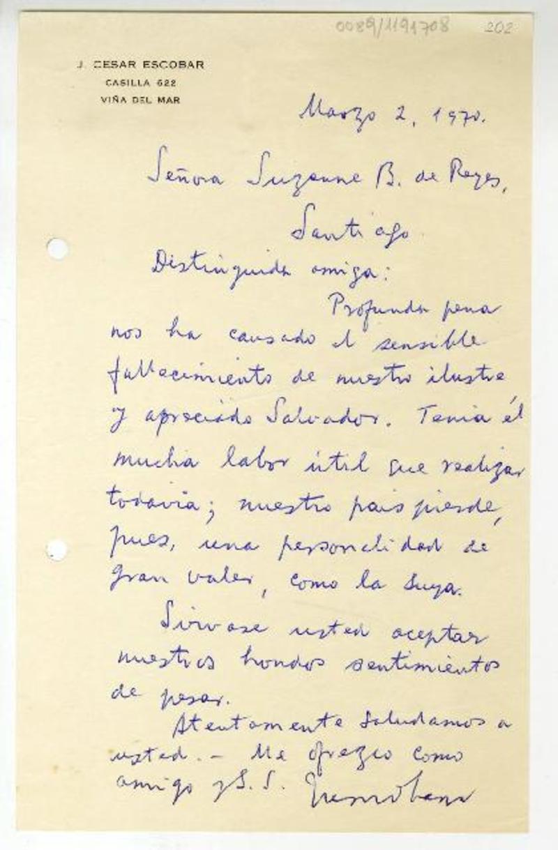 Viña del Mar, Chile [a] Suzanne Bertrand Carta, 1970 marzo 2, [manuscrito] Juan César Escobar.