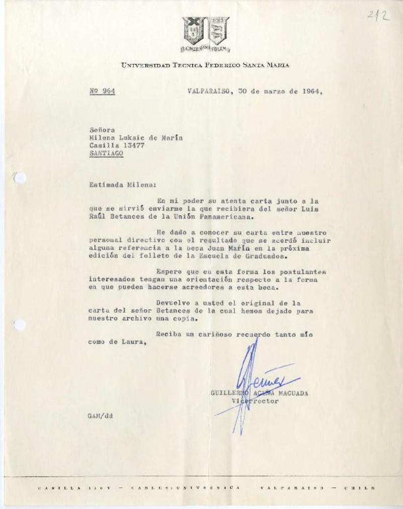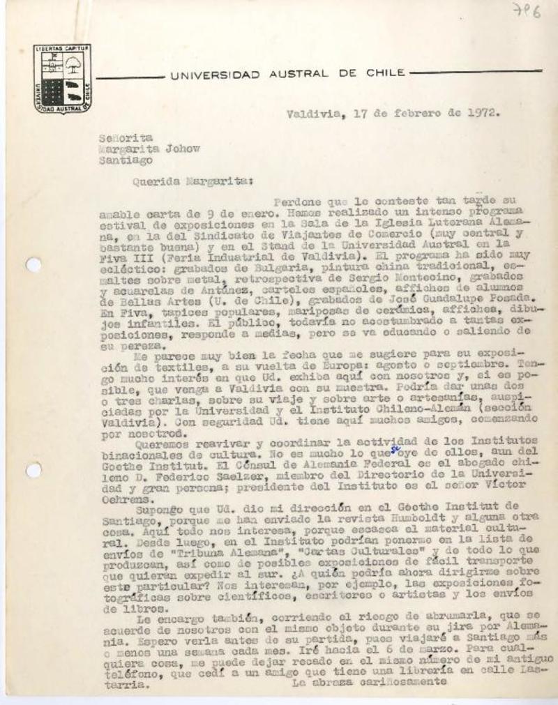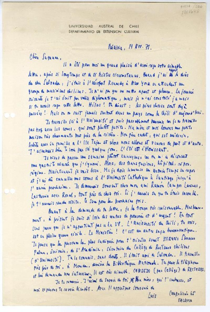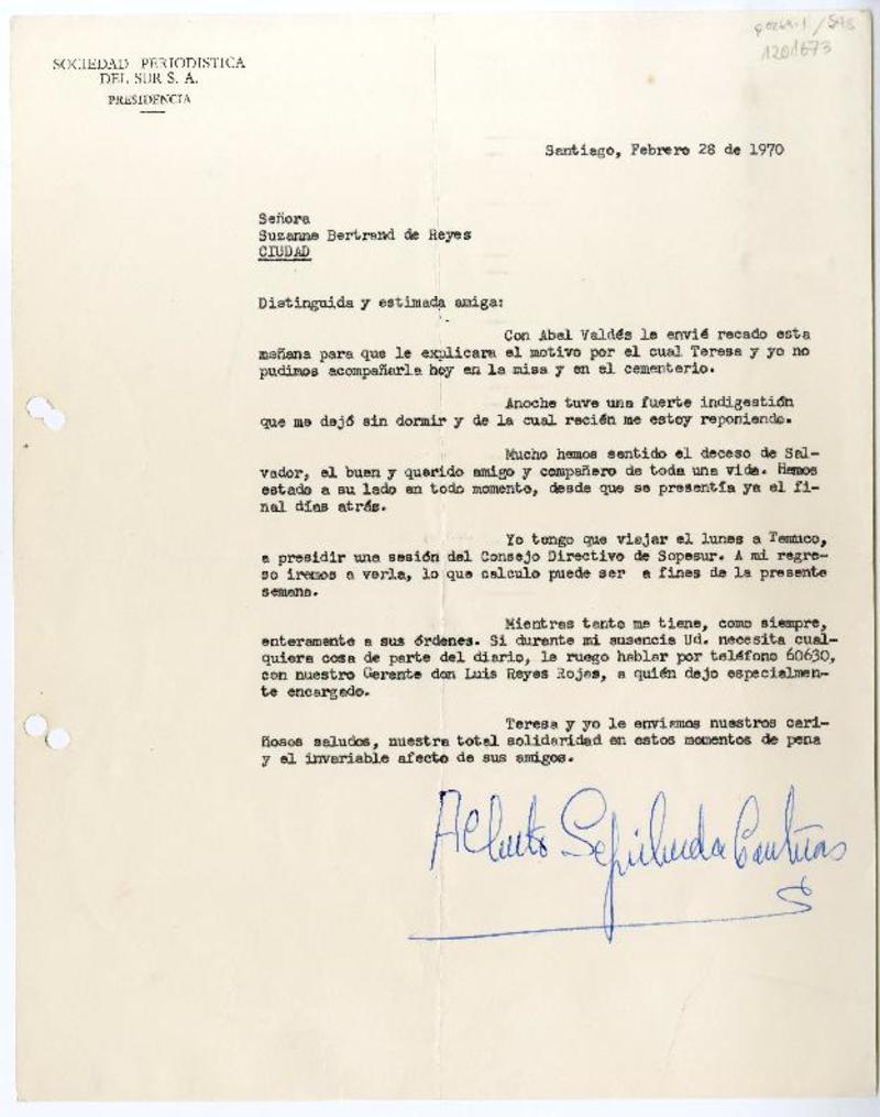 Viña del Mar, Chile [a] Suzanne Bertrand Carta, 1970 marzo 2, [manuscrito] Juan César Escobar.
