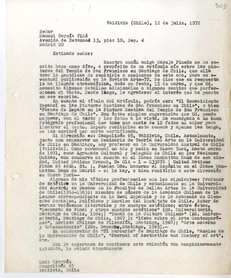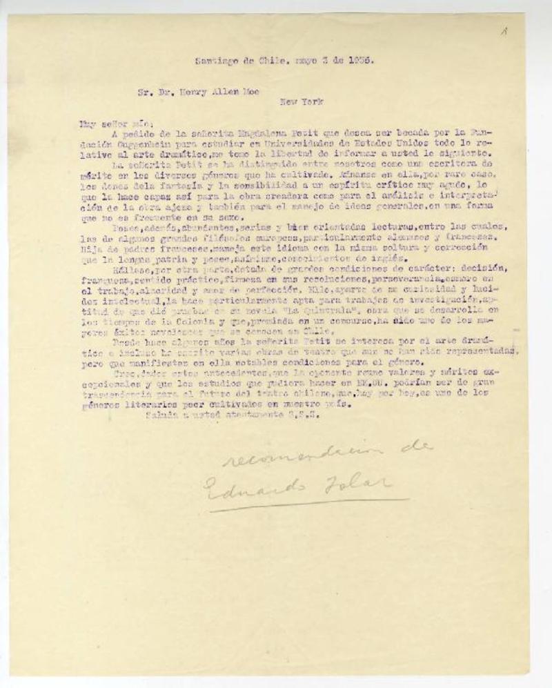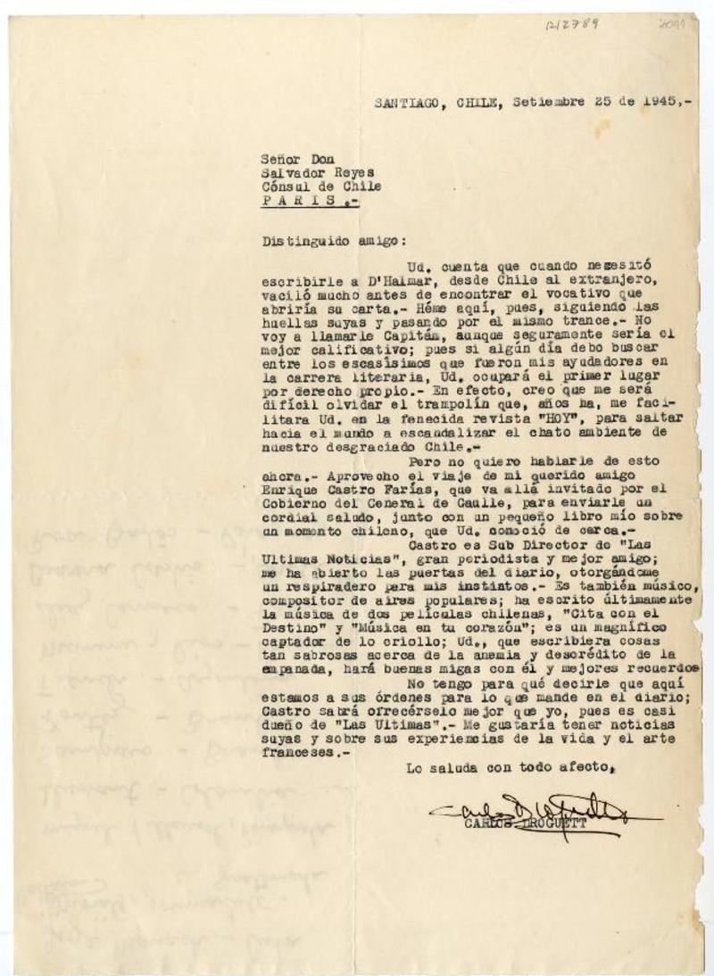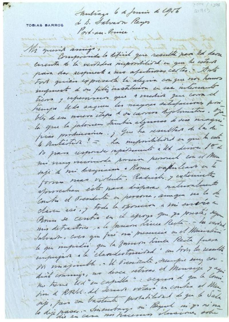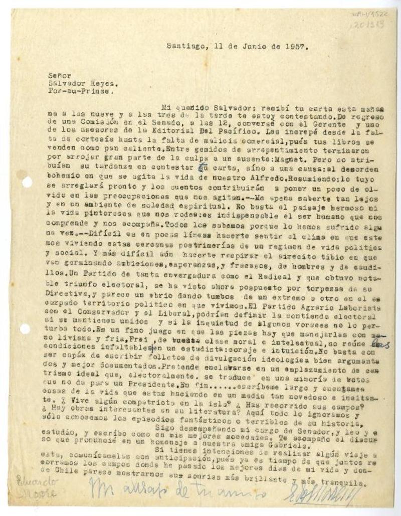 Titus Fonseca, Eduardo - Correspondencia - Autores chilenos - Manuscritos chilenos - Reyes, Salvador