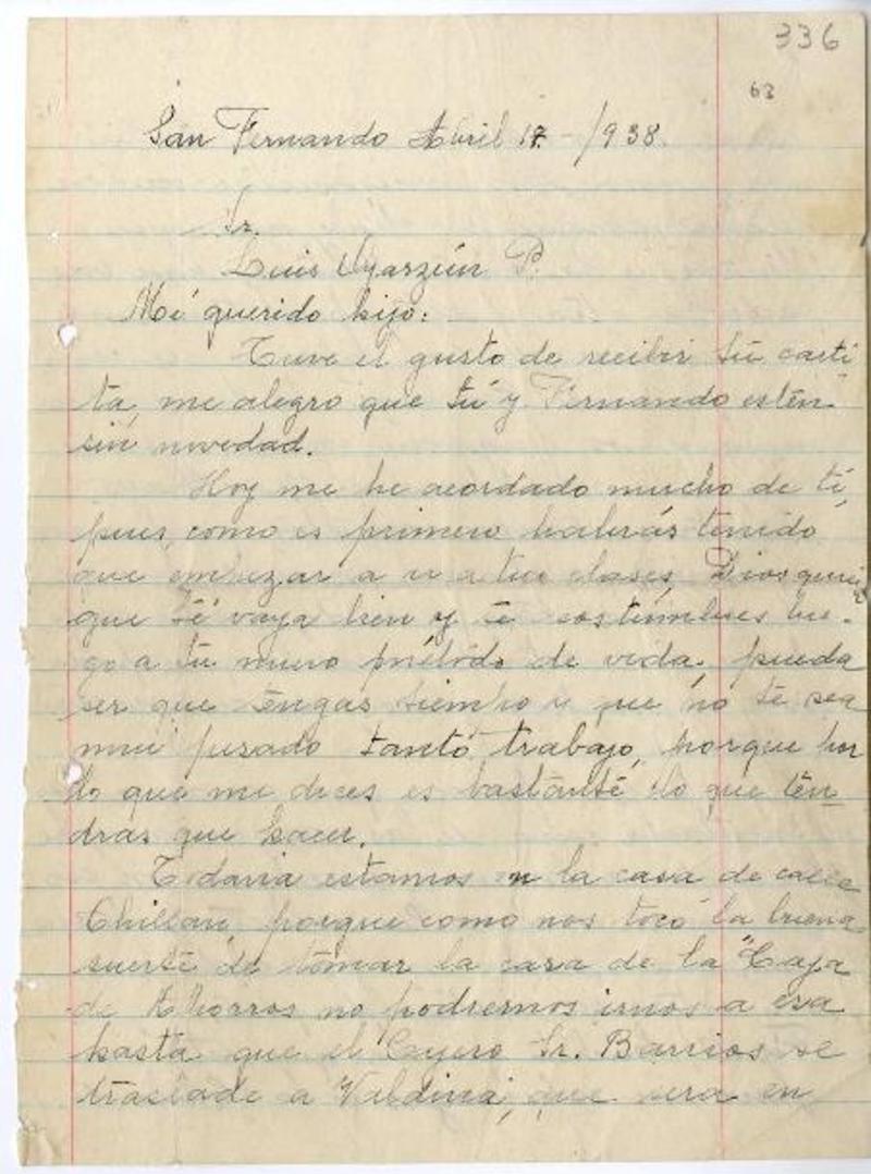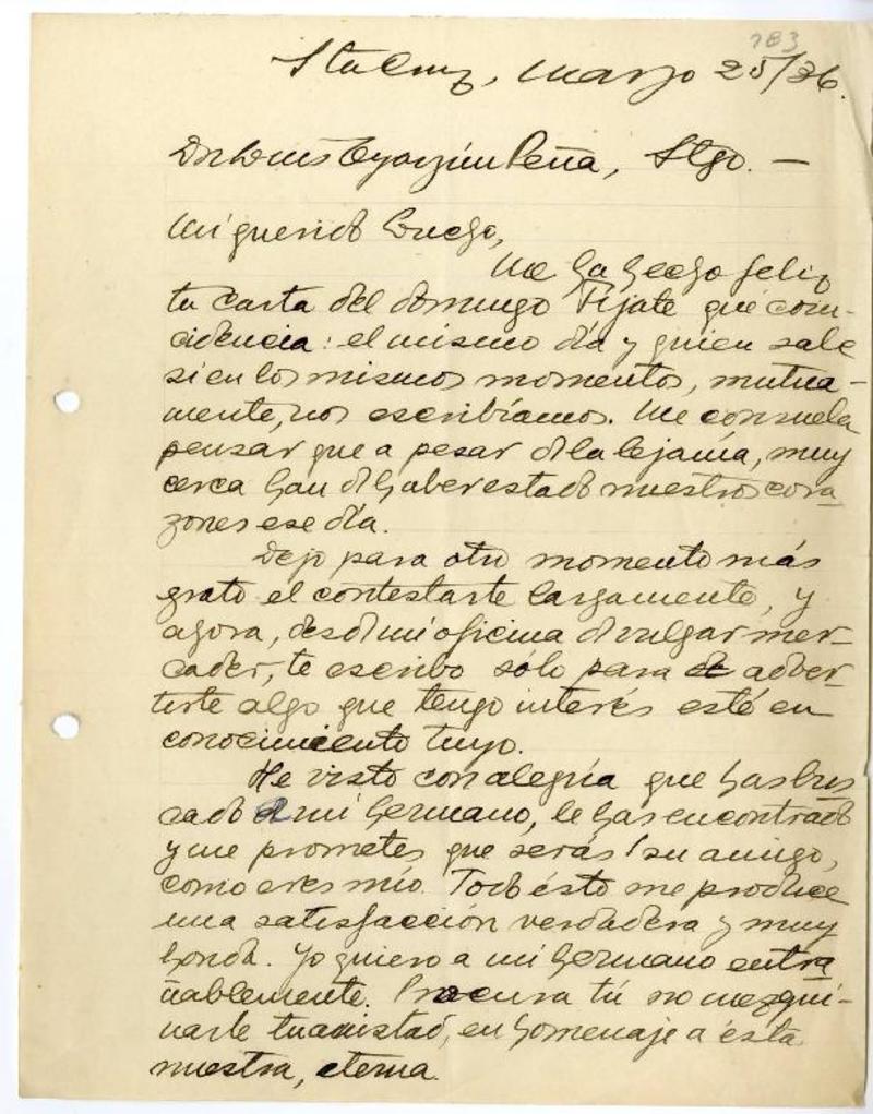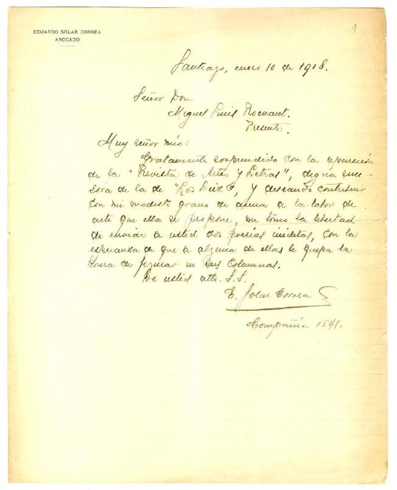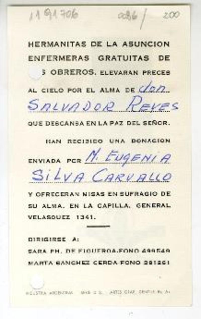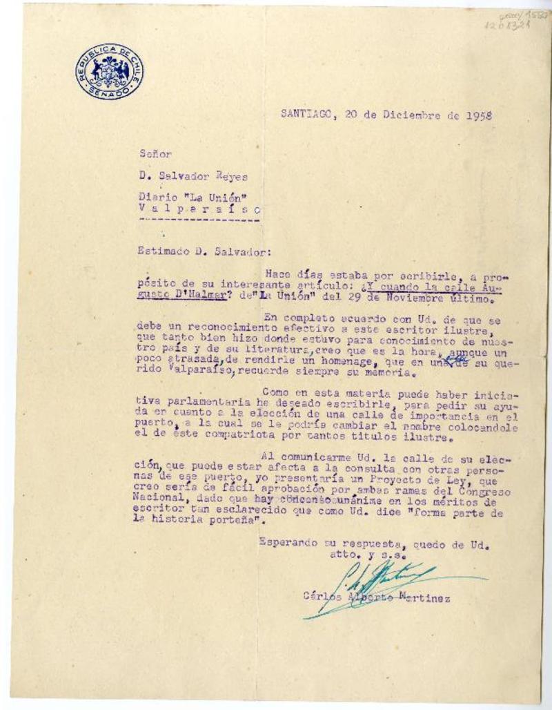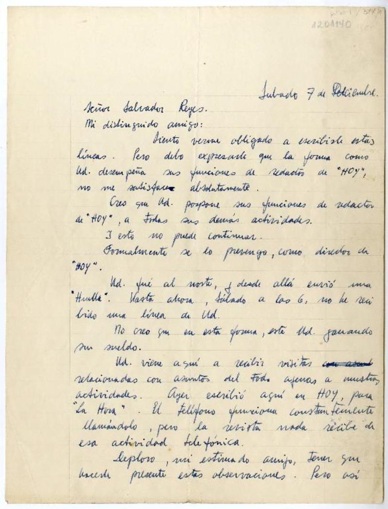 Correspondencia - Manuscritos chilenos - Reyes, Salvador - La Unión (Diario : Valparaíso, Chile) - Autores chilenos