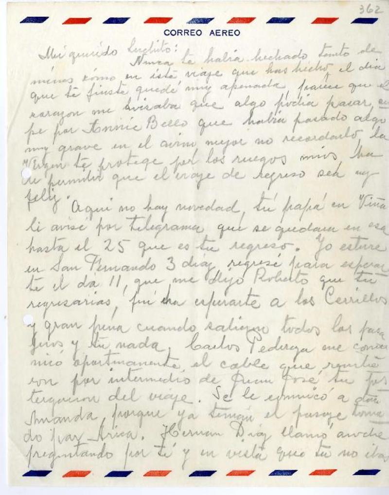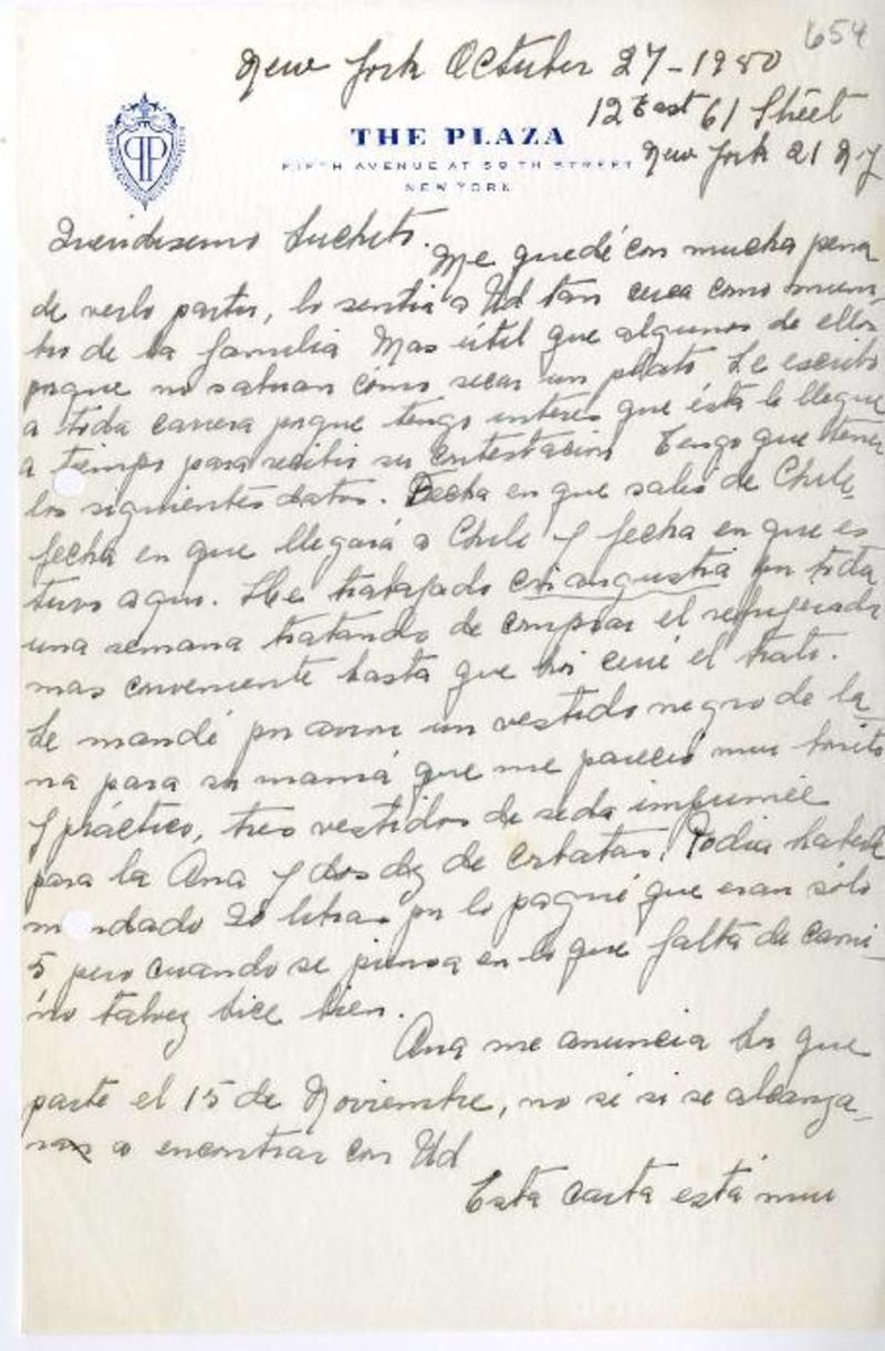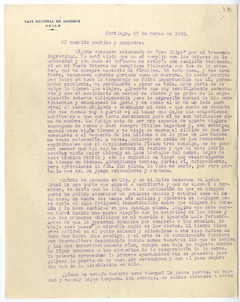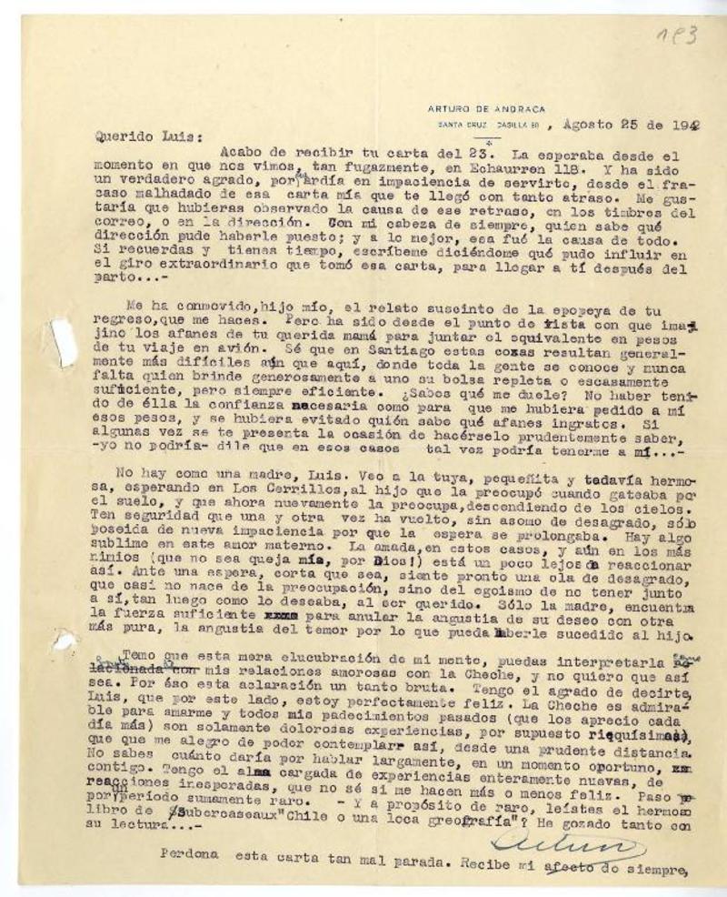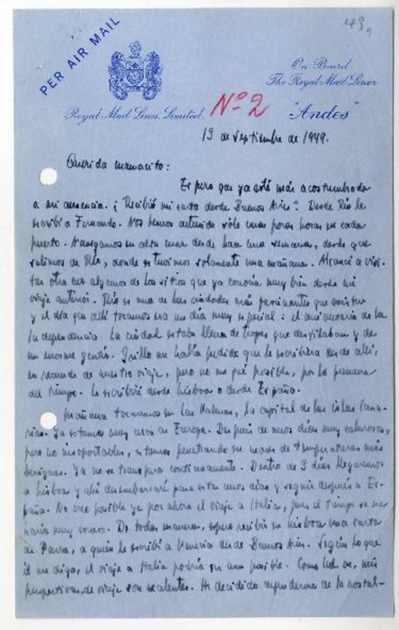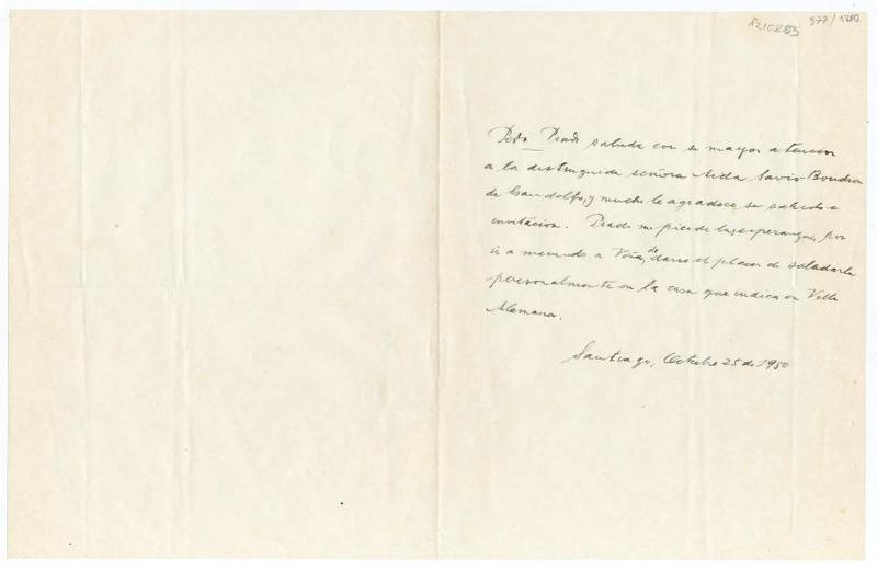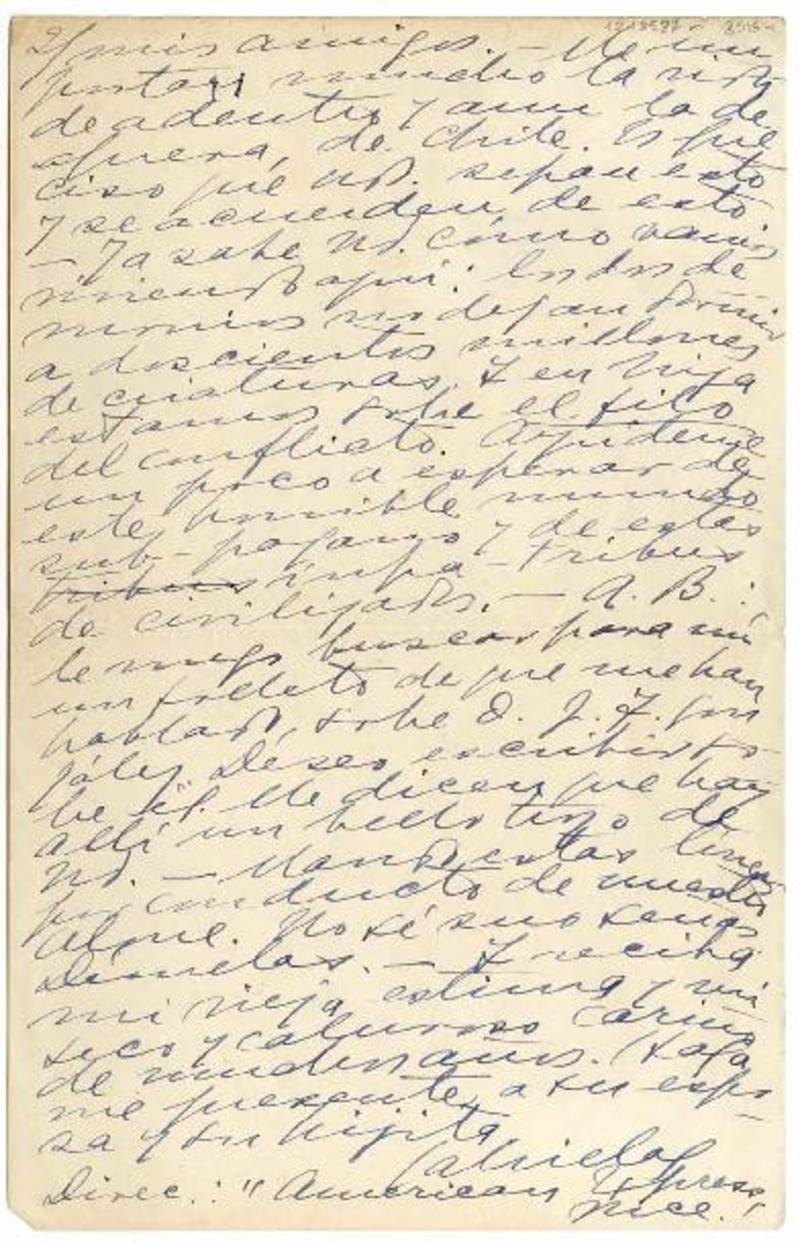 Valparaíso y Santiago, Chile [a] Aida Savio de Gandolfo Carta, Entre 1939 y 1948, [manuscrito] Augusto d'Halmar.