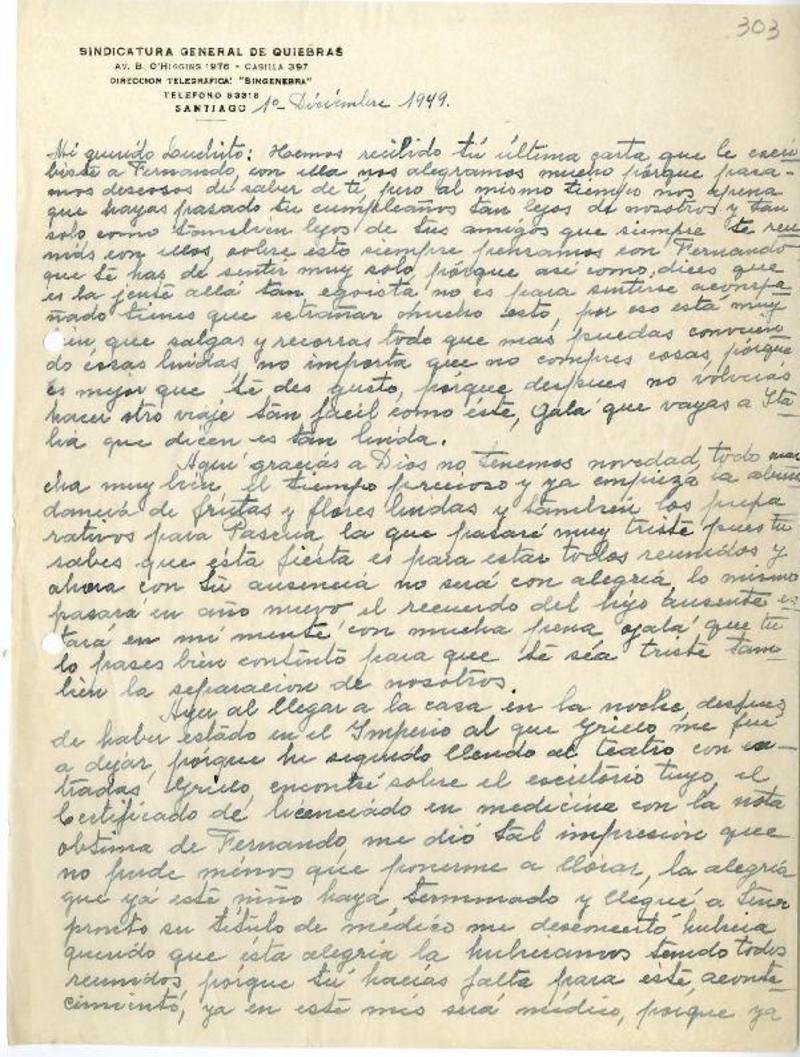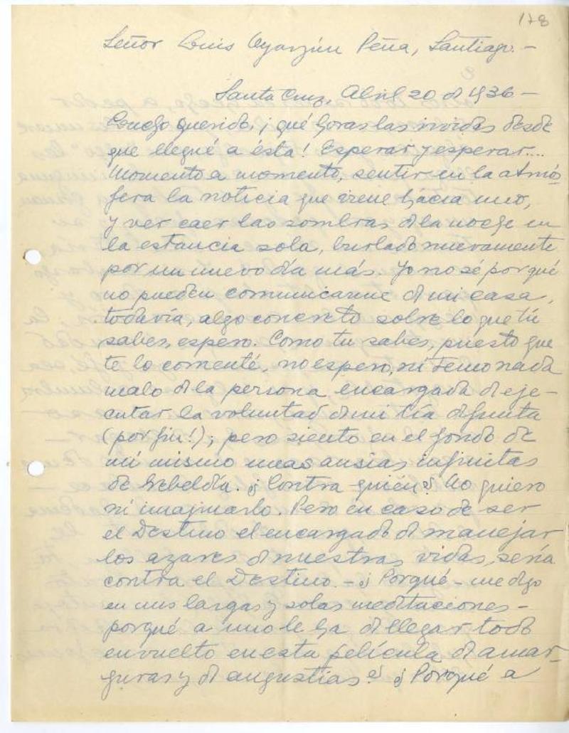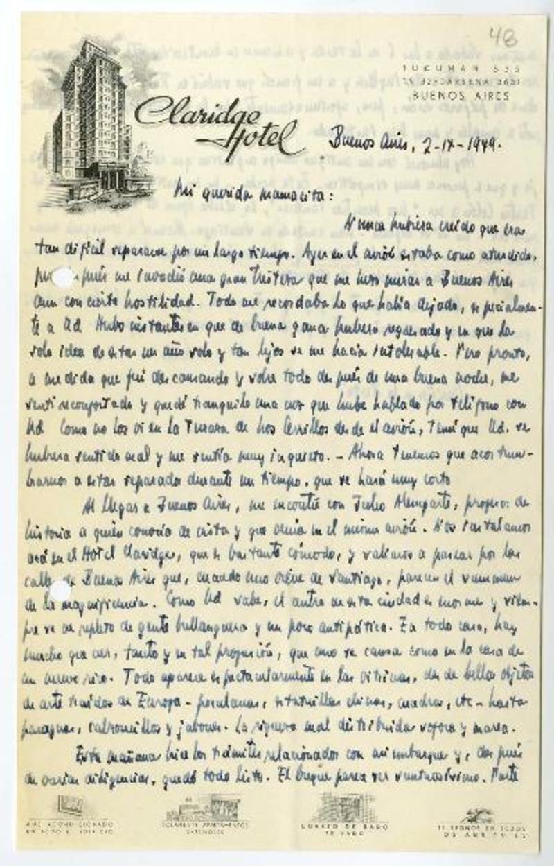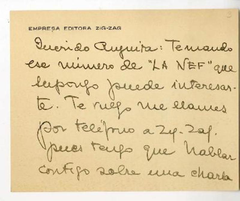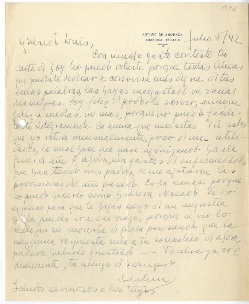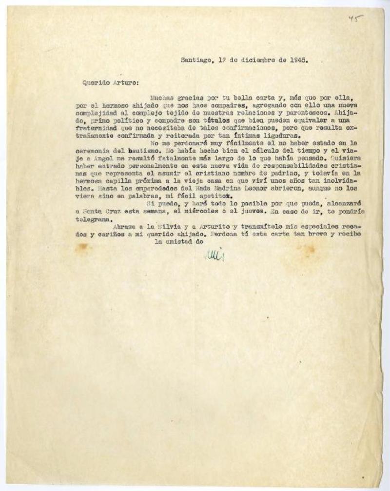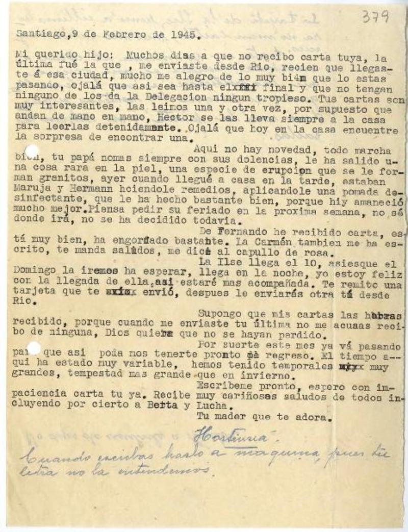 Valparaíso y Santiago, Chile [a] Aida Savio de Gandolfo Carta, Entre 1939 y 1948, [manuscrito] Augusto d'Halmar.