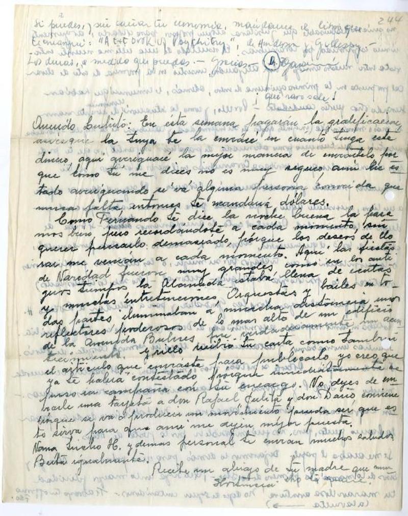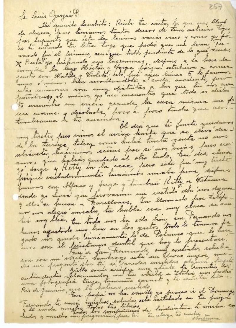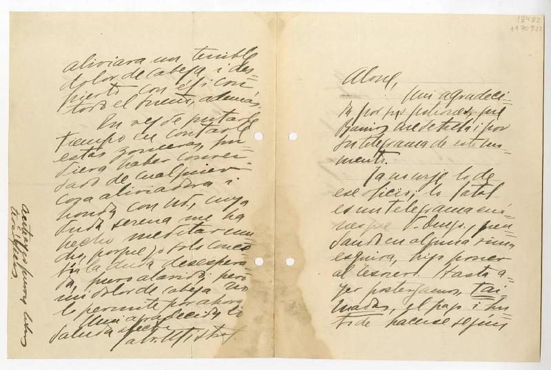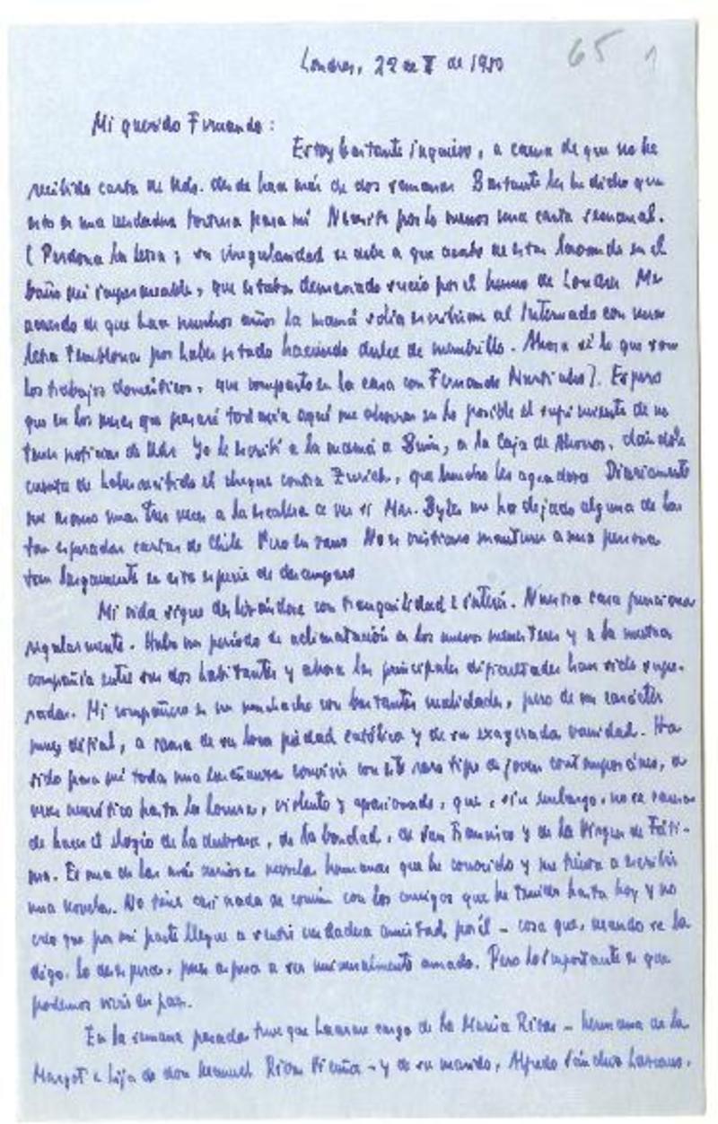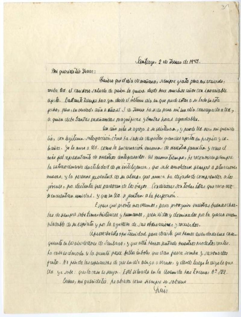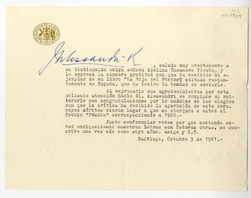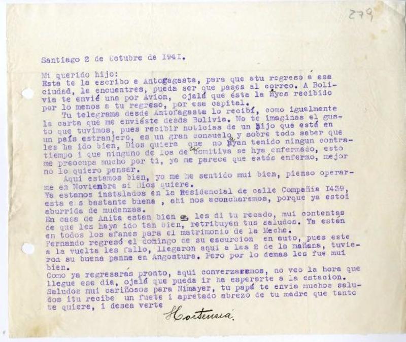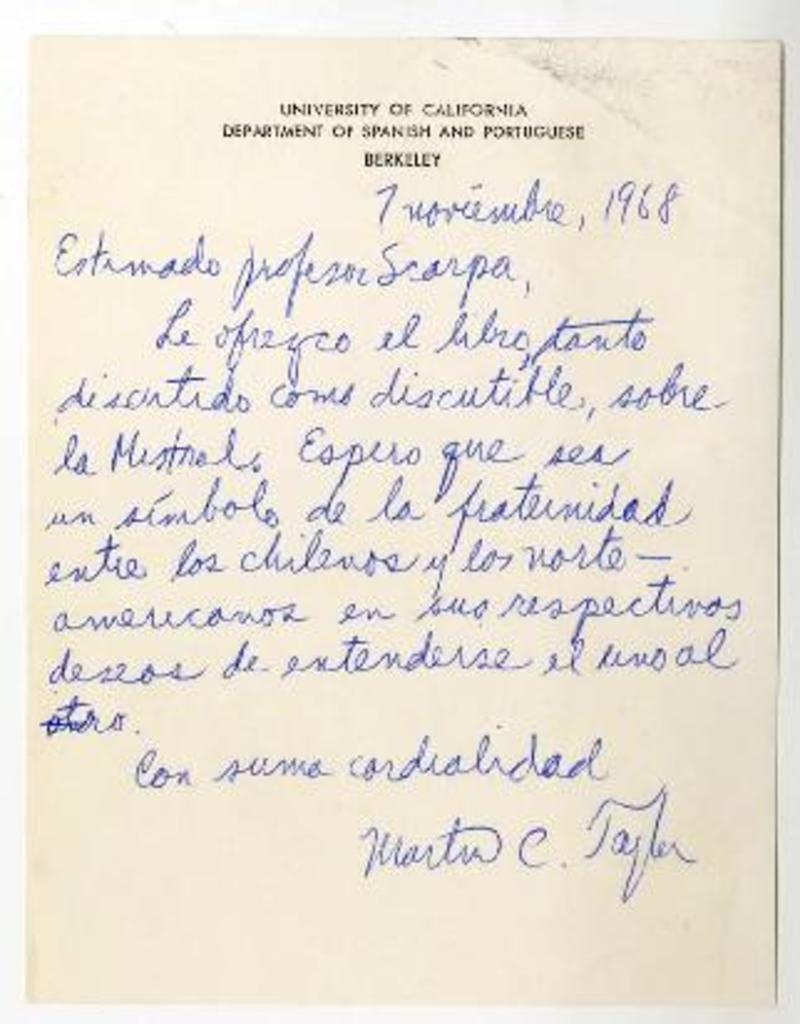 Valparaíso y Santiago, Chile [a] Aida Savio de Gandolfo Carta, Entre 1939 y 1948, [manuscrito] Augusto d'Halmar.