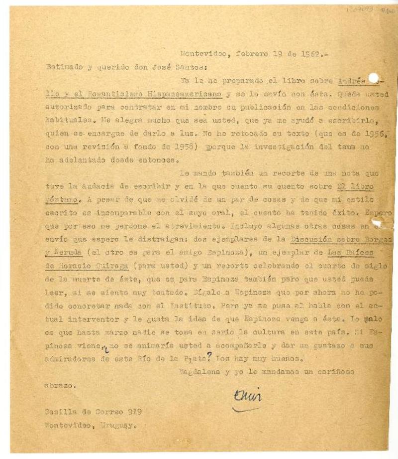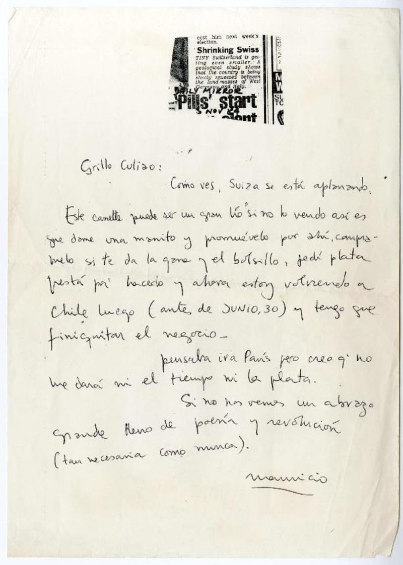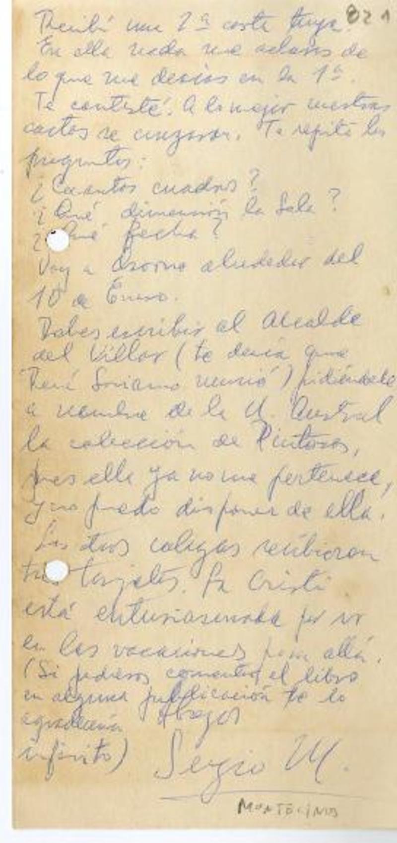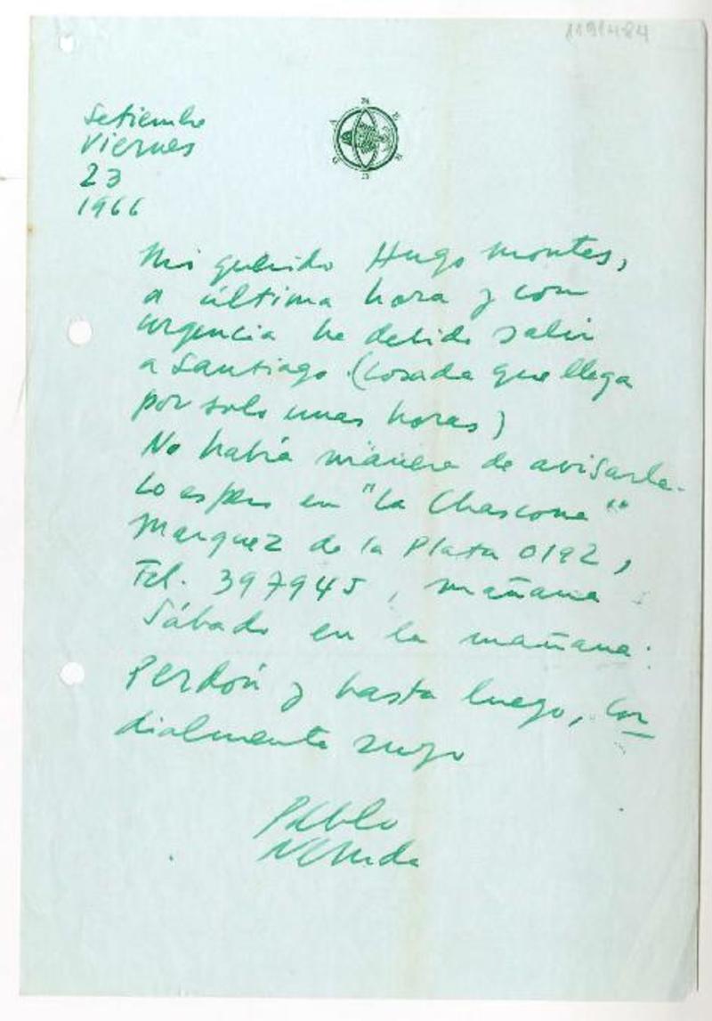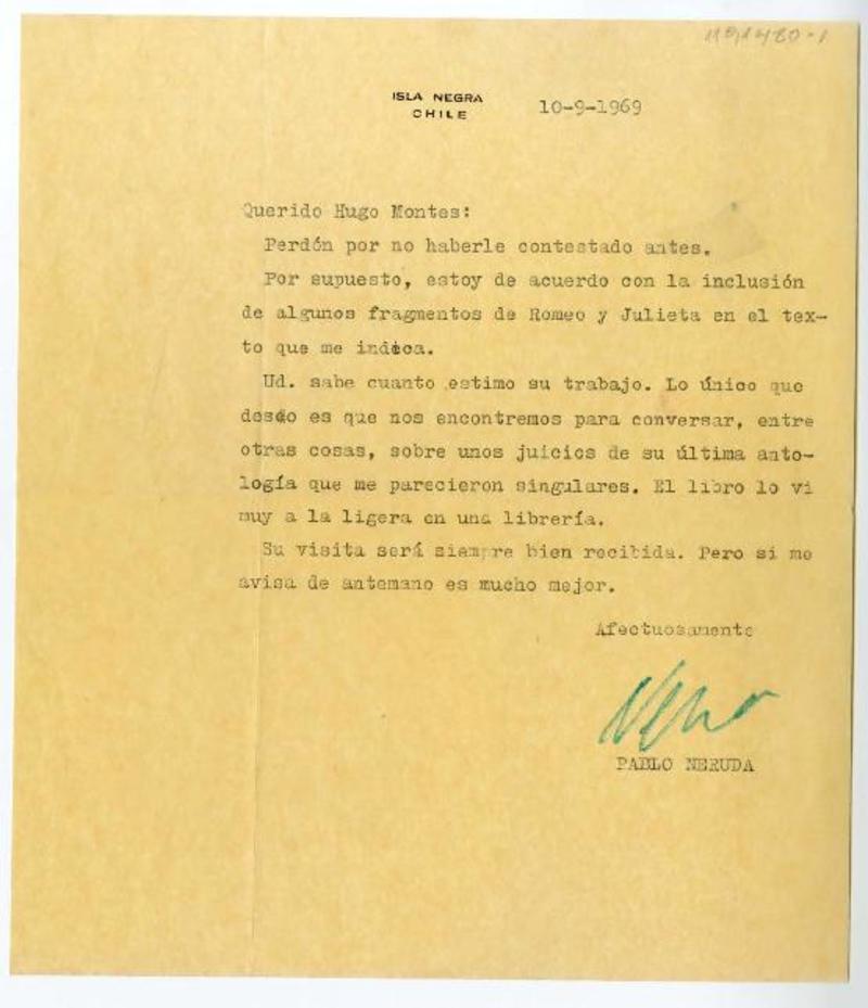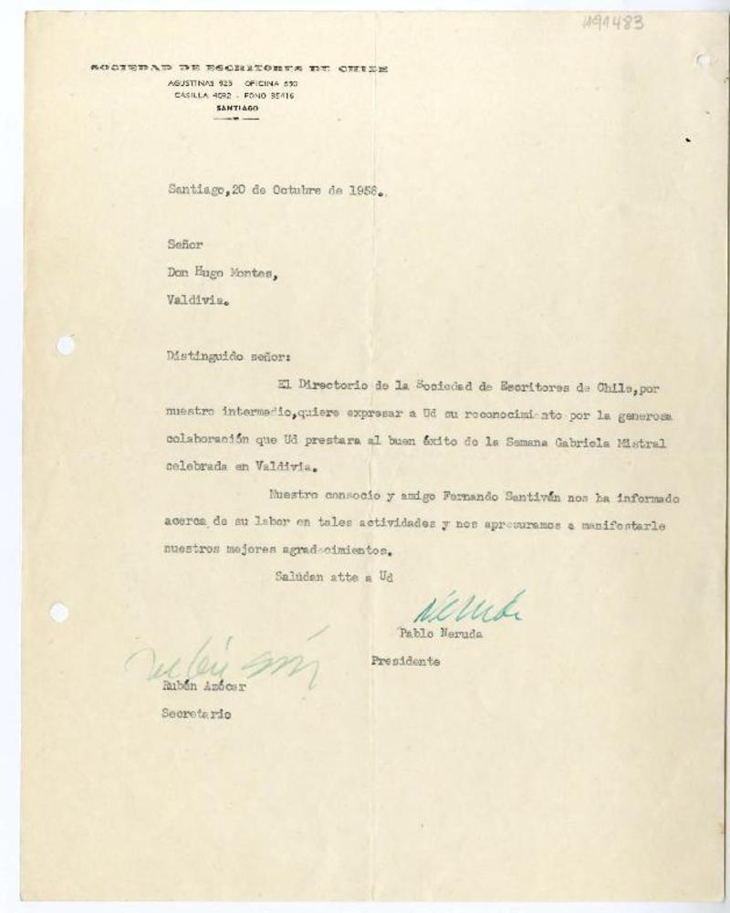 Montes, Hugo - Correspondencia - Autores chilenos - Manuscritos chilenos - Sabella, Andrés