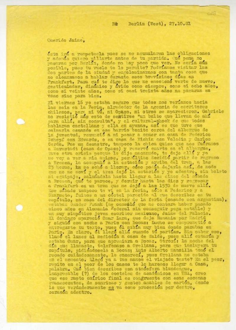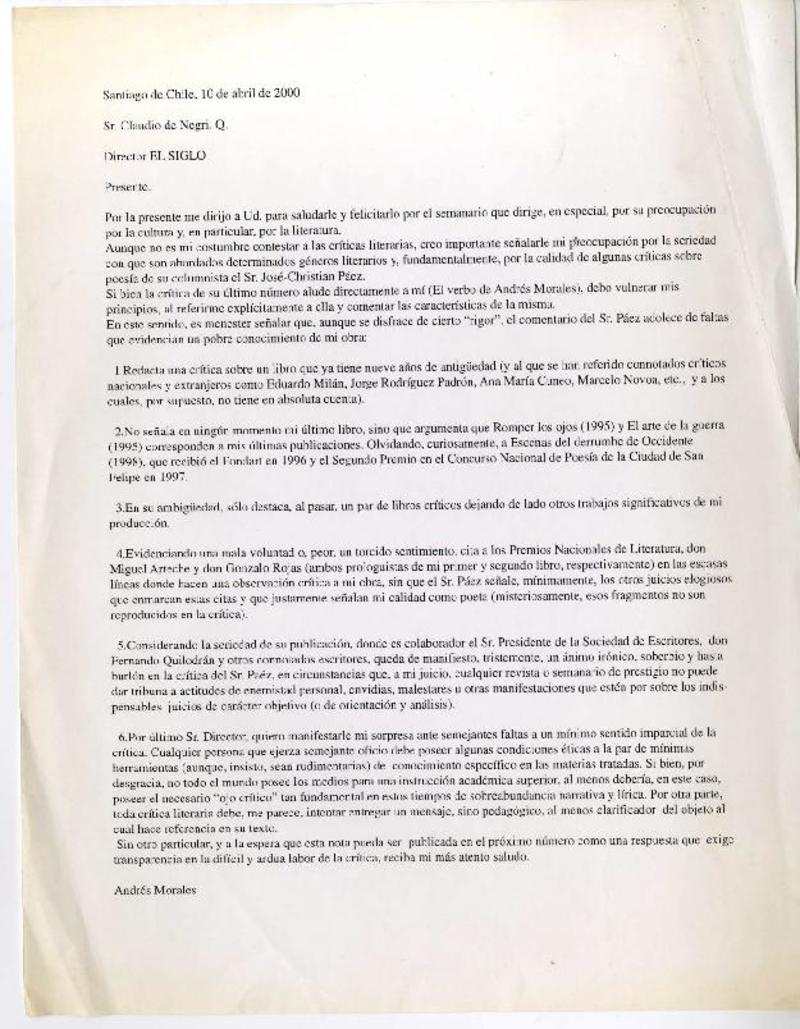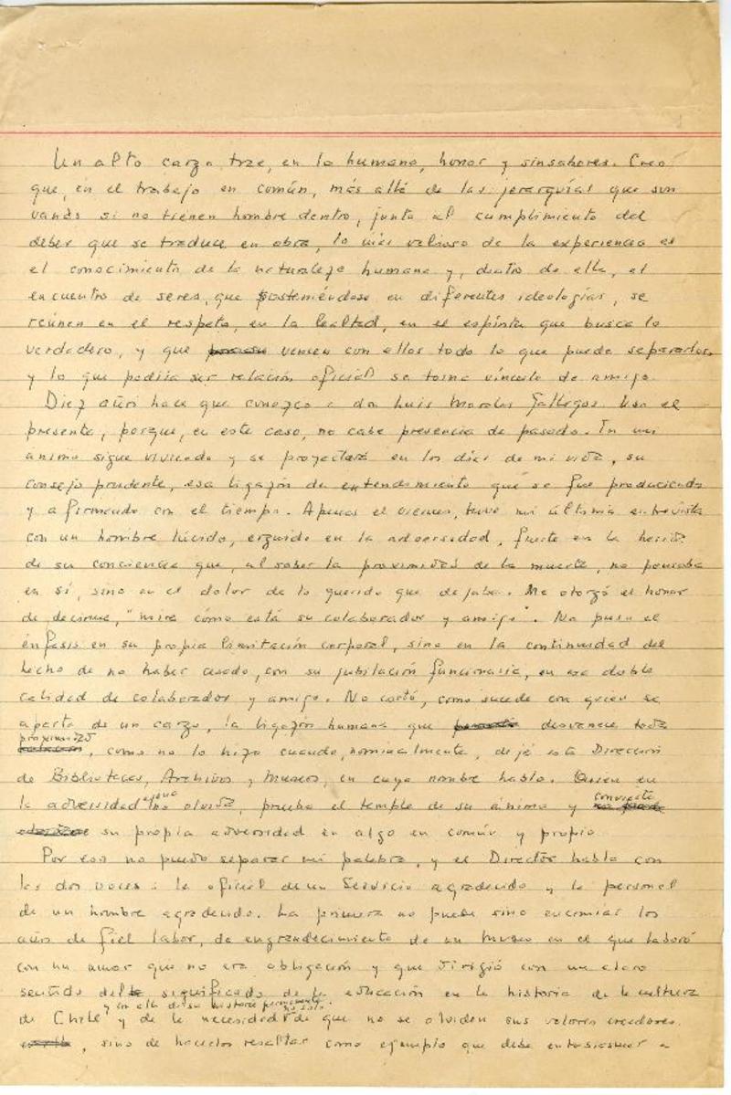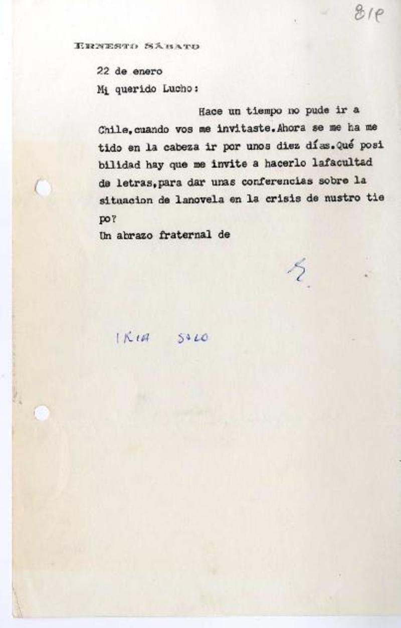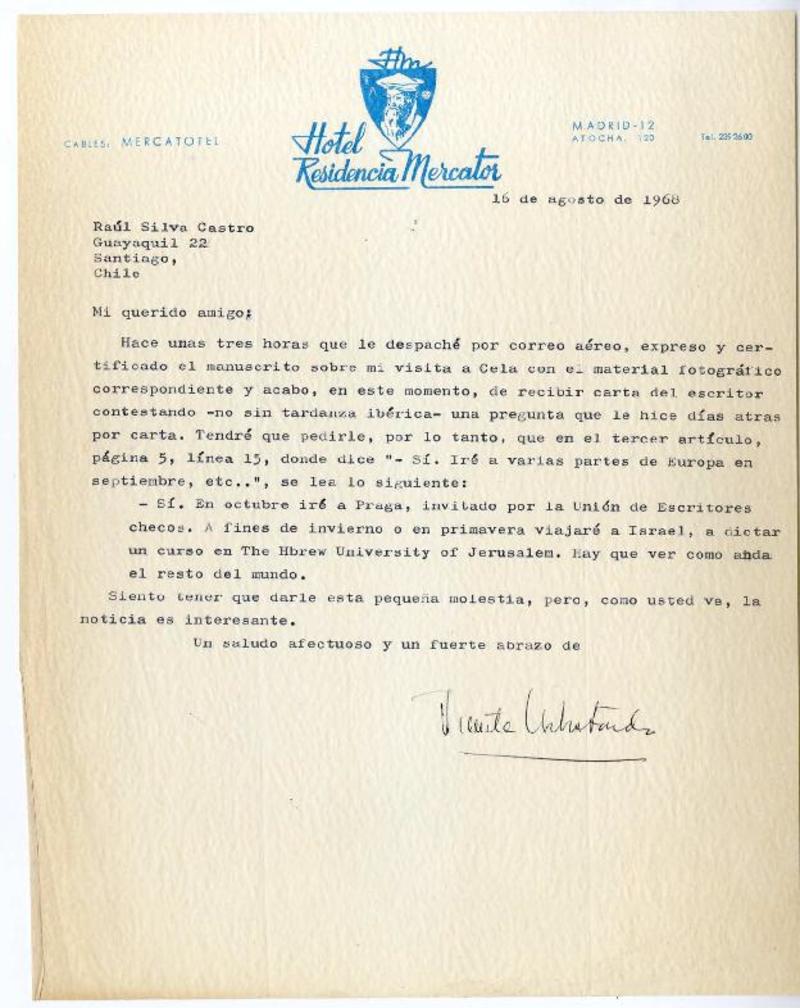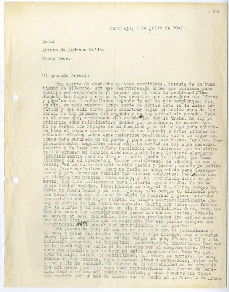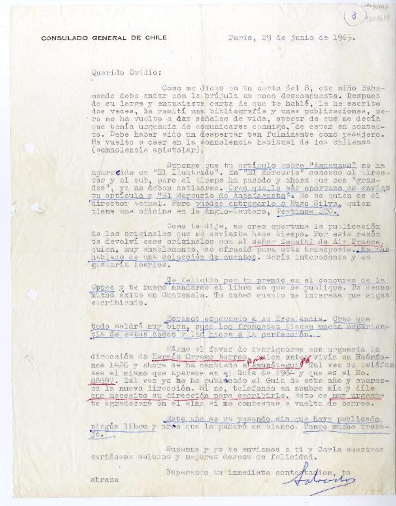 Montes, Hugo - Correspondencia - Autores chilenos - Manuscritos chilenos - Sabella, Andrés
