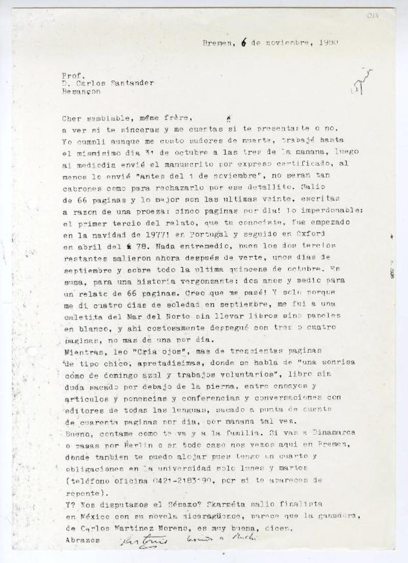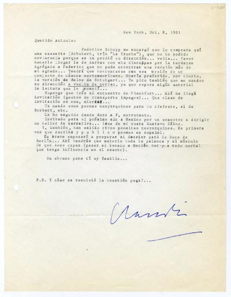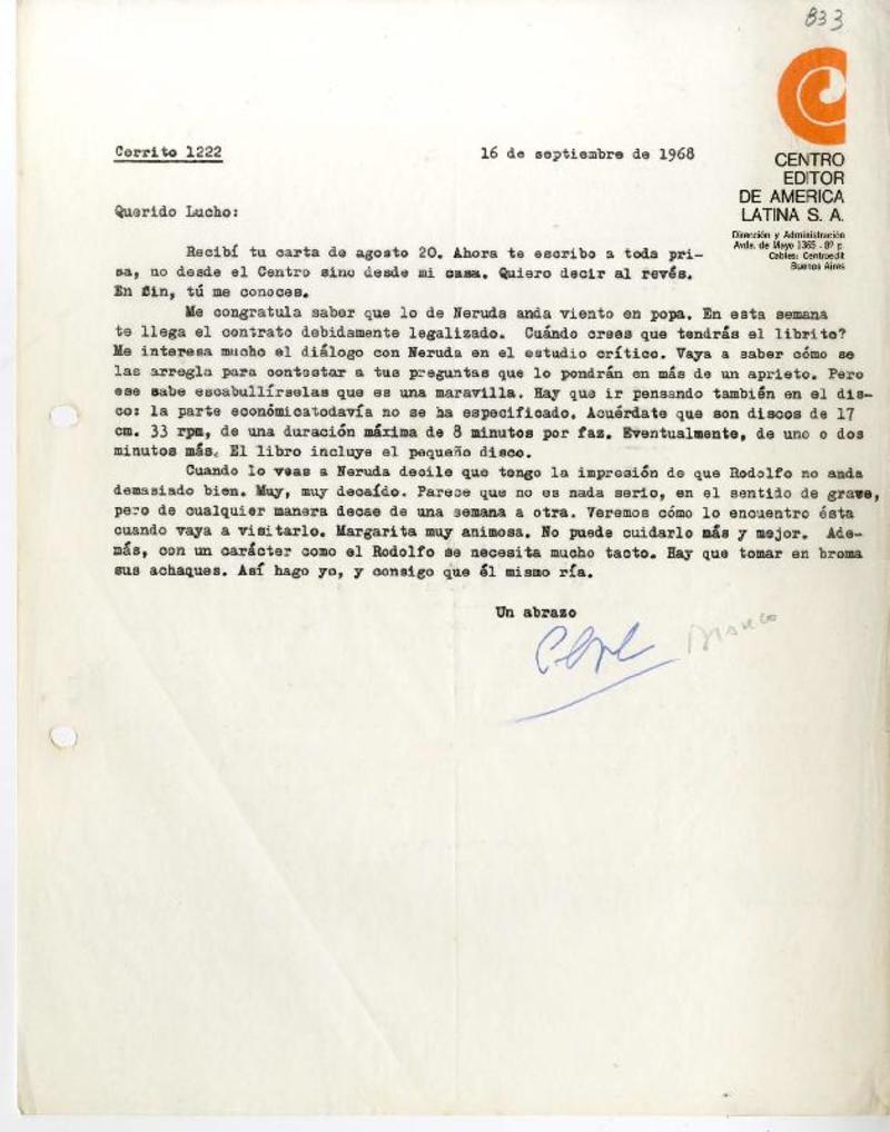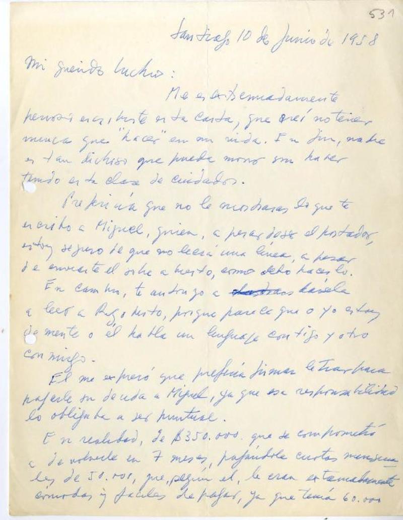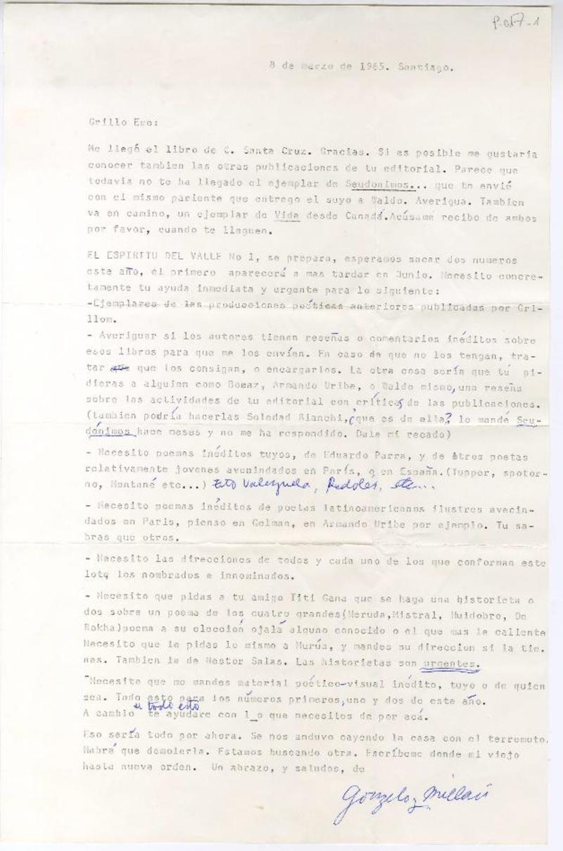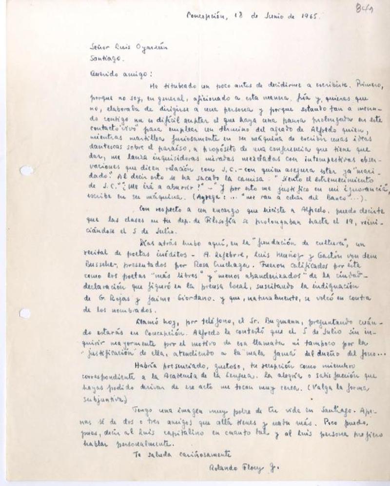 Montes, Hugo - Correspondencia - Autores chilenos - Manuscritos chilenos - Sabella, Andrés