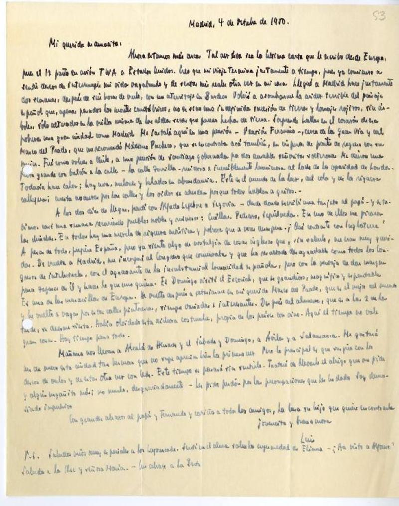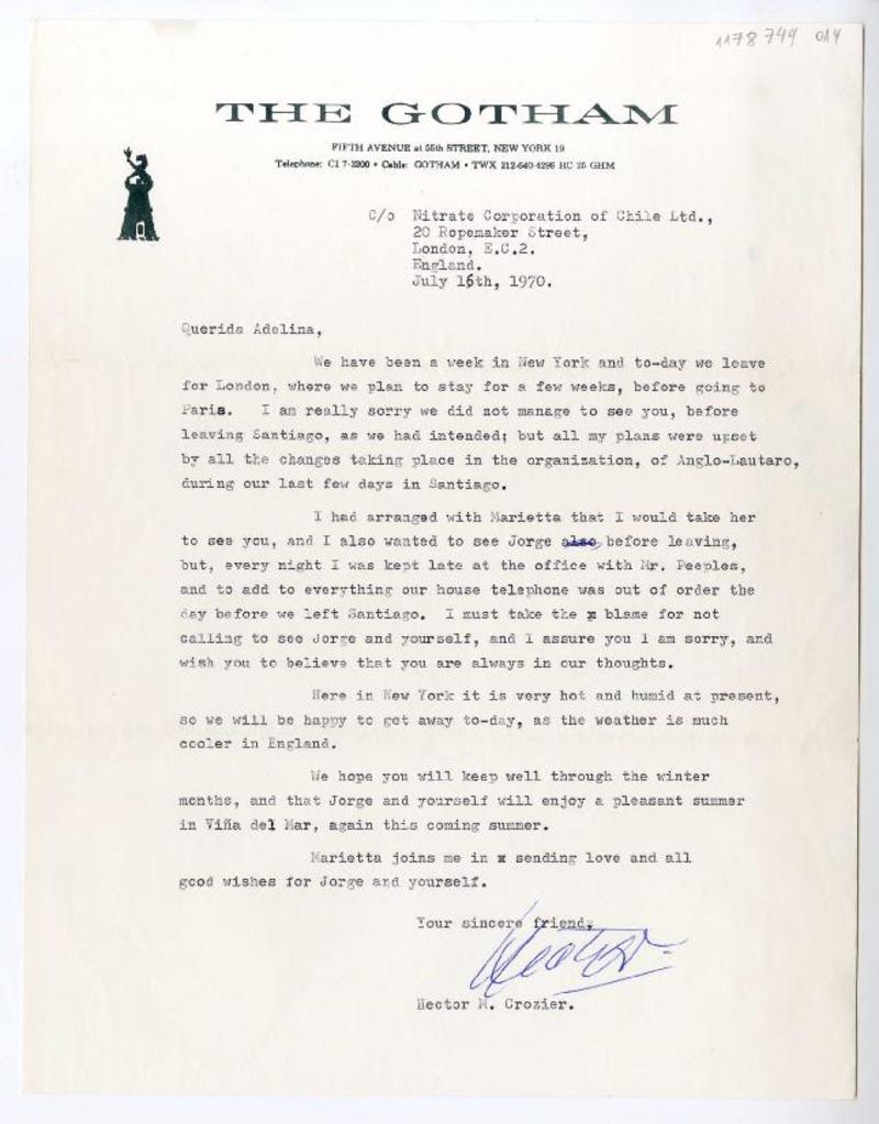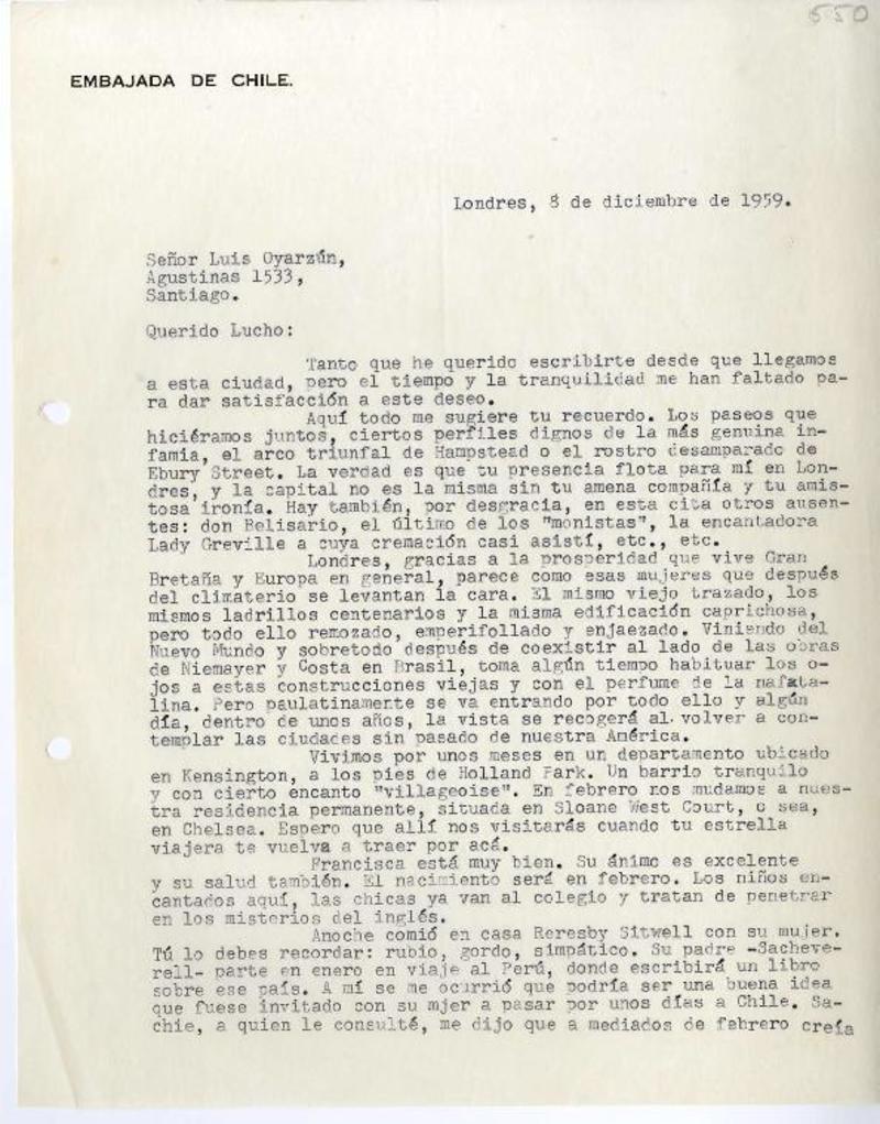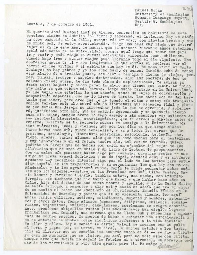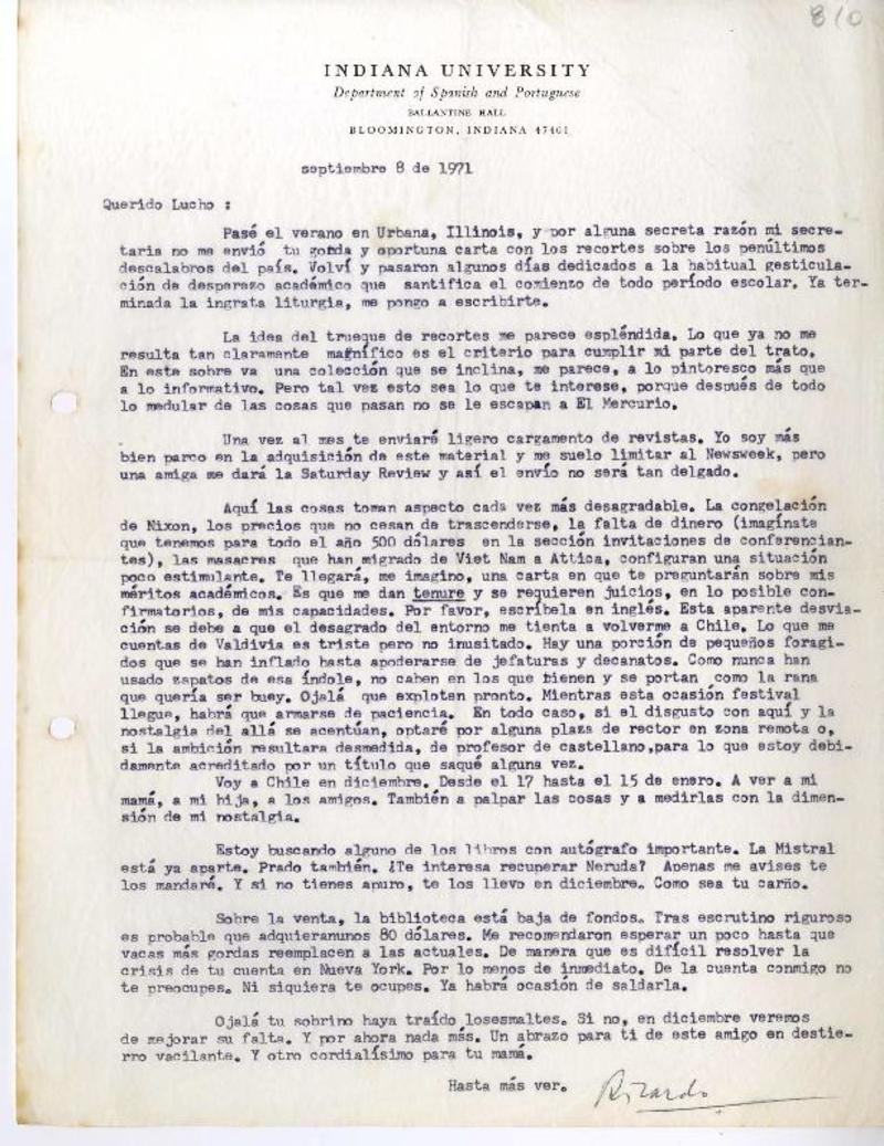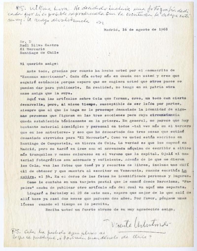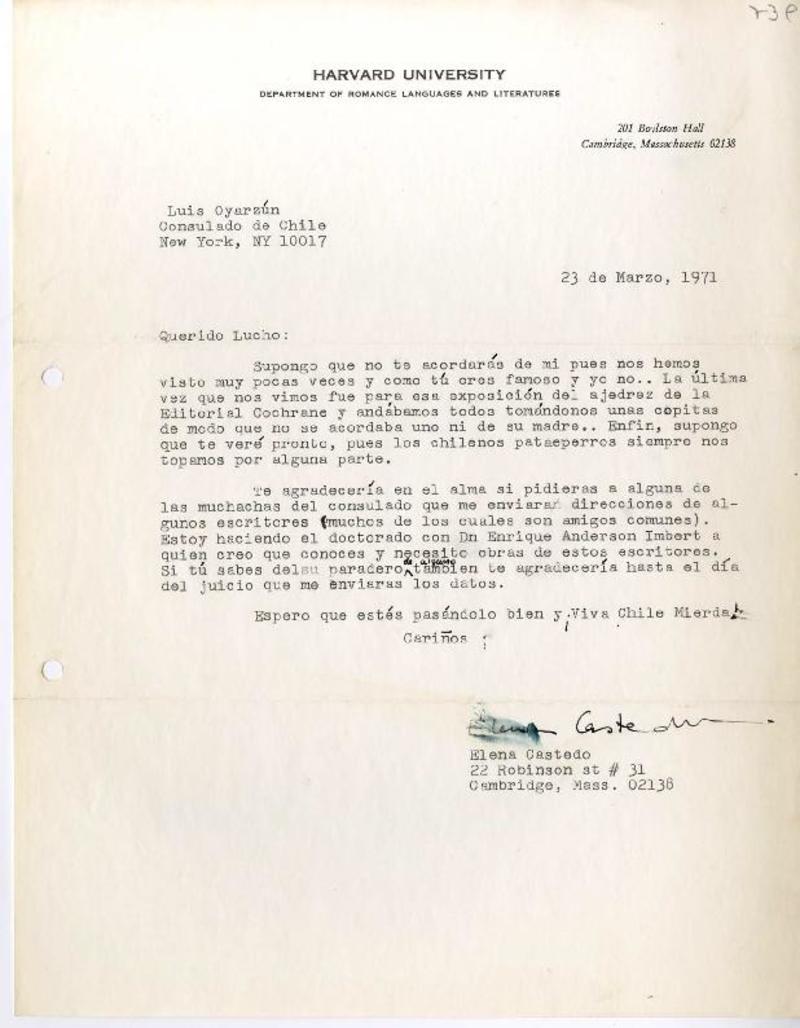 Castro, Óscar - Correspondencia - Autores chilenos - Manuscritos estadounidenses - Spiers Benjamin, Robert