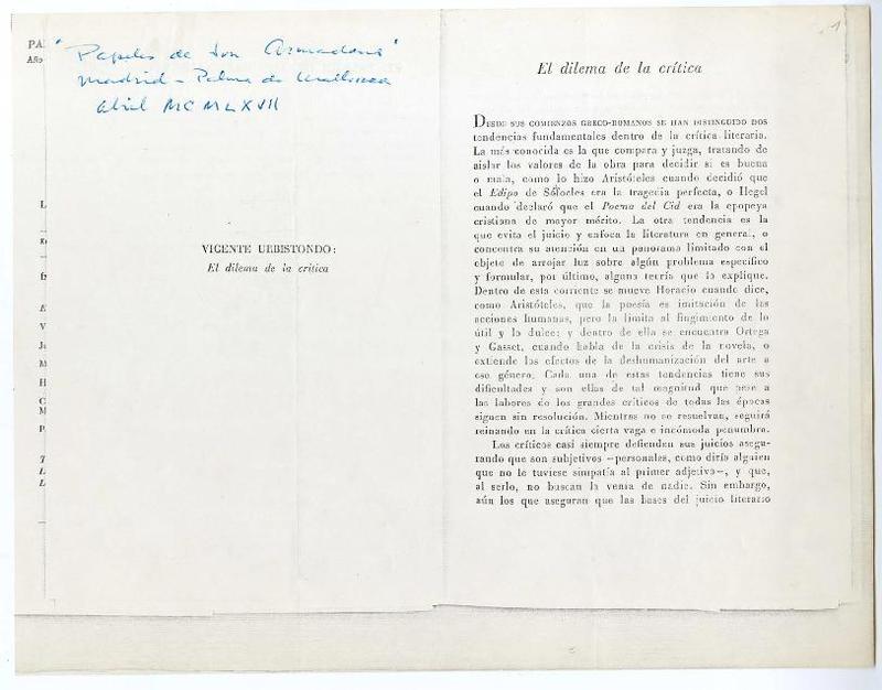 Algunas consideraciones sobre la pintura abstracta [manuscrito] Humberto Díaz-Casanueva.