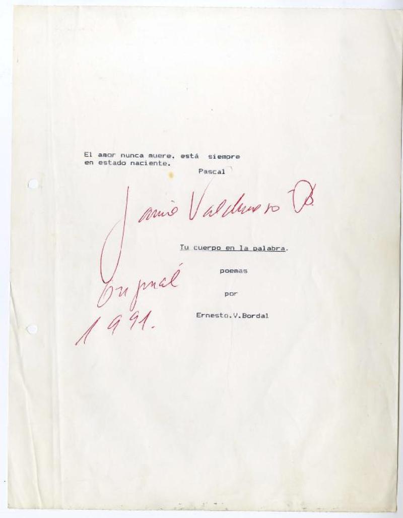 [Versos dedicados] [manuscrito] Diego Duble Urrutia.