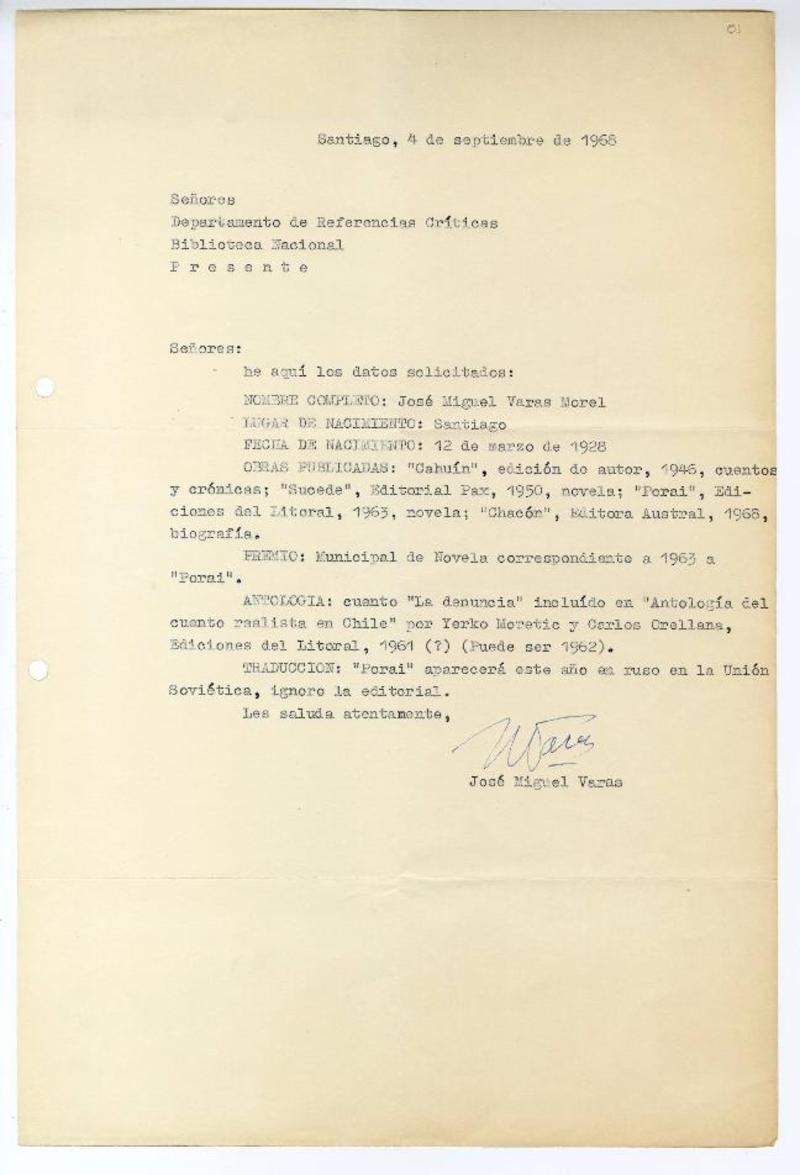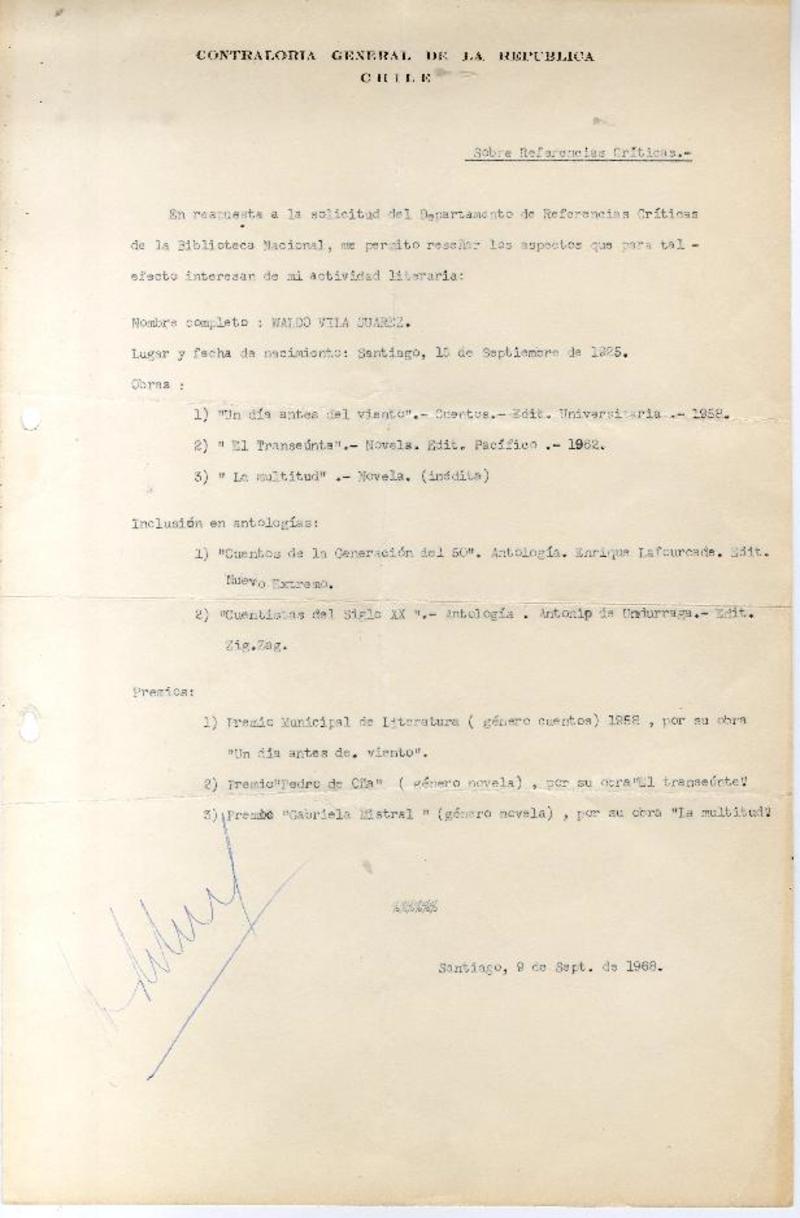 Castro, Óscar - Biografías - Manuscritos chilenos - Autores chilenos