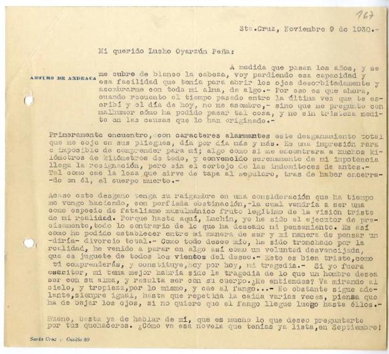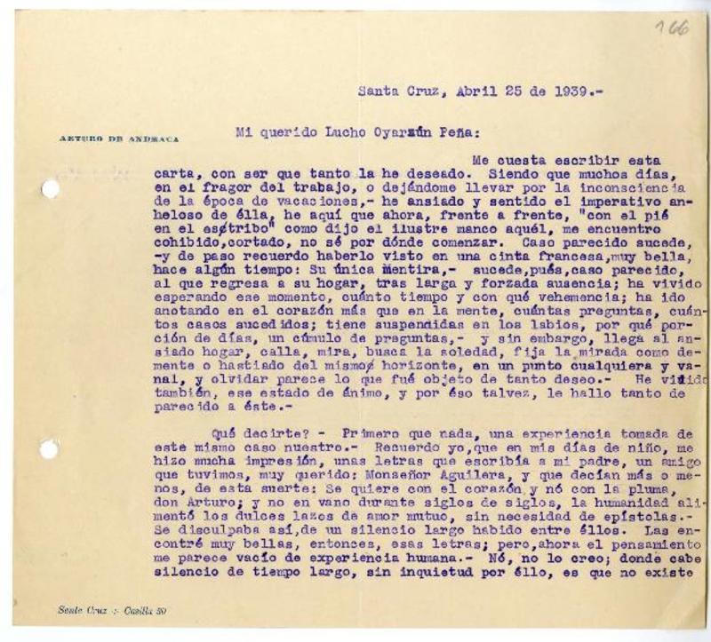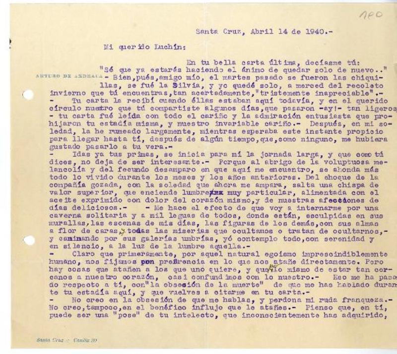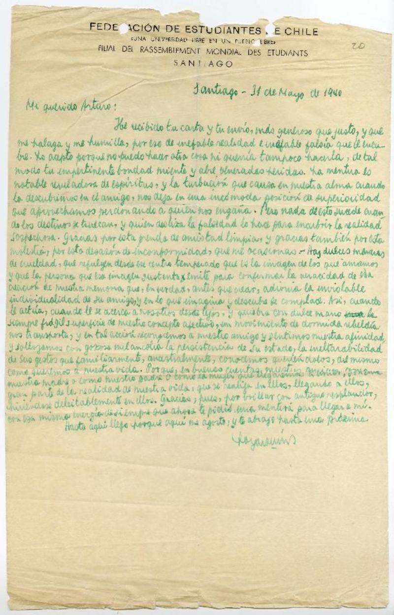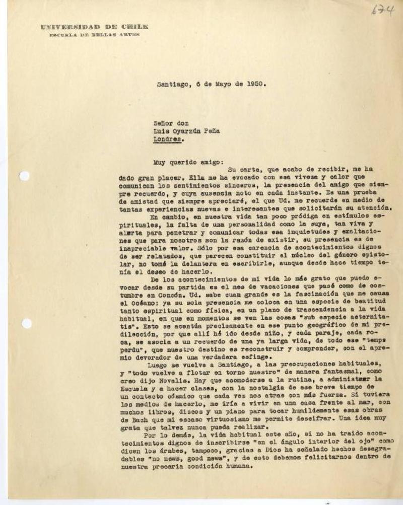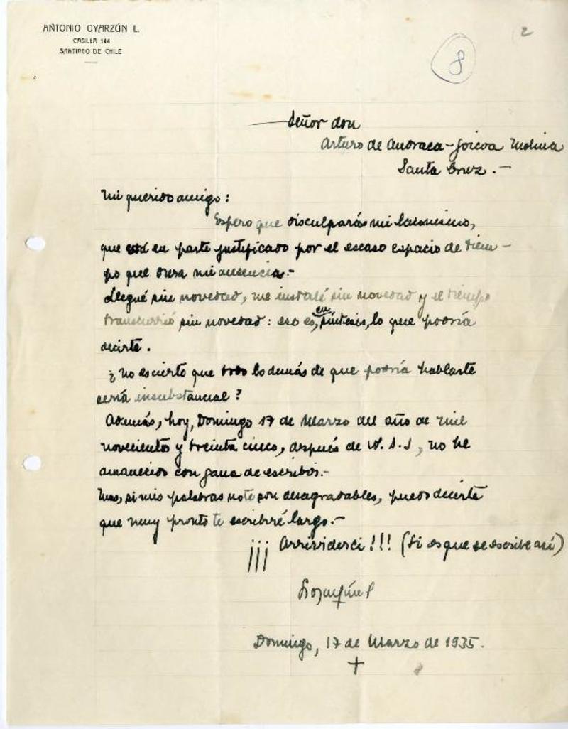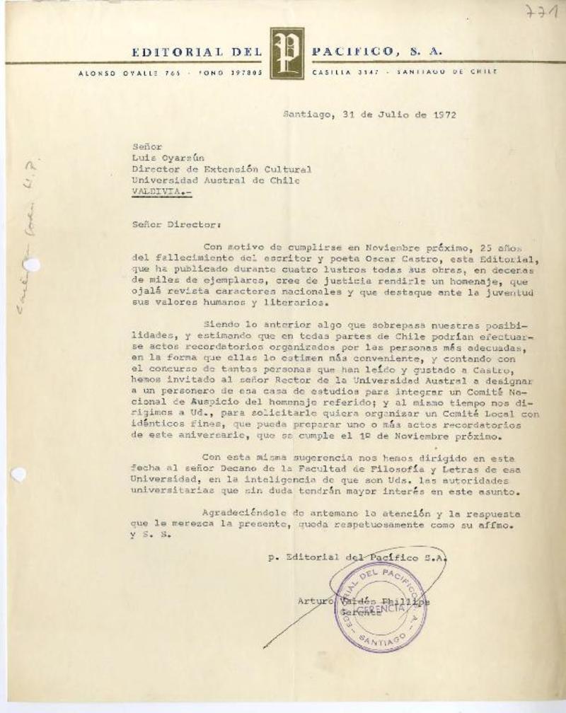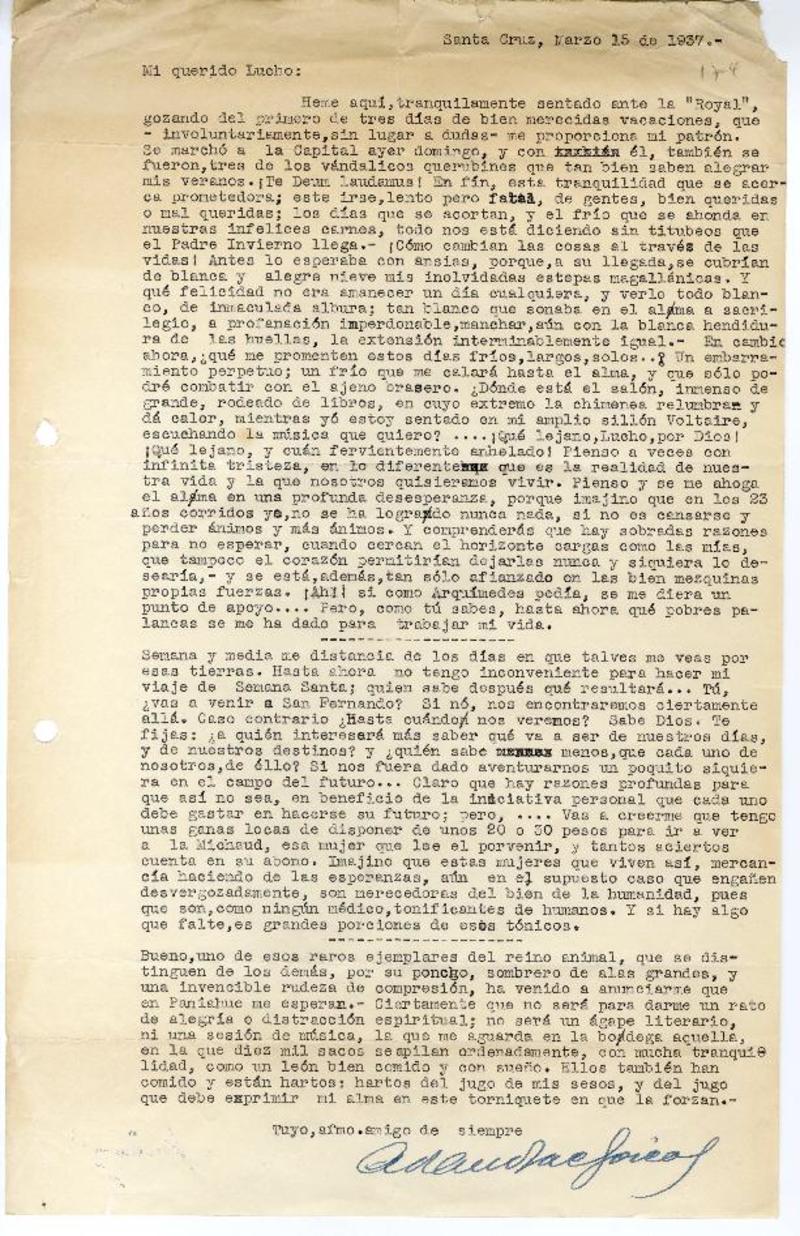Valparaíso, Chile [a] Oscar Castro Carta, 1940 marzo 4, [manuscrito] Augusto D'Halmar.