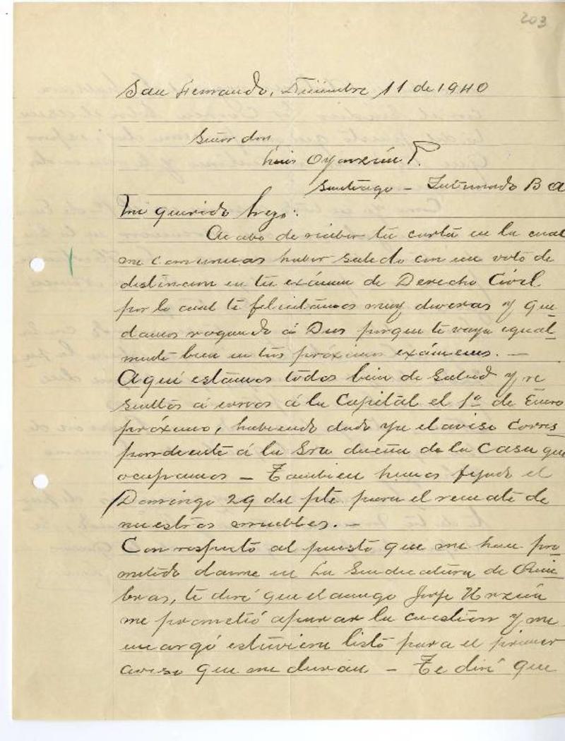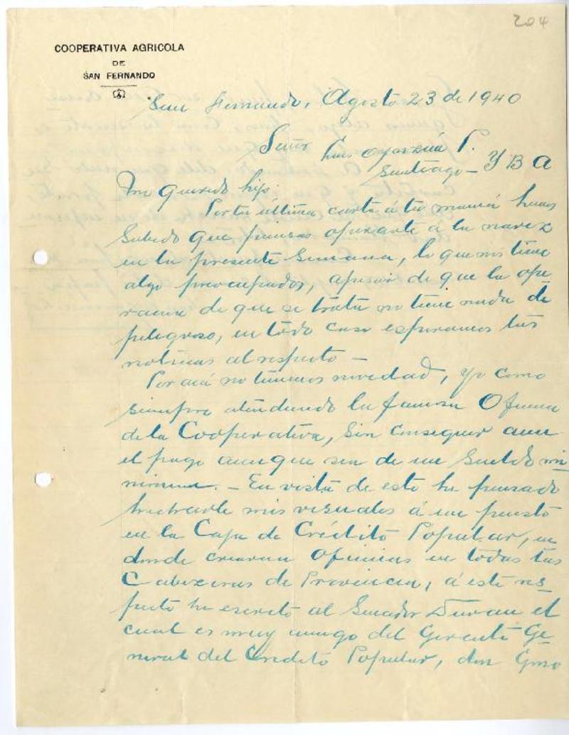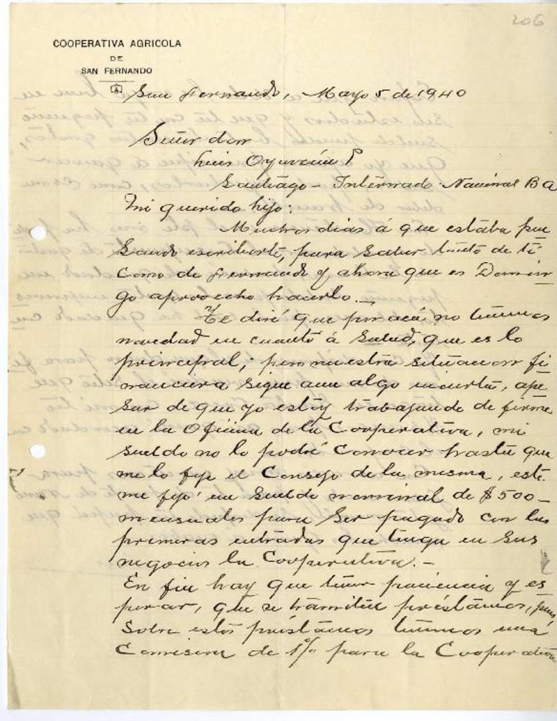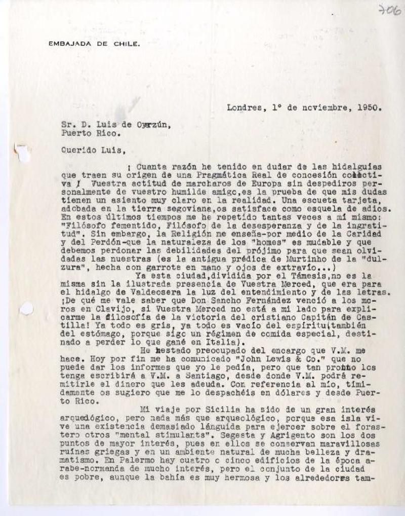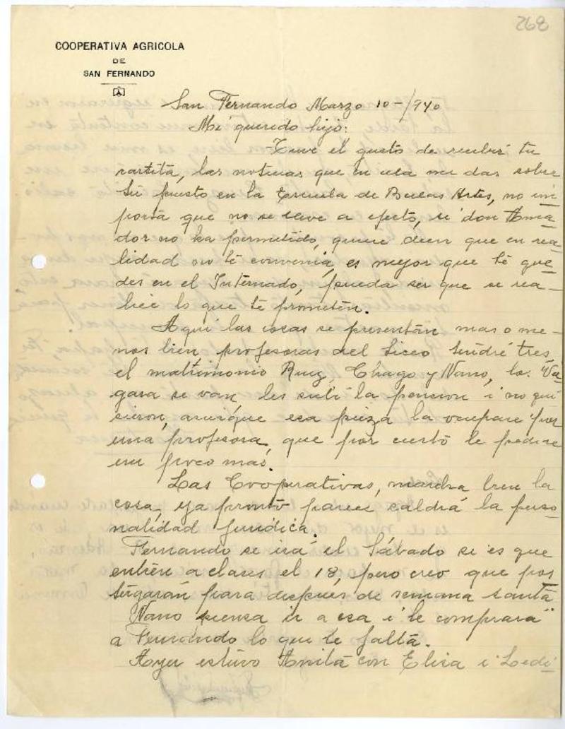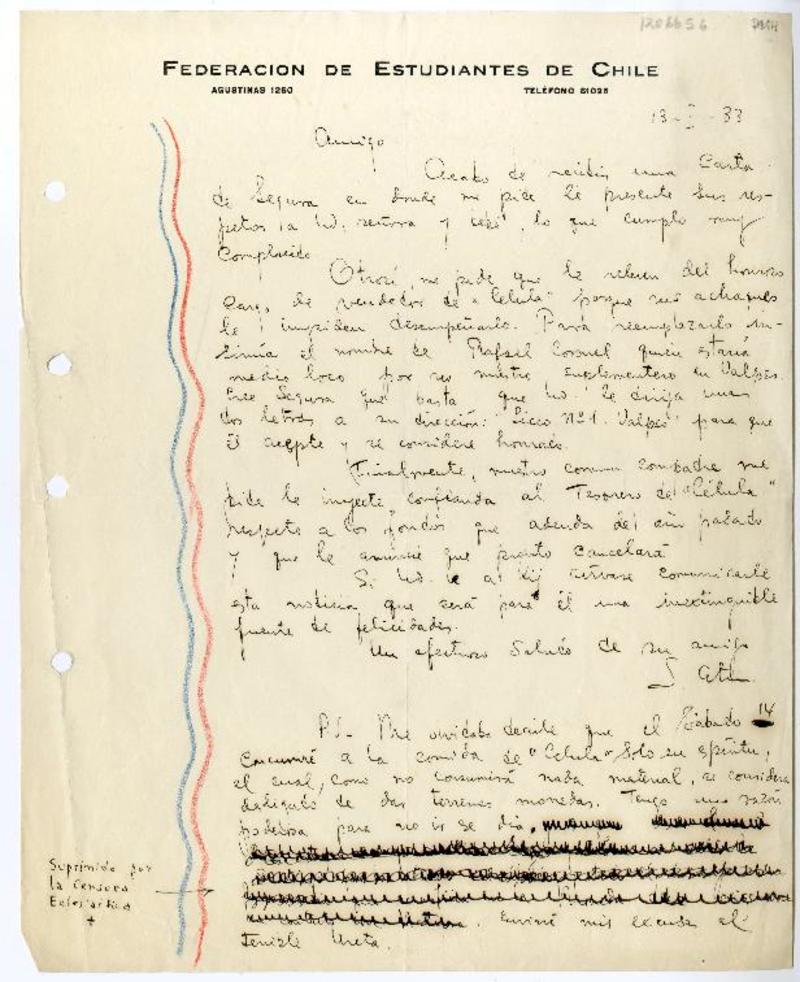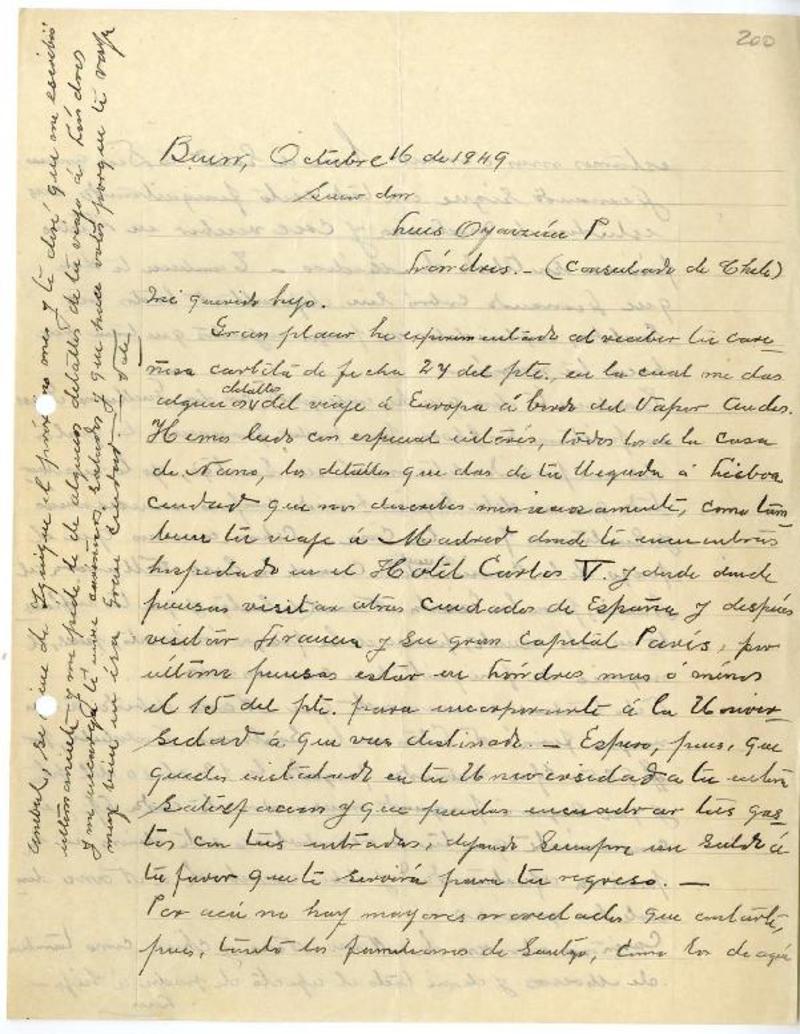Valparaíso, Chile [a] Oscar Castro Carta, 1940 marzo 4, [manuscrito] Augusto D'Halmar.