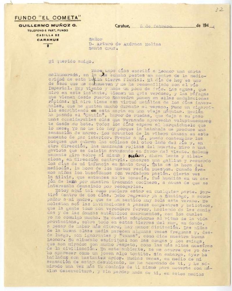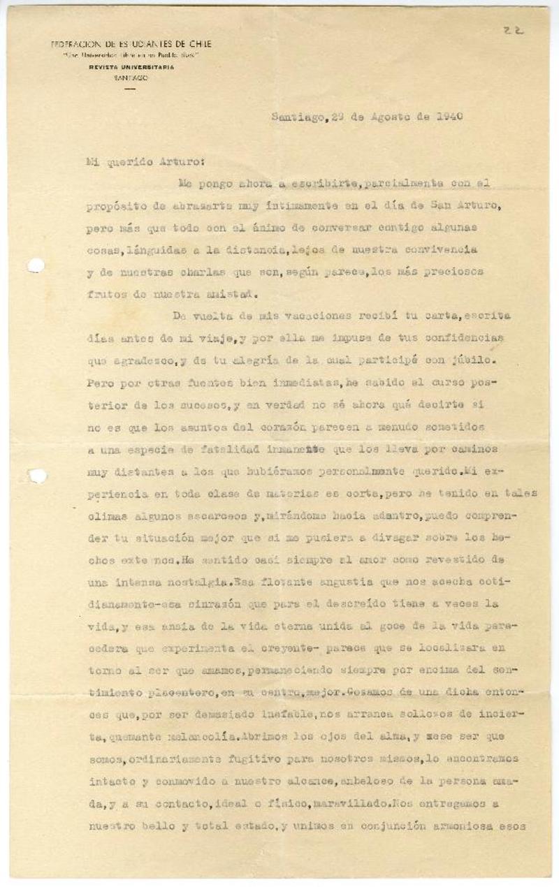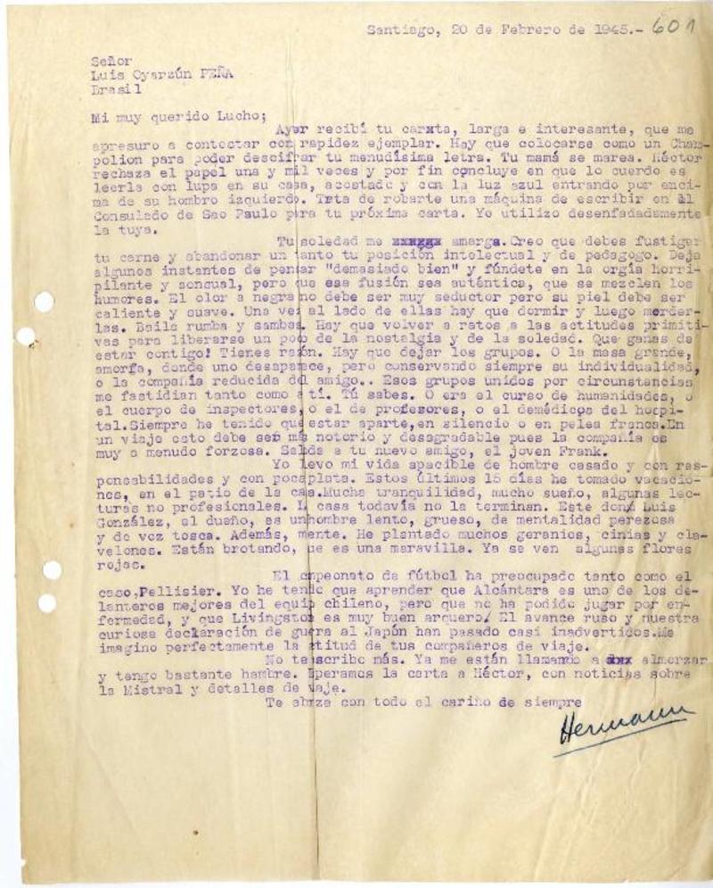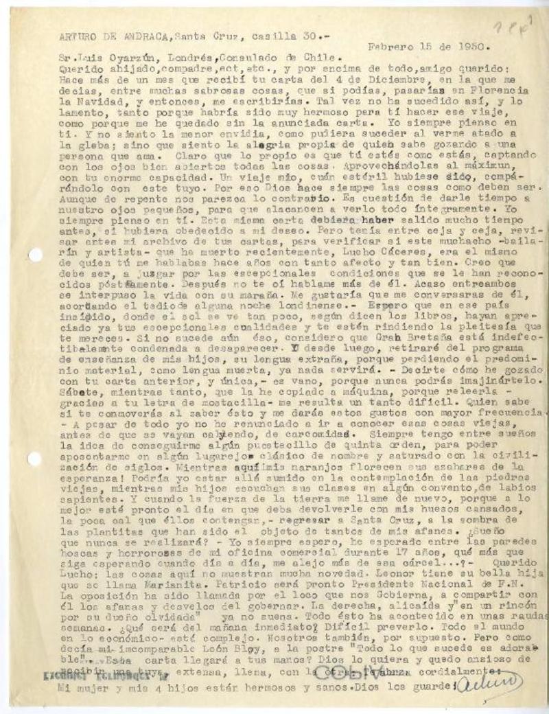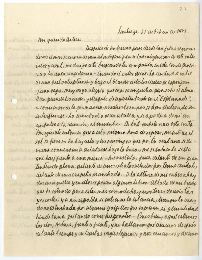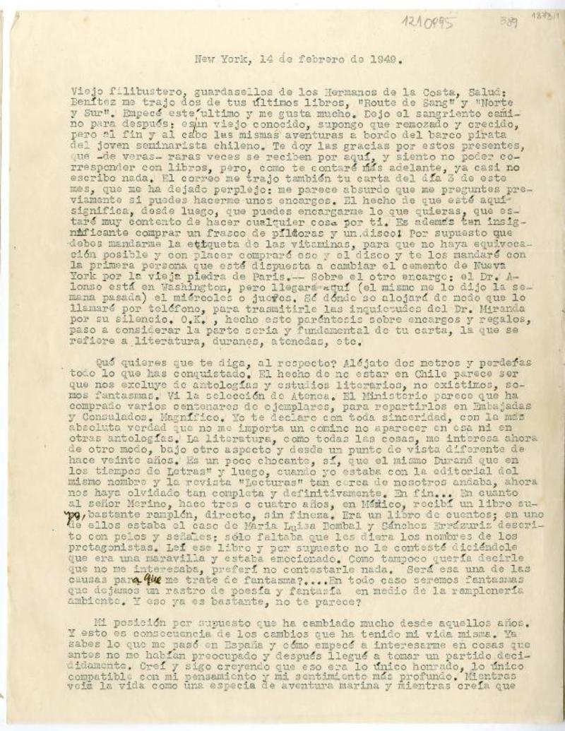 Valparaíso, Chile [a] Oscar Castro Carta, 1939 febrero 29, [manuscrito] Augusto D'Halmar.
