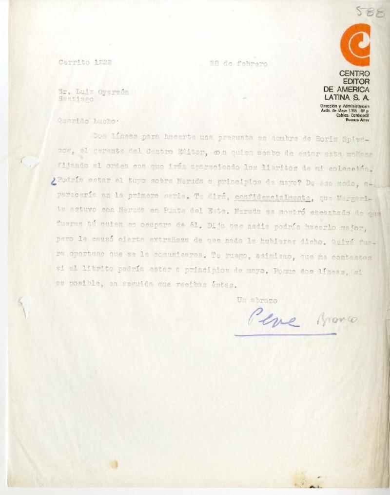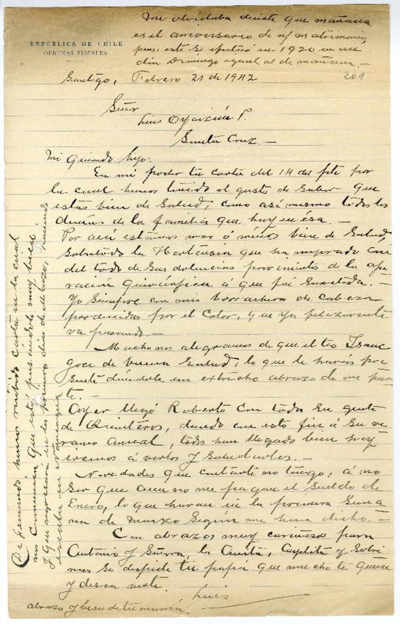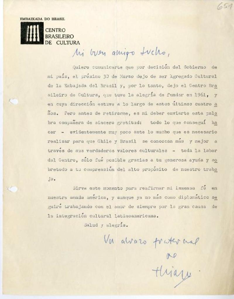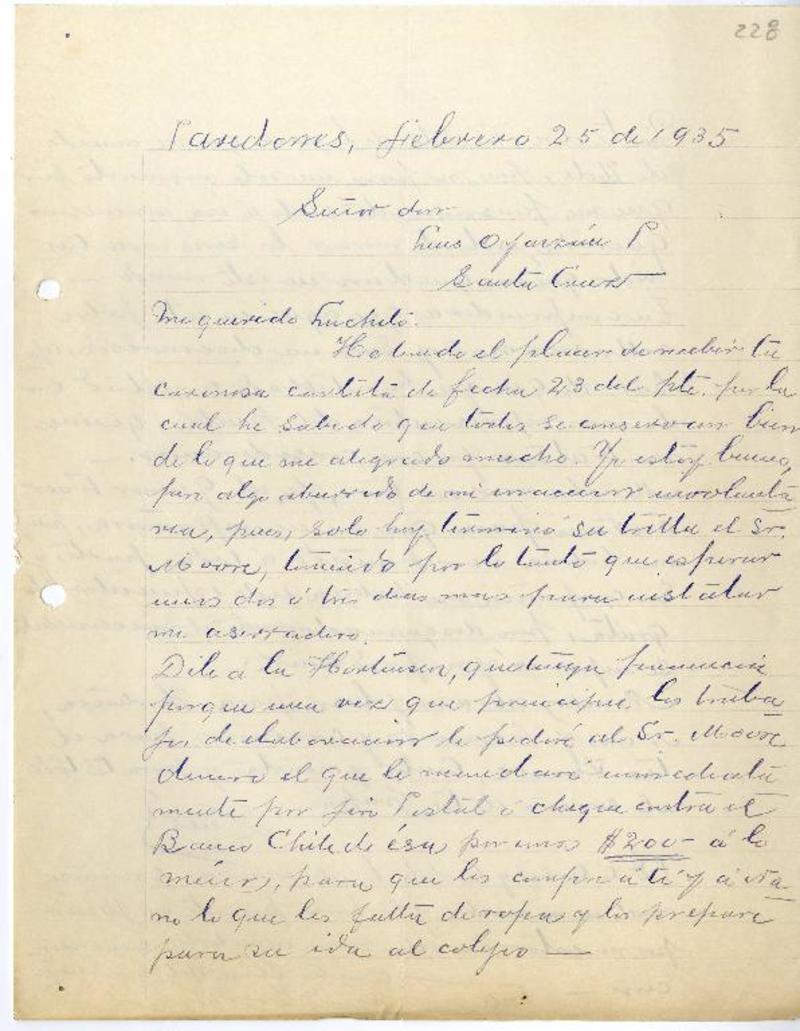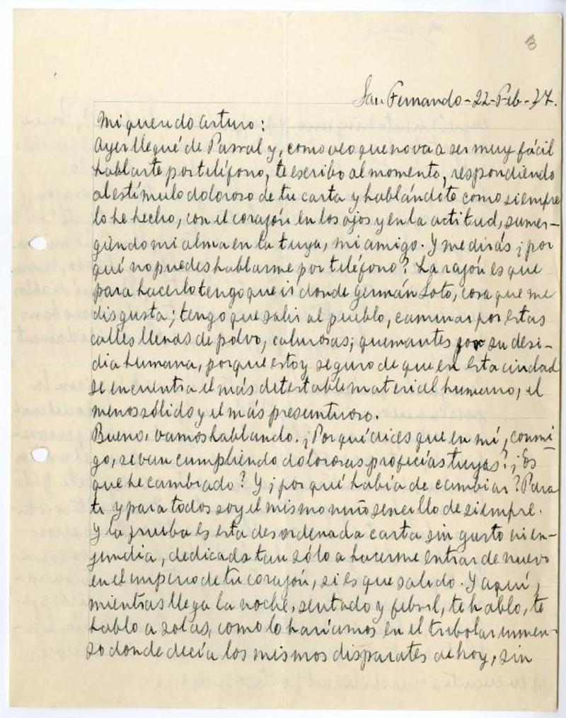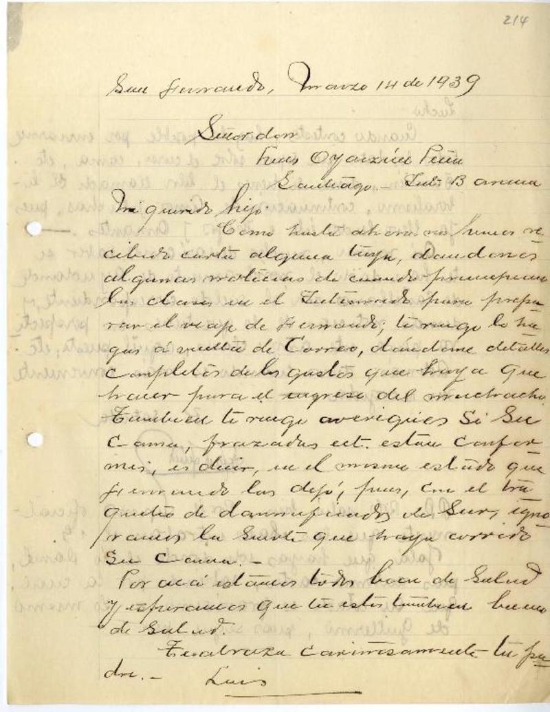 Valparaíso, Chile [a] Oscar Castro Carta, 1939 febrero 29, [manuscrito] Augusto D'Halmar.