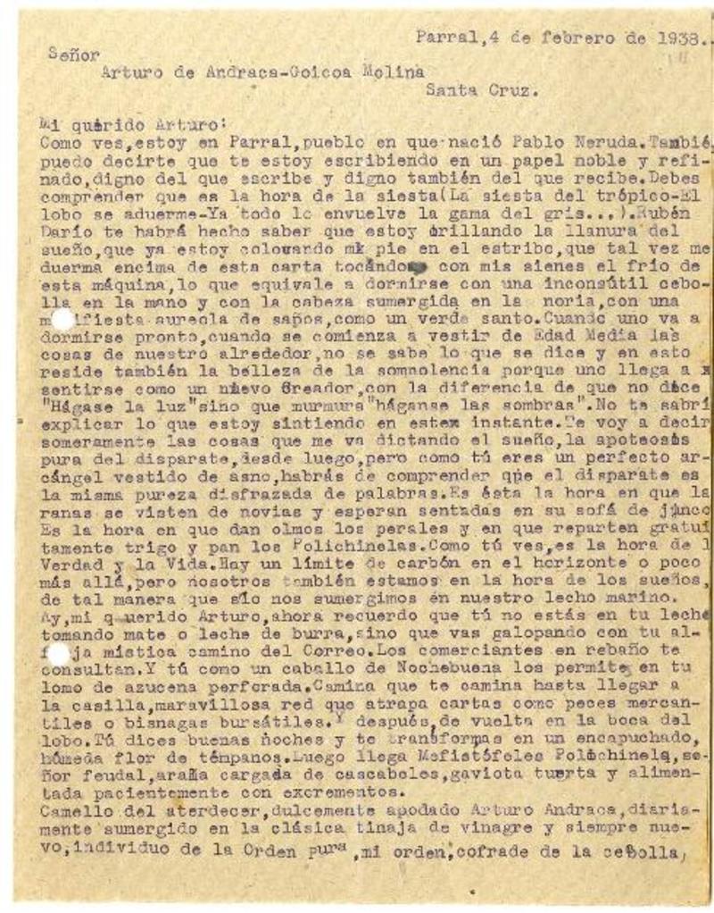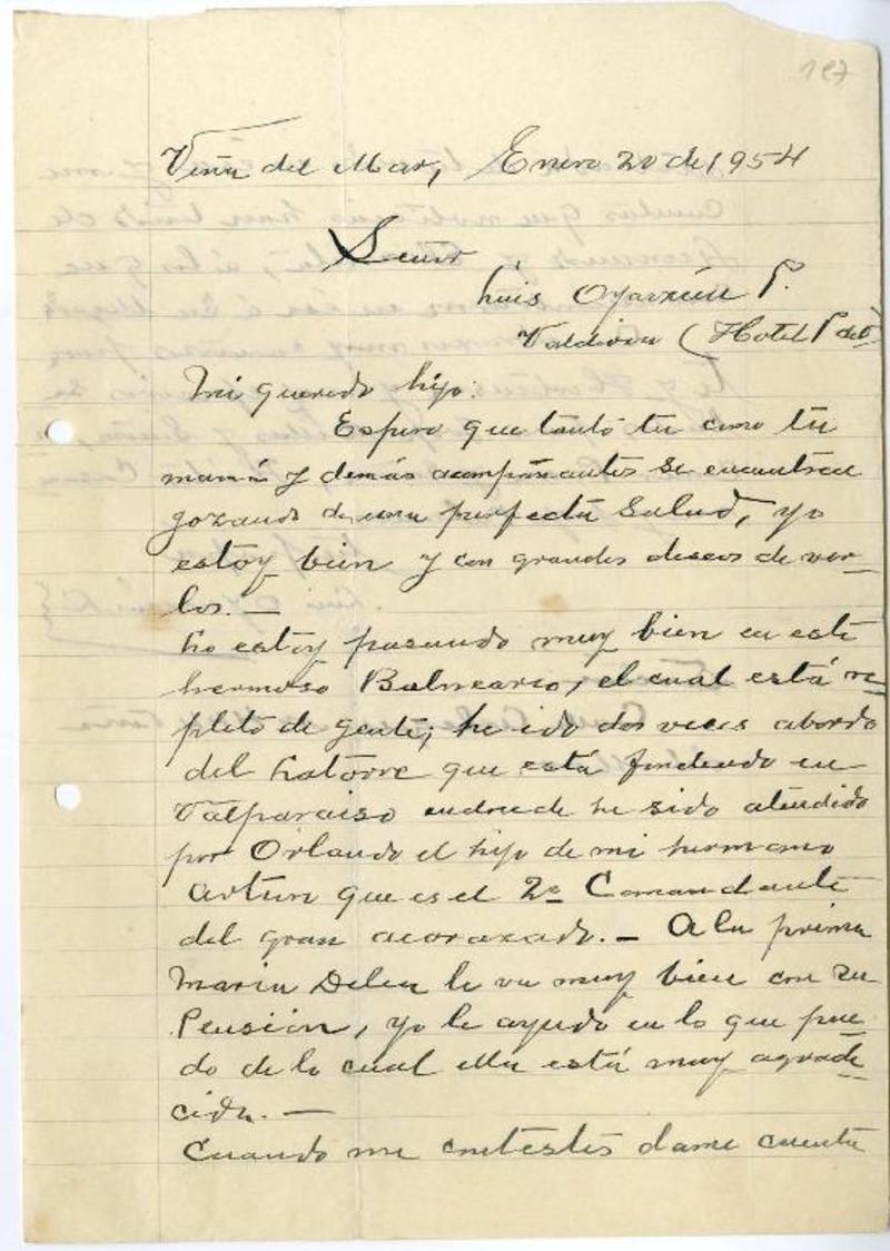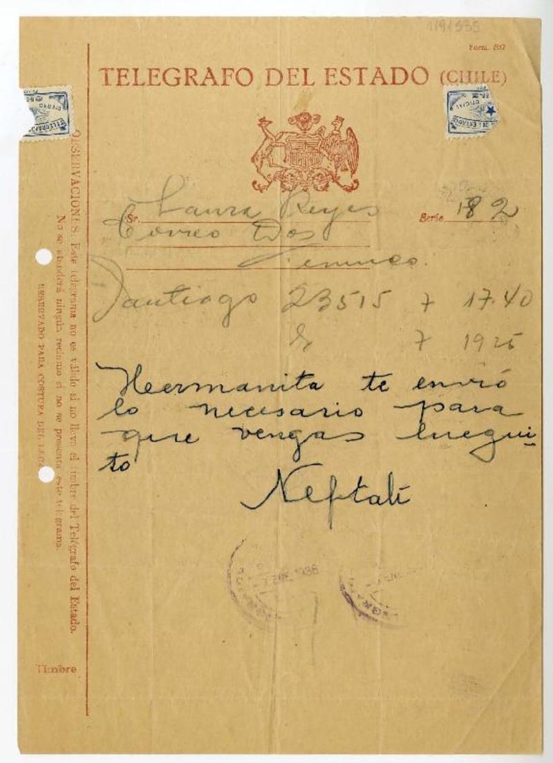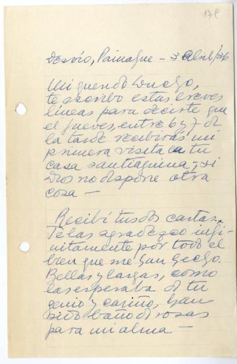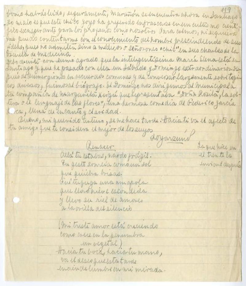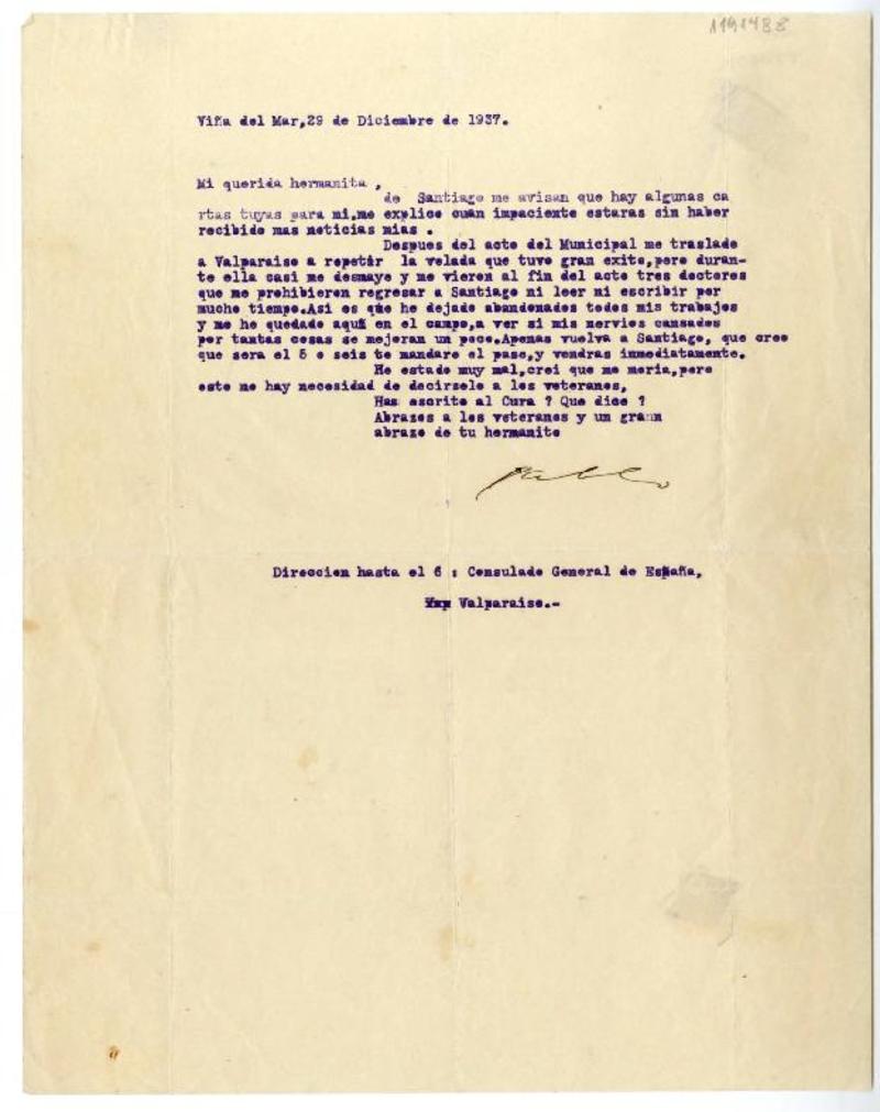 Viña del Mar, Chile [a] Laura Reyes, Temuco, Chile Carta, 1937 diciembre 29, [manuscrito] Pablo Neruda.