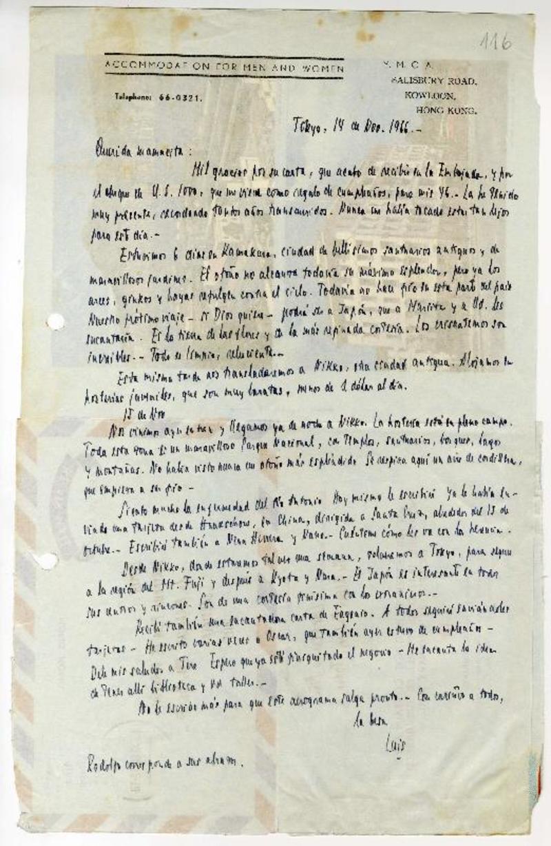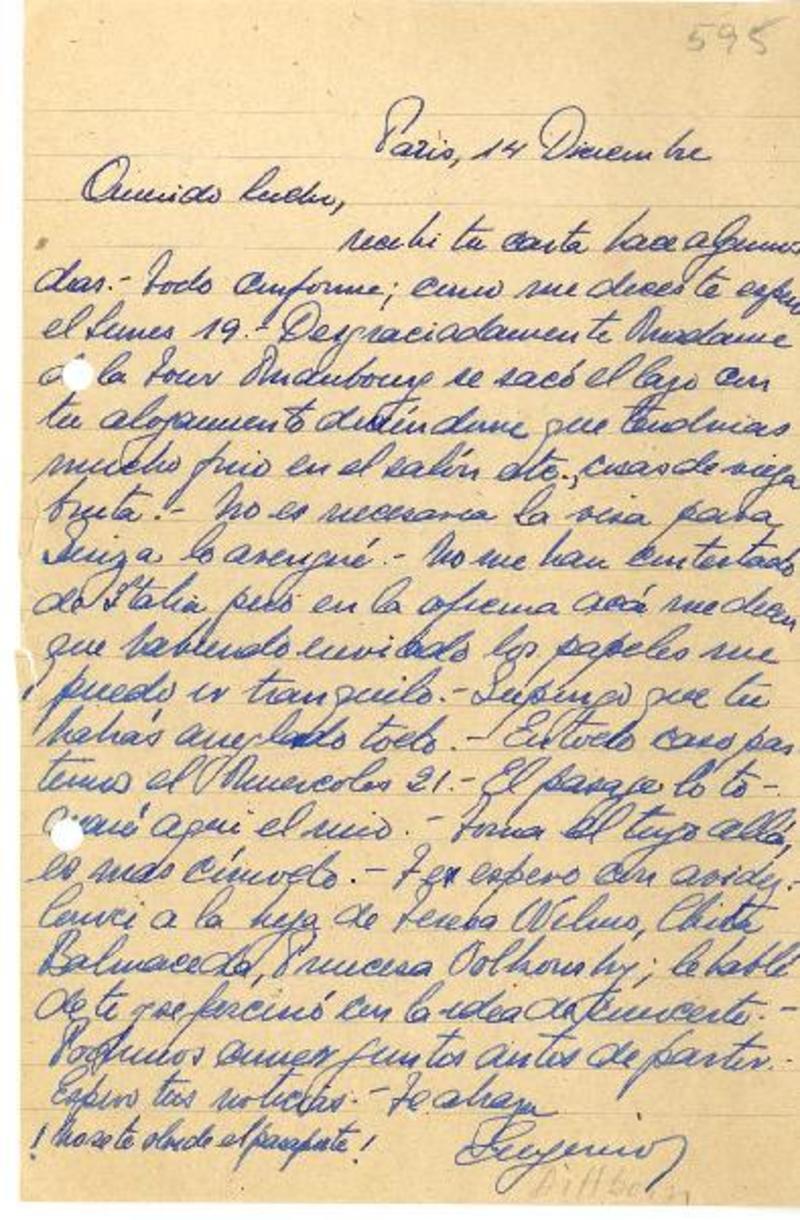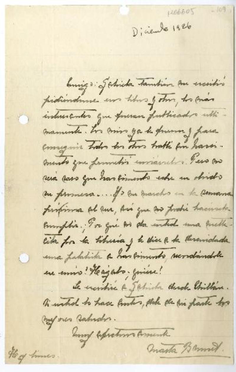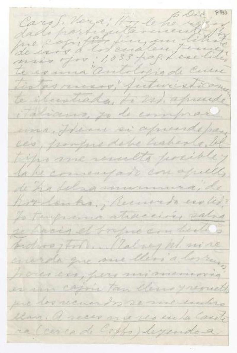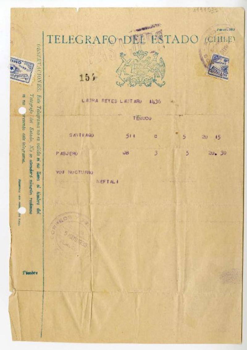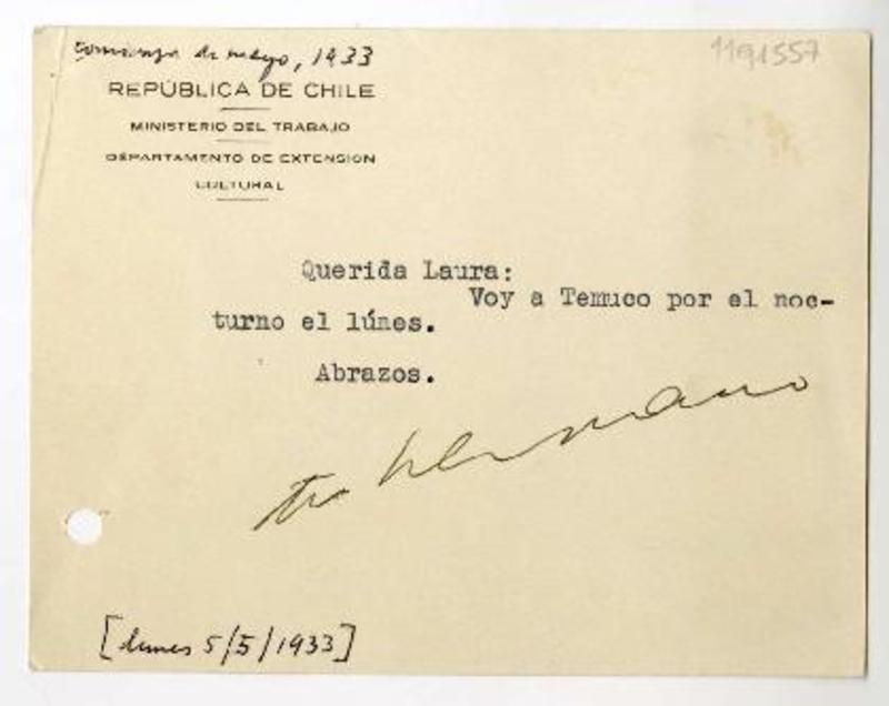 Viña del Mar, Chile [a] Laura Reyes, Temuco, Chile Carta, 1937 diciembre 29, [manuscrito] Pablo Neruda.