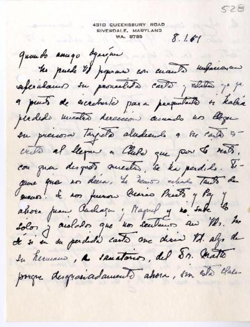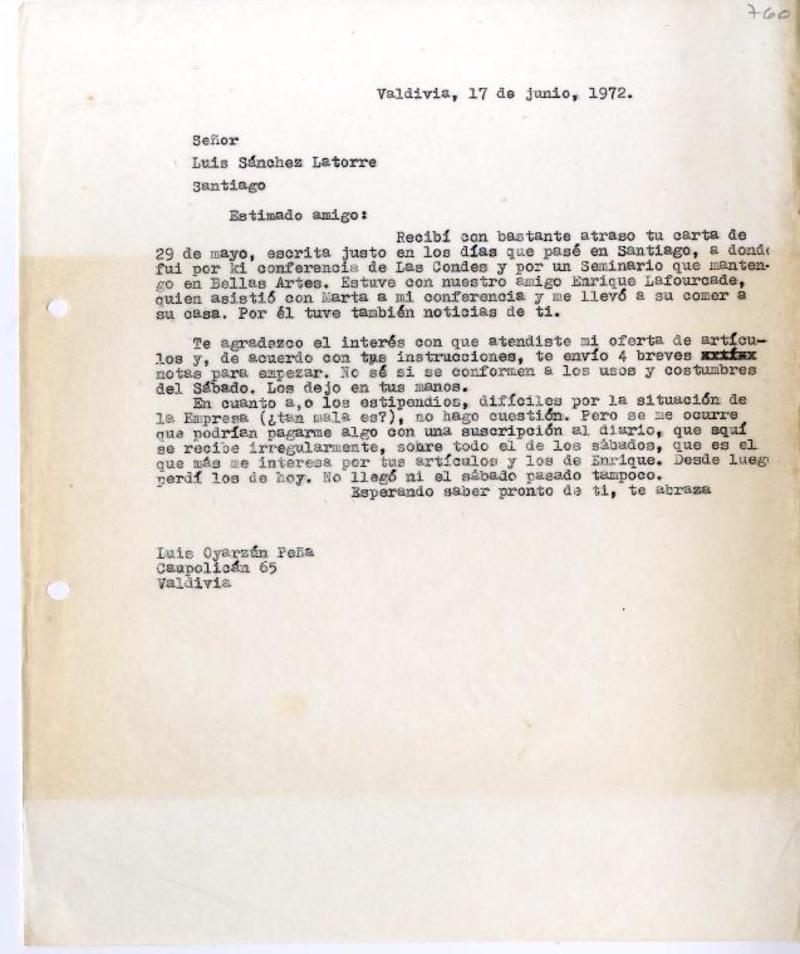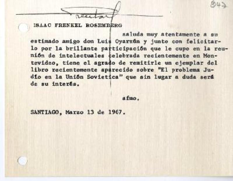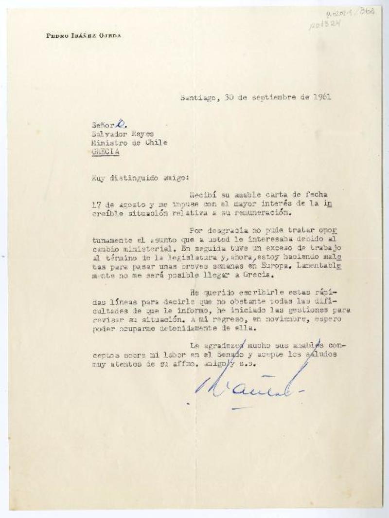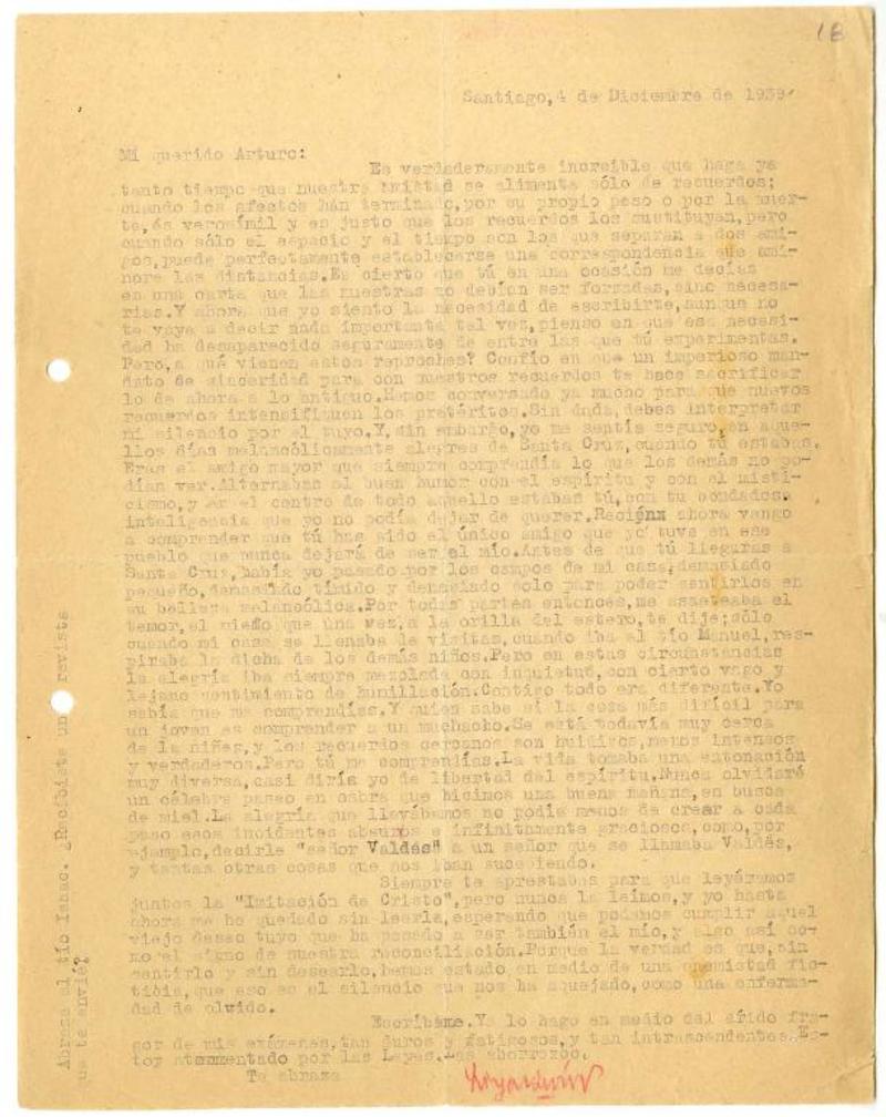 Arce Ramírez, Isaac - Correspondencia - Autores chilenos - Manuscritos chilenos - Reyes, Salvador