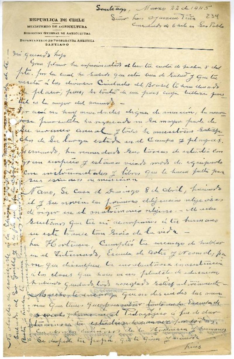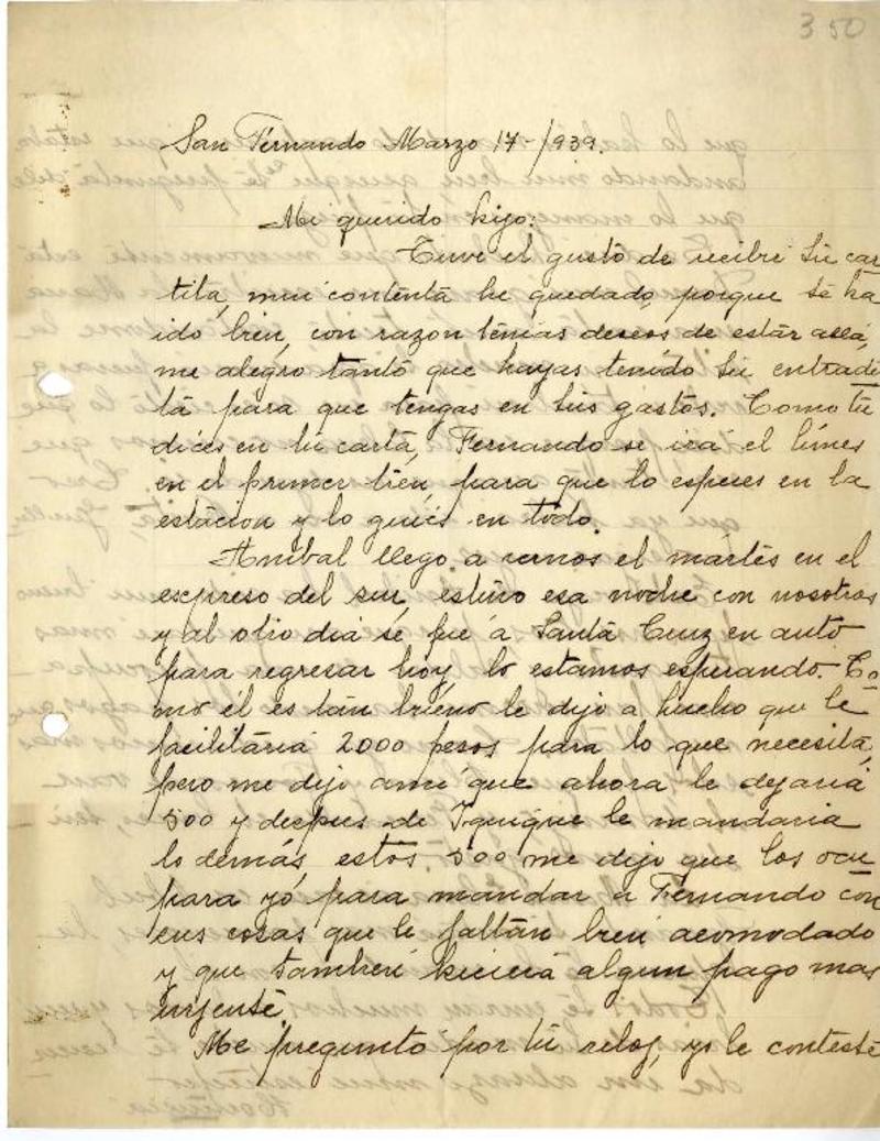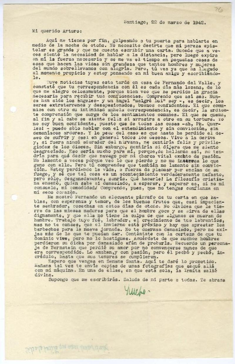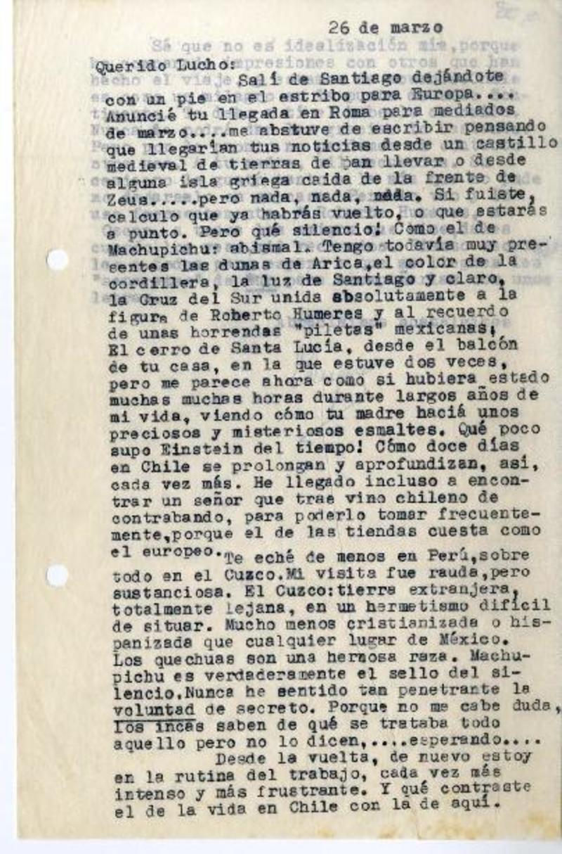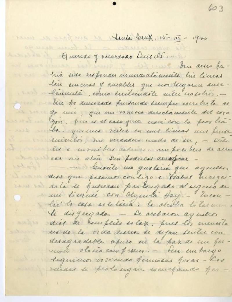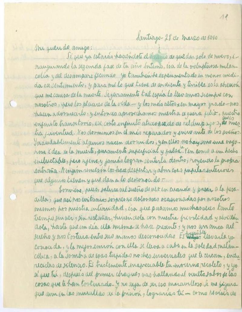 Valparaíso, Chile [a] Oscar Castro Carta, 1940 marzo 25, [manuscrito] Augusto D'Halmar.