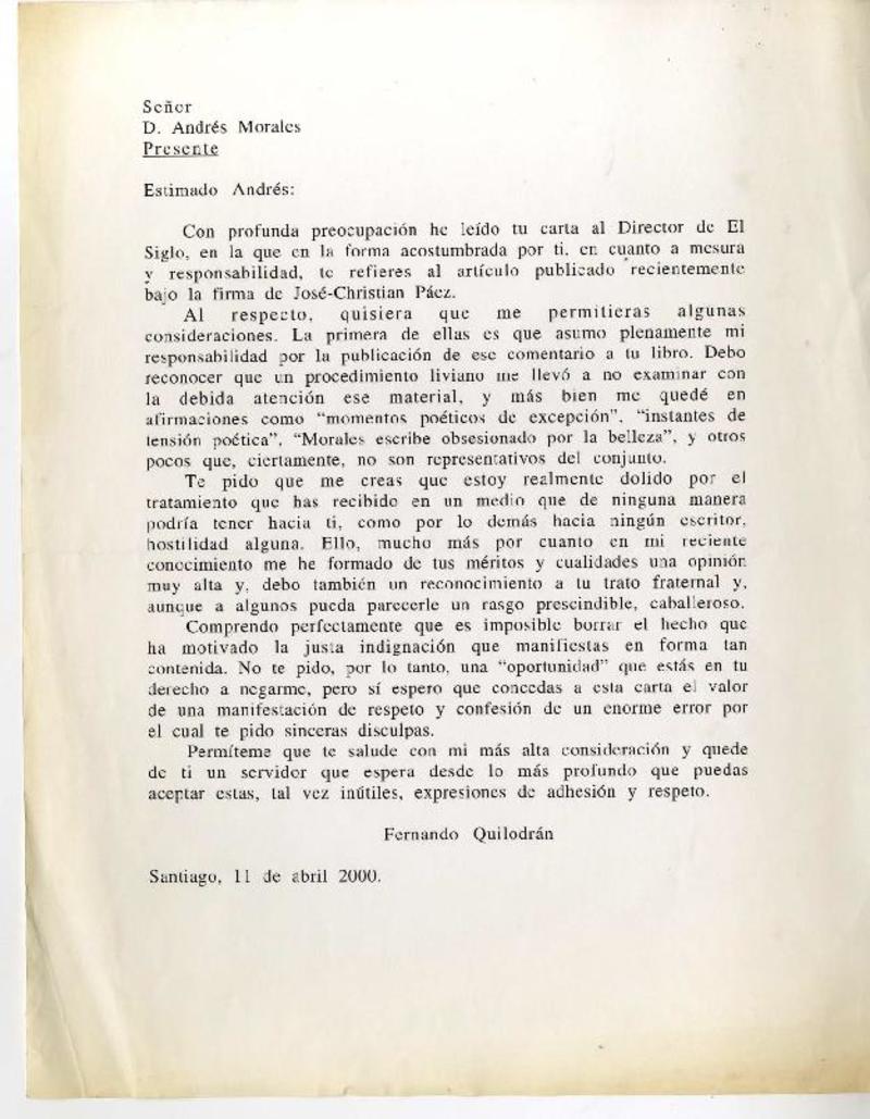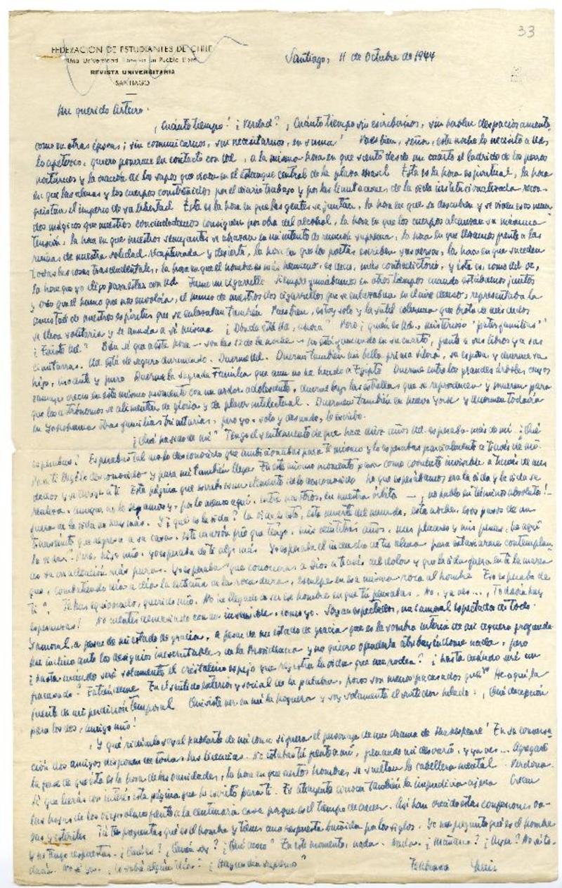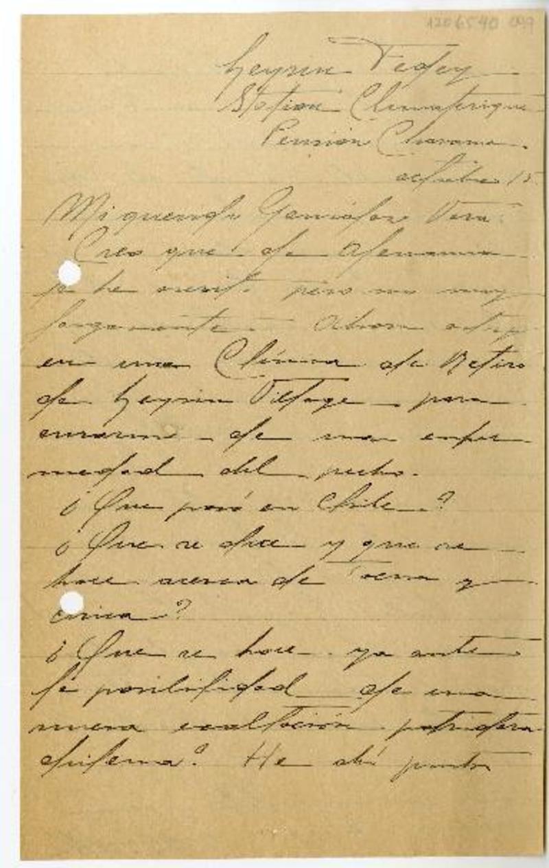 Schopf, Federico - Correspondencia - Autores chilenos - Manuscritos chilenos - Quilodrán, Fernando
