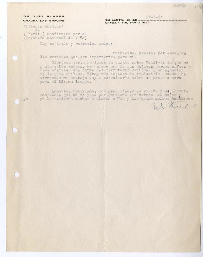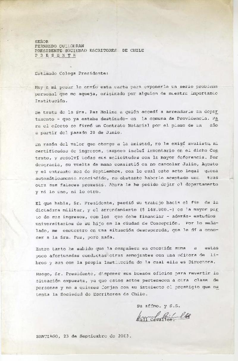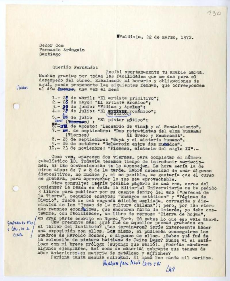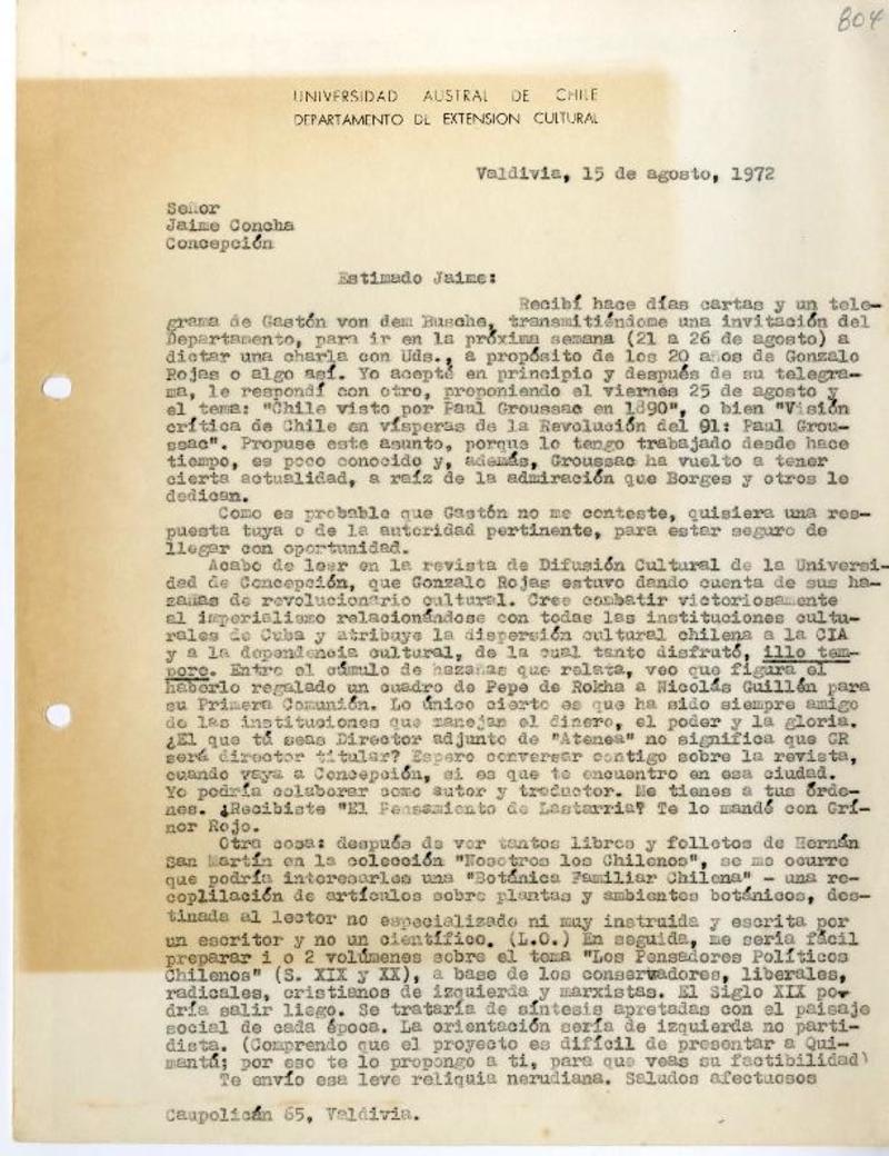 Schopf, Federico - Correspondencia - Autores chilenos - Manuscritos chilenos - Quilodrán, Fernando