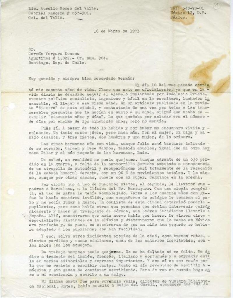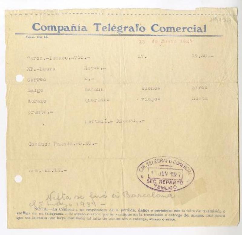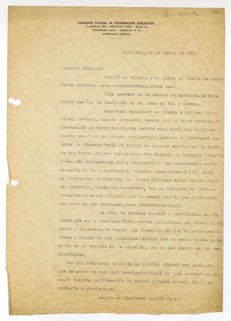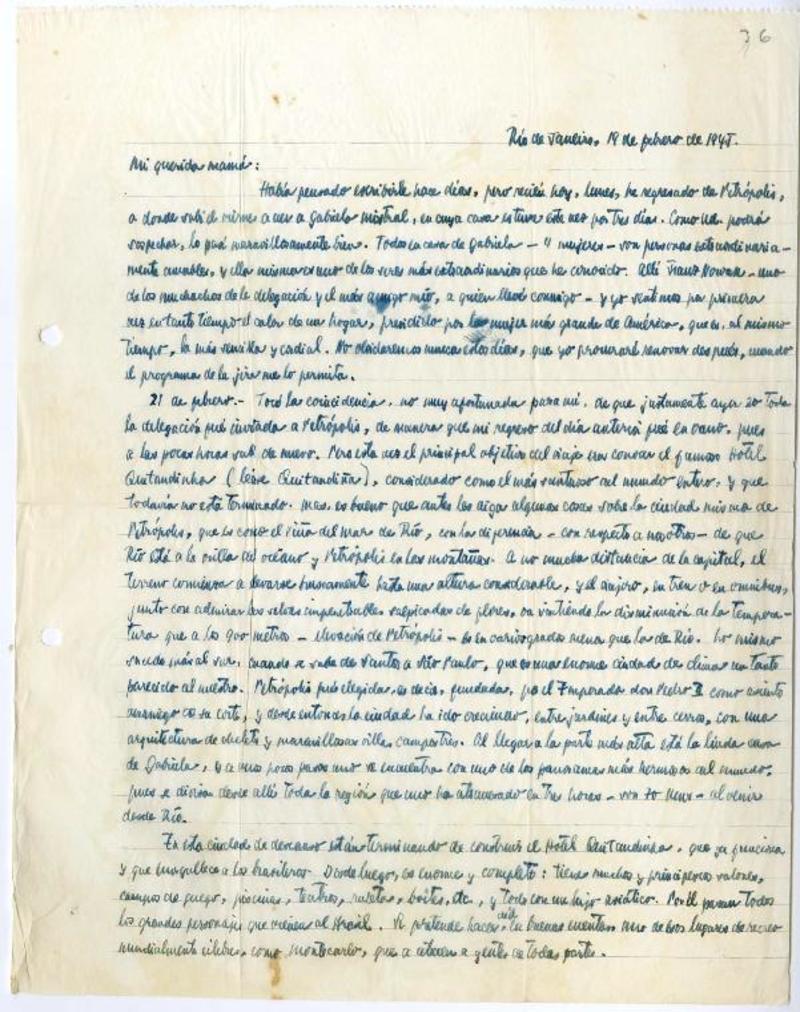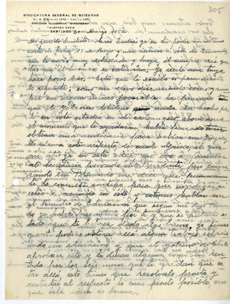 Valparaíso, Chile [a] Salvador Reyes, Bruselas Carta, 1947 marzo 12, [manuscrito] Staforelli.