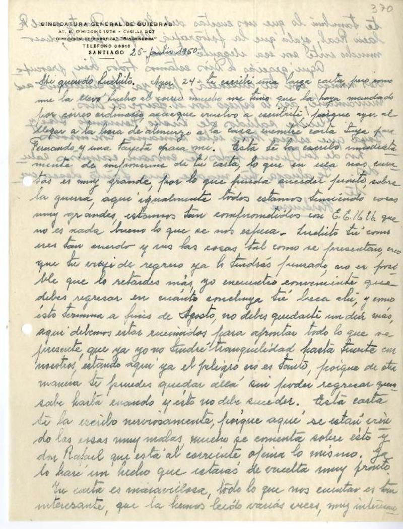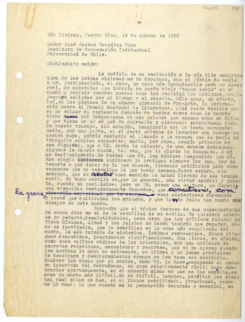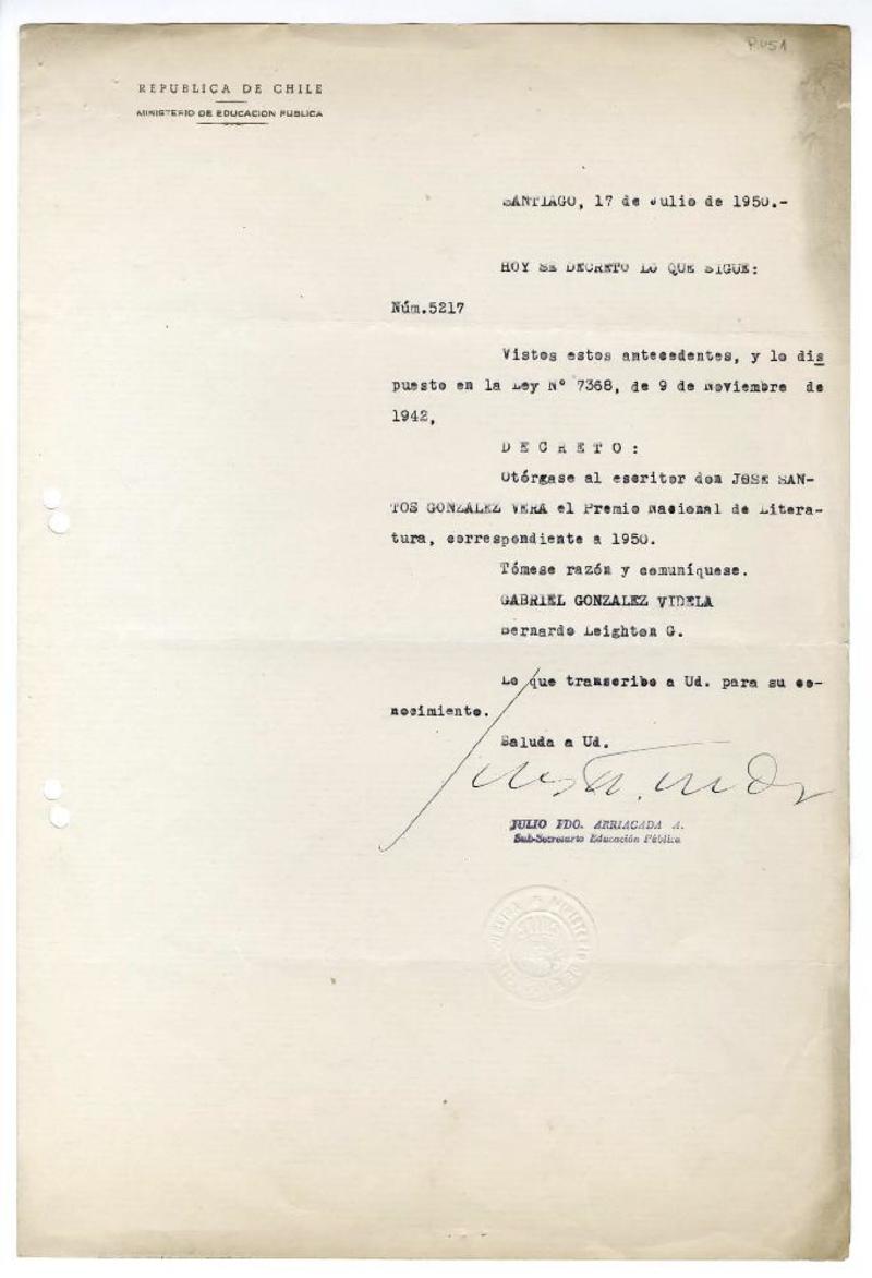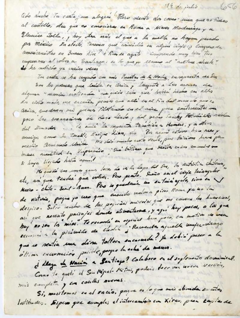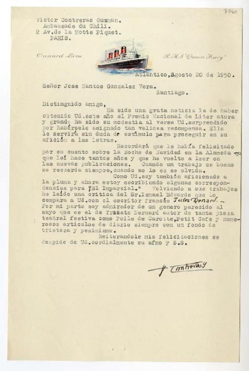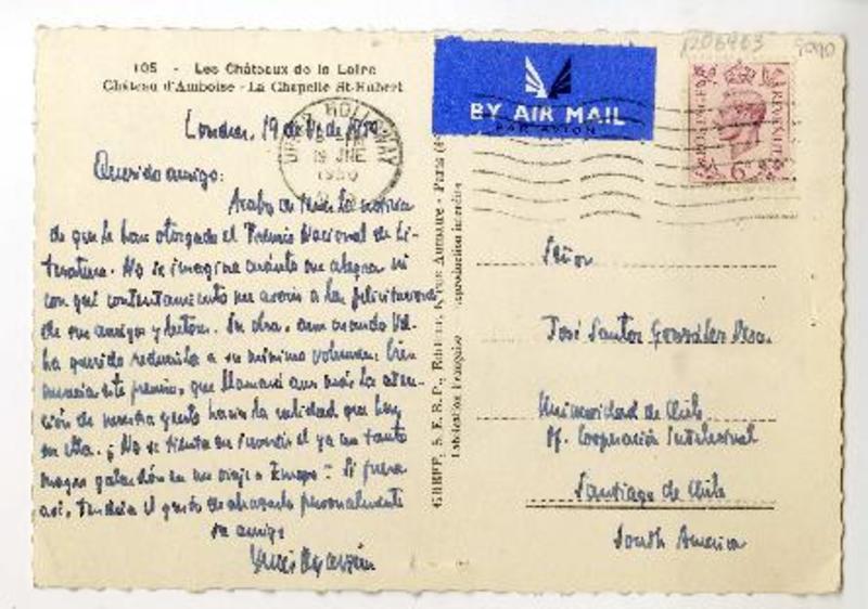 Varios países [a] José Santos González Vera, Santiago, Chile Cartas, Julio de 1950, [manuscrito] Varios autores.