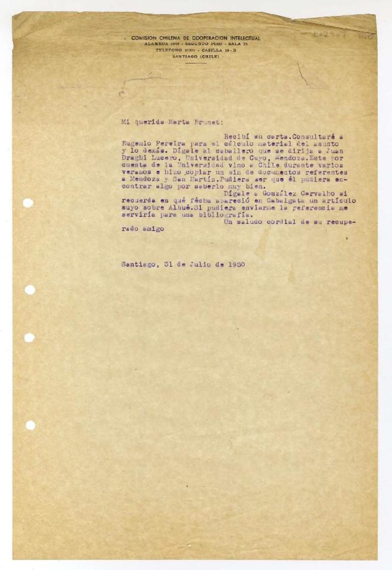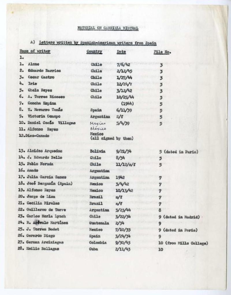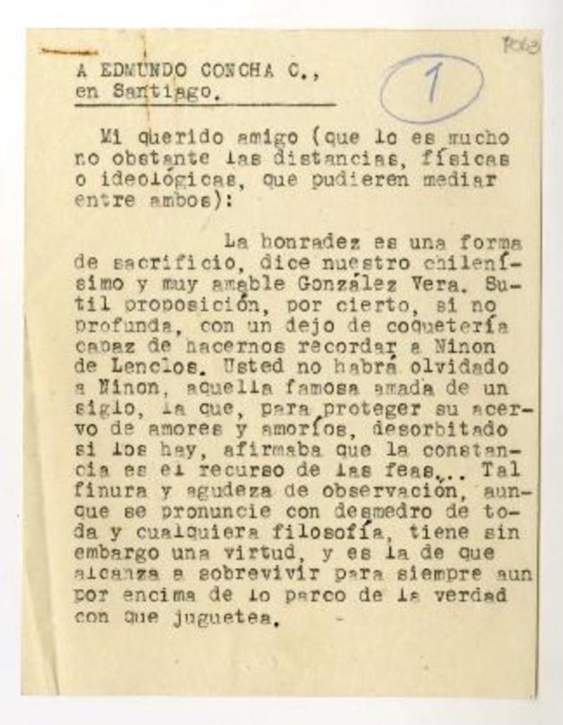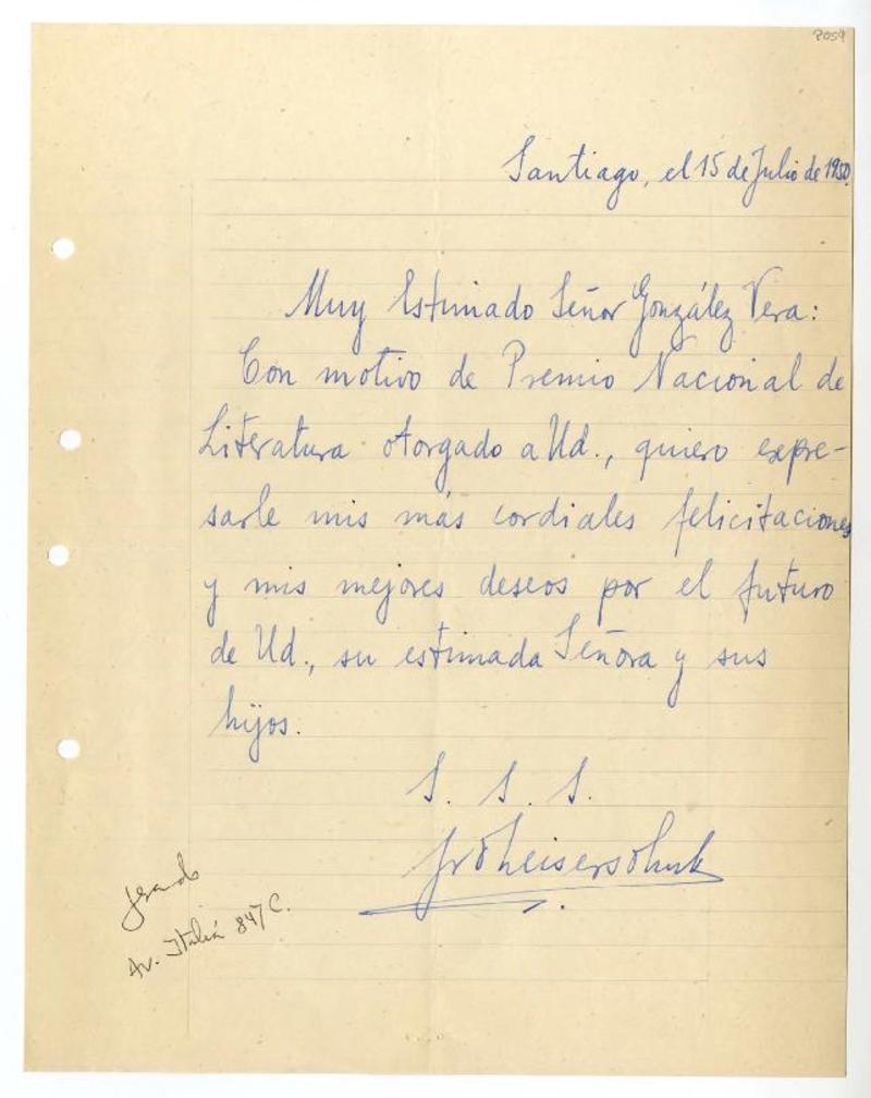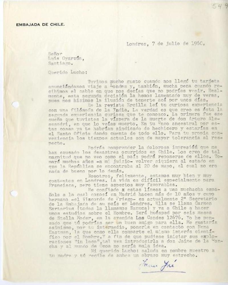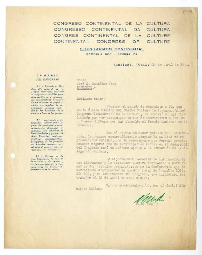 Varios países [a] José Santos González Vera, Santiago, Chile Cartas, Julio de 1950, [manuscrito] Varios autores.