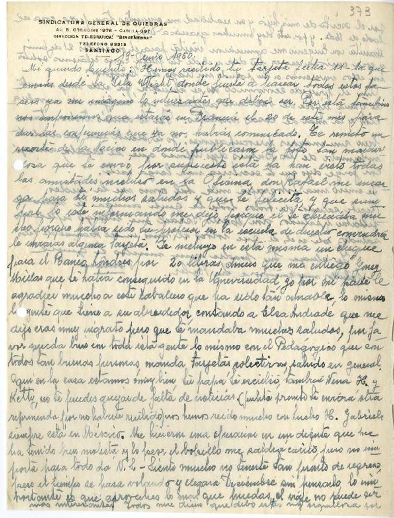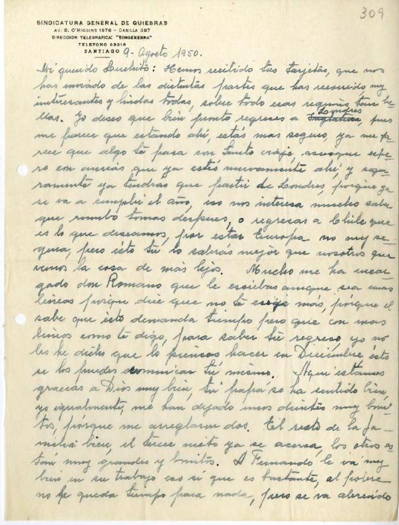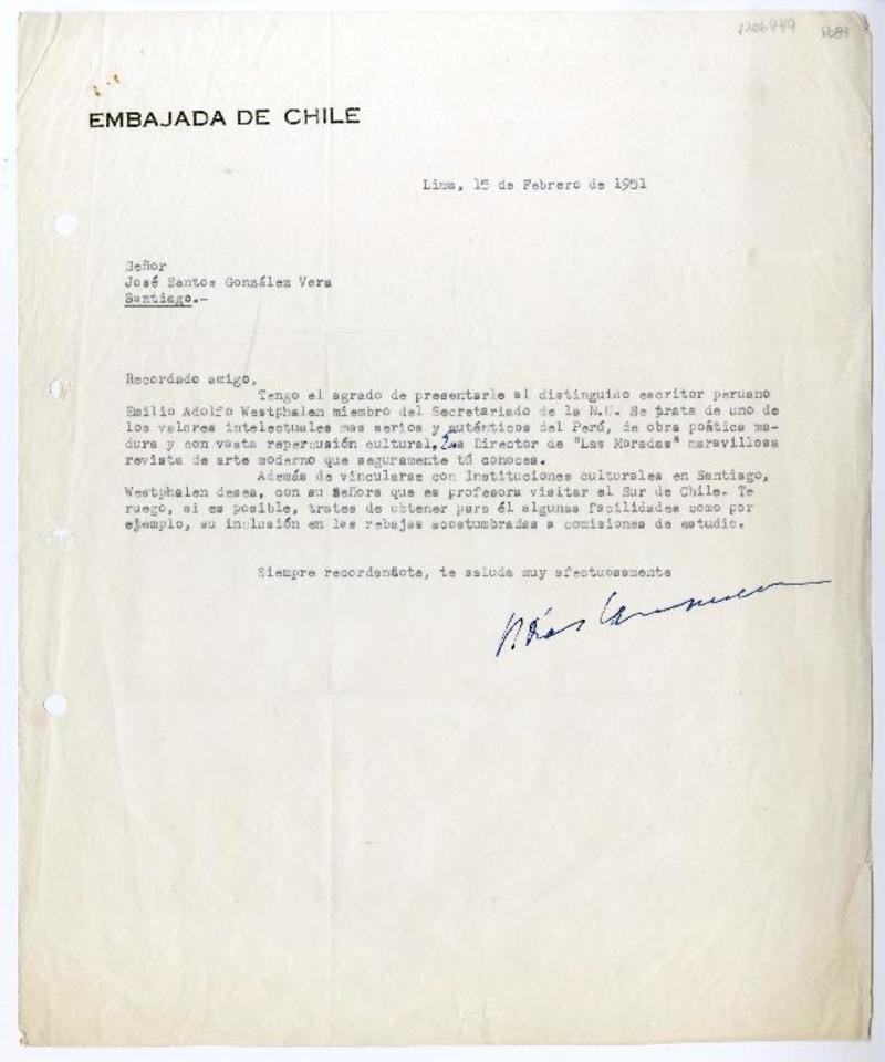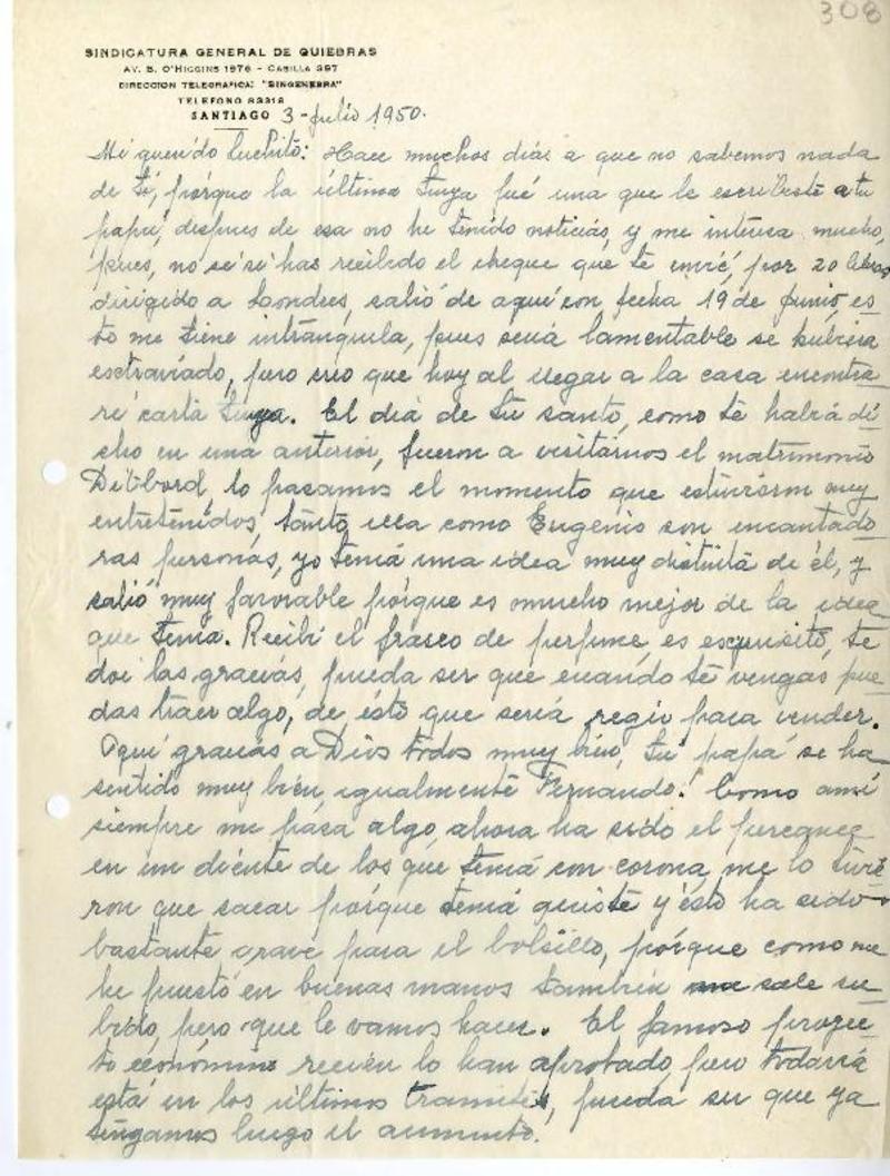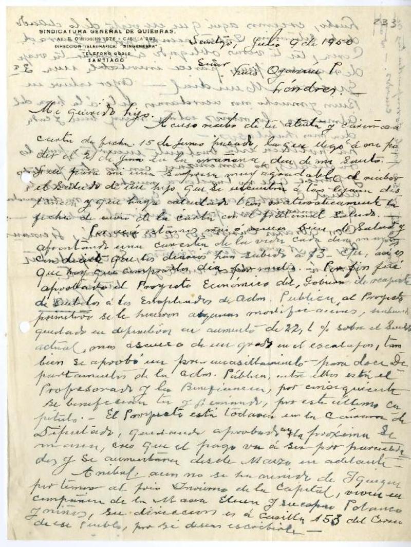 Varios países [a] José Santos González Vera, Santiago, Chile Cartas, Julio de 1950, [manuscrito] Varios autores.