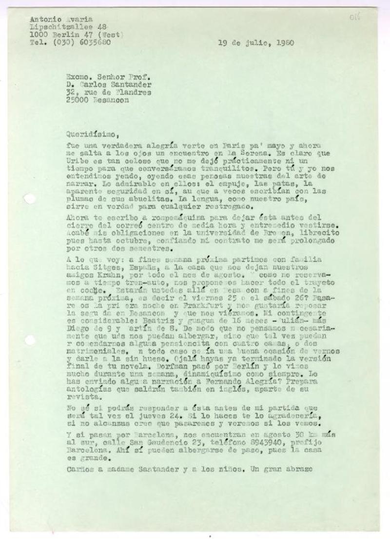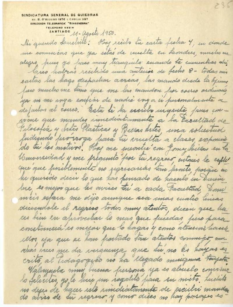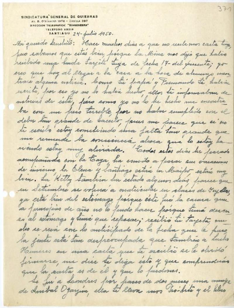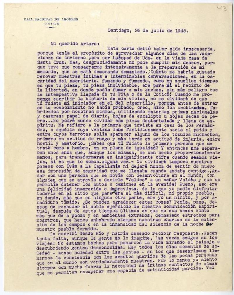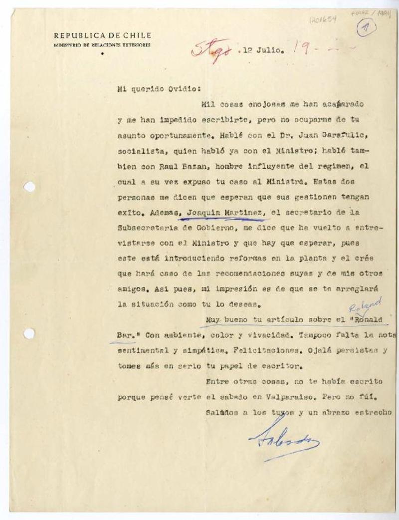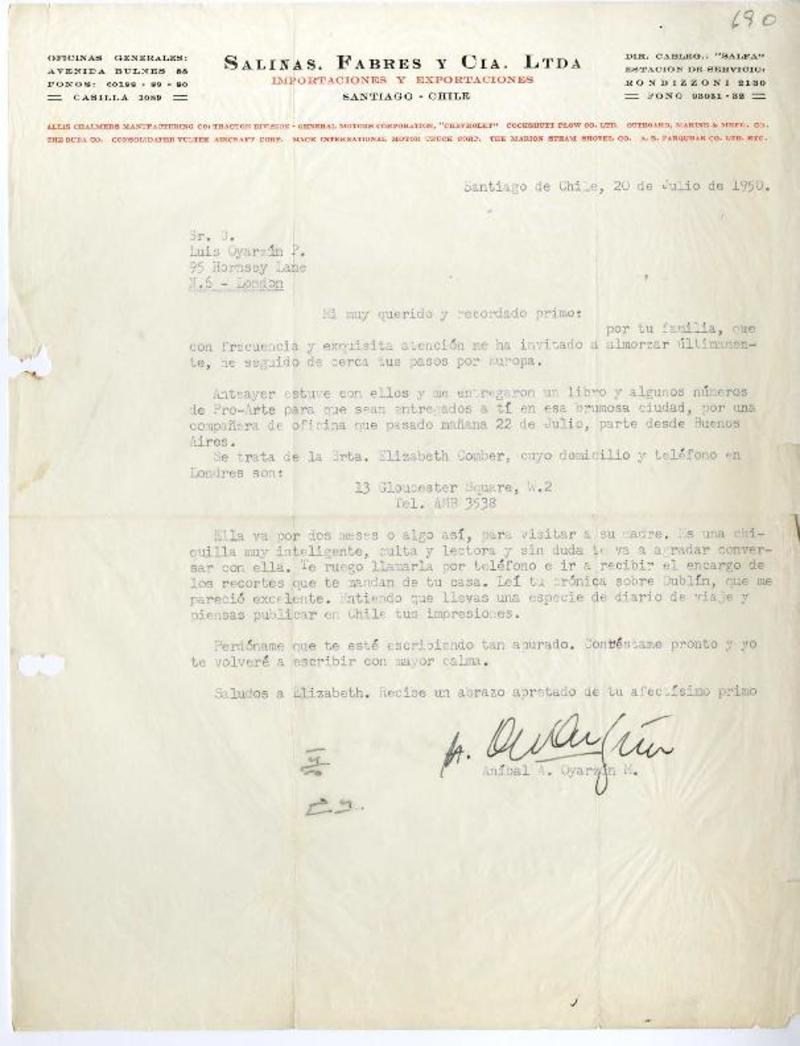 Varios países [a] José Santos González Vera, Santiago, Chile Cartas, Julio de 1950, [manuscrito] Varios autores.