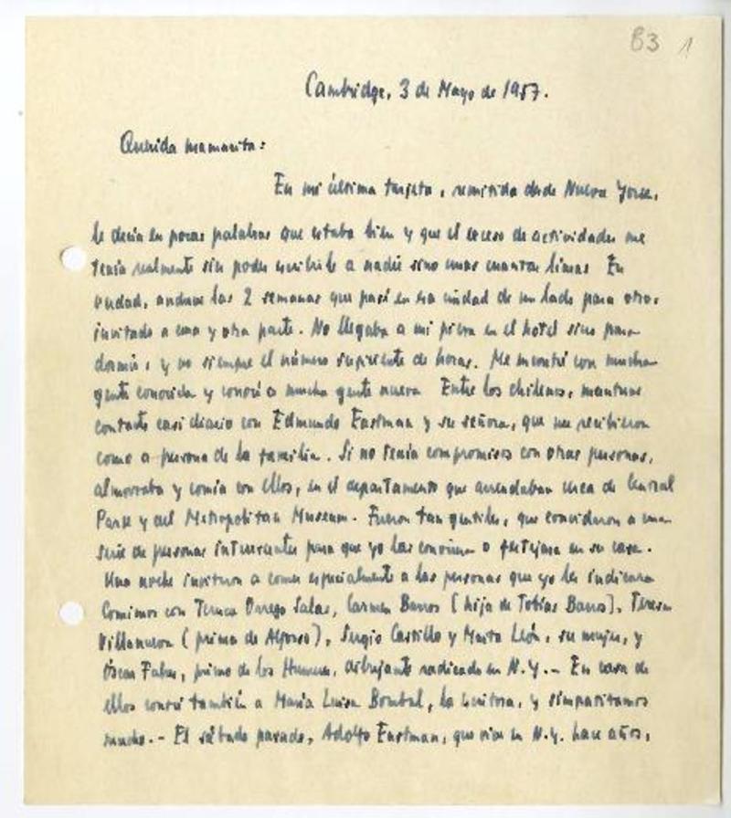 Valparaíso, Santiago, Chile [a] Salvador Reyes y Suzanne Bertrand Cartas, 1951, 1952 y 1981, [manuscrito] Ovidio Guzmán Salce (Mario Bonat).