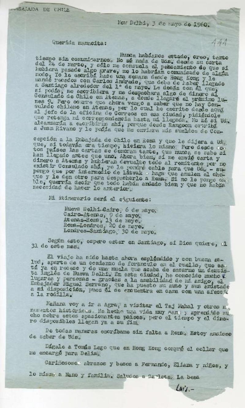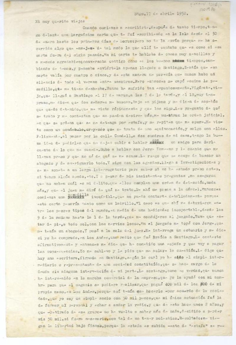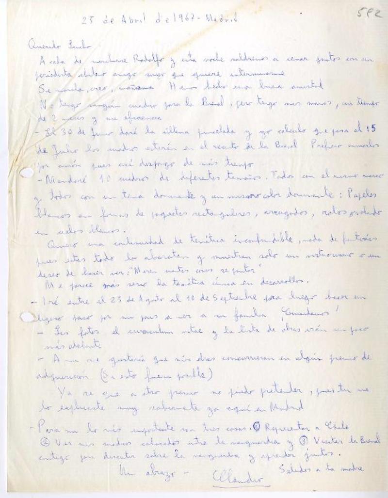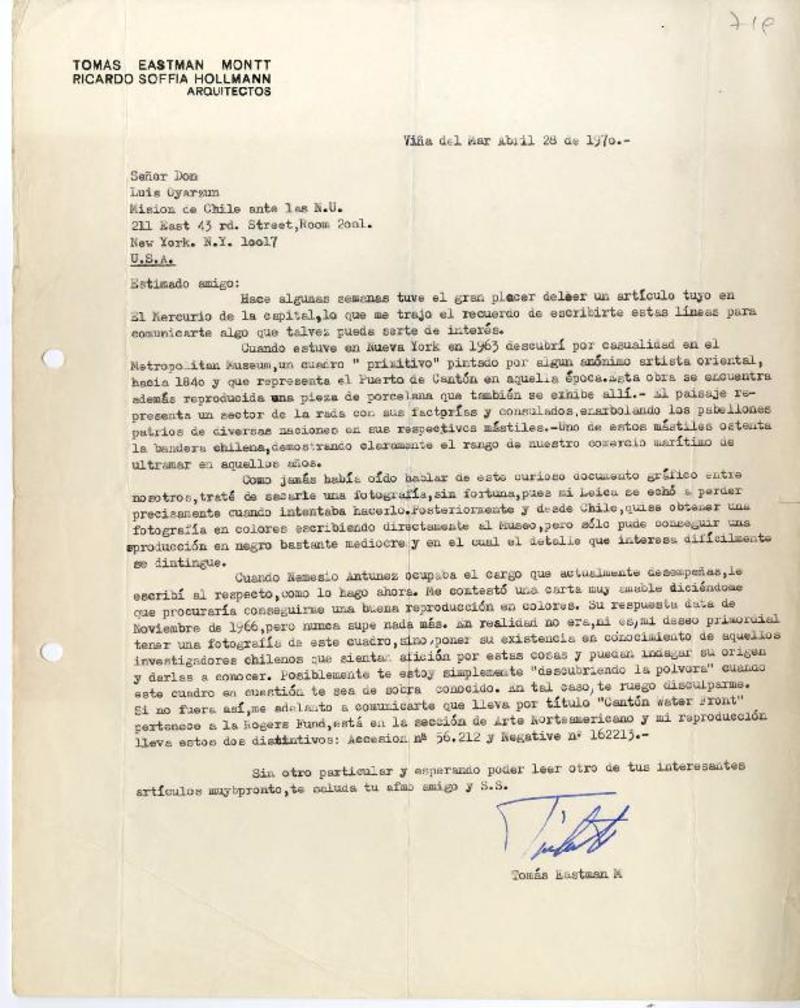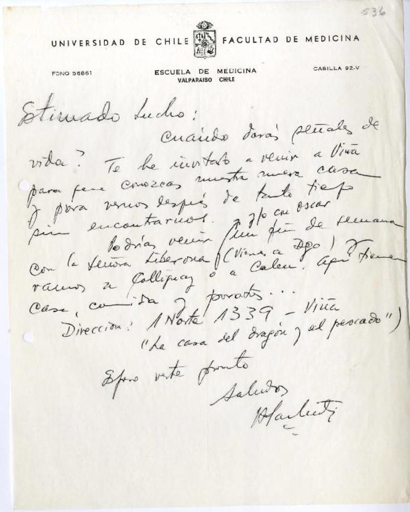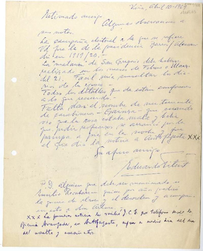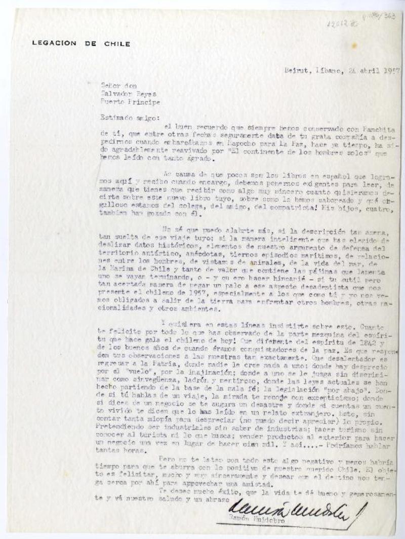 Viña del Mar, Chile [a] Salvador Reyes Carta, 1960 abril 10, [manuscrito] Eduardo Titus.
