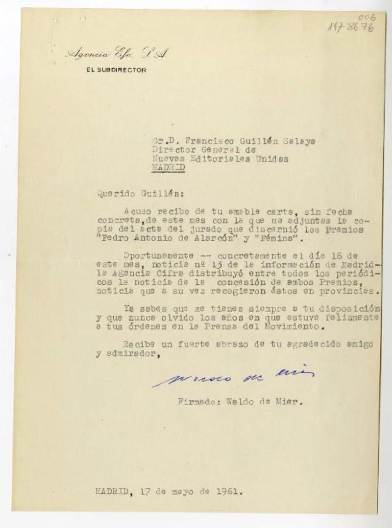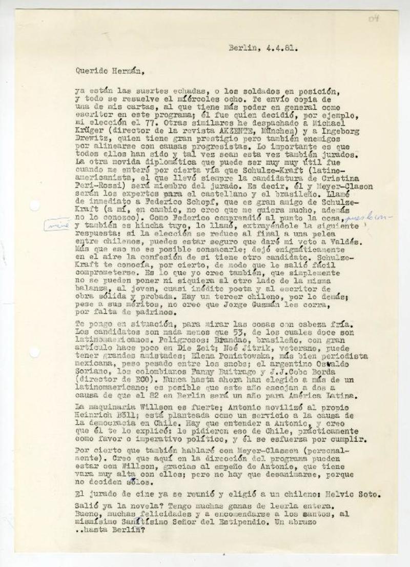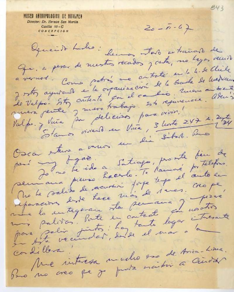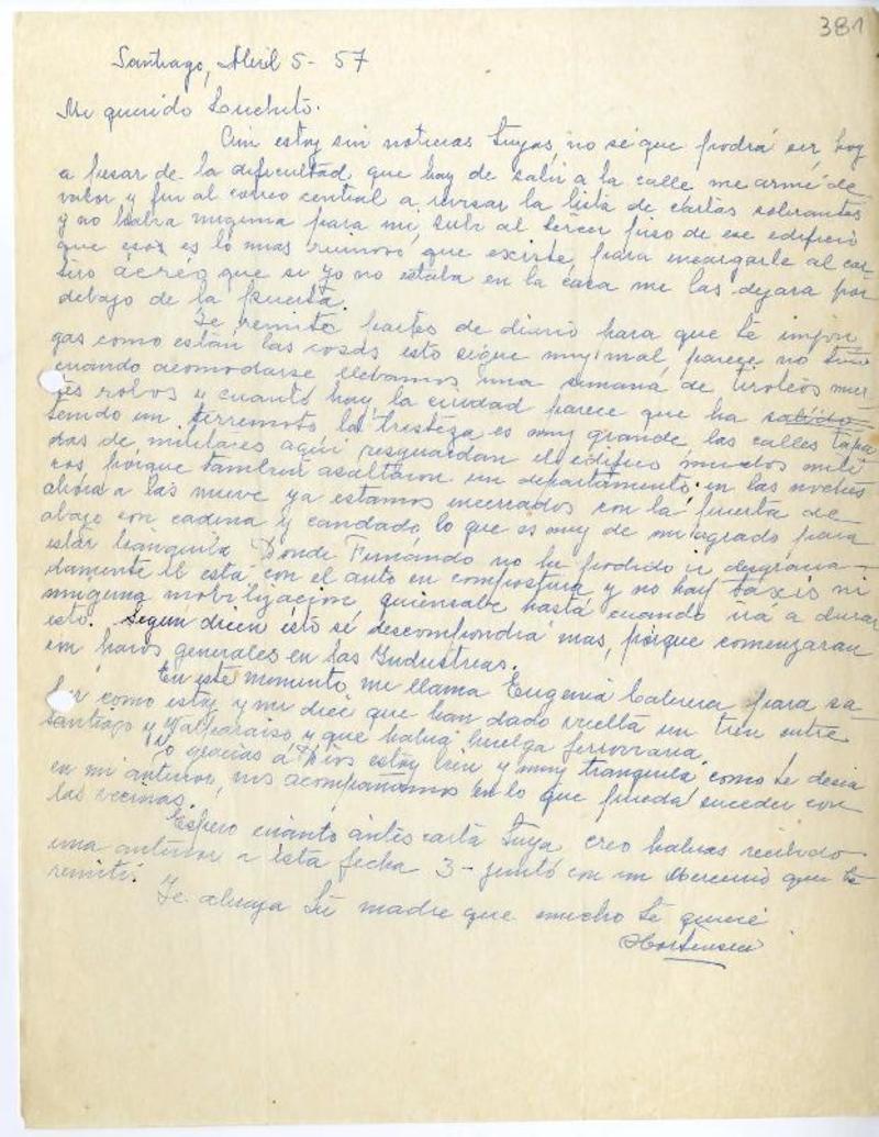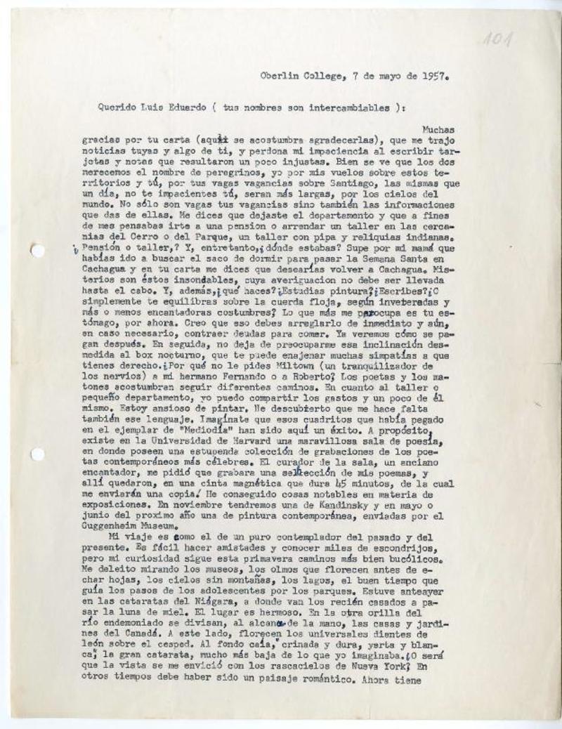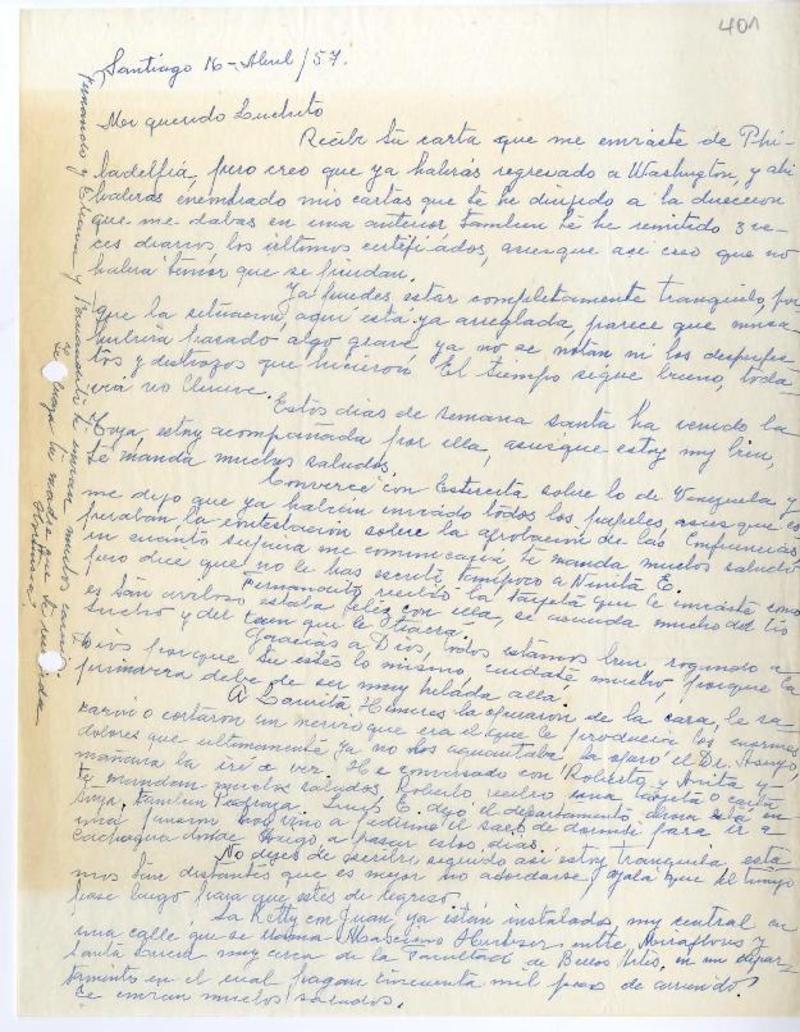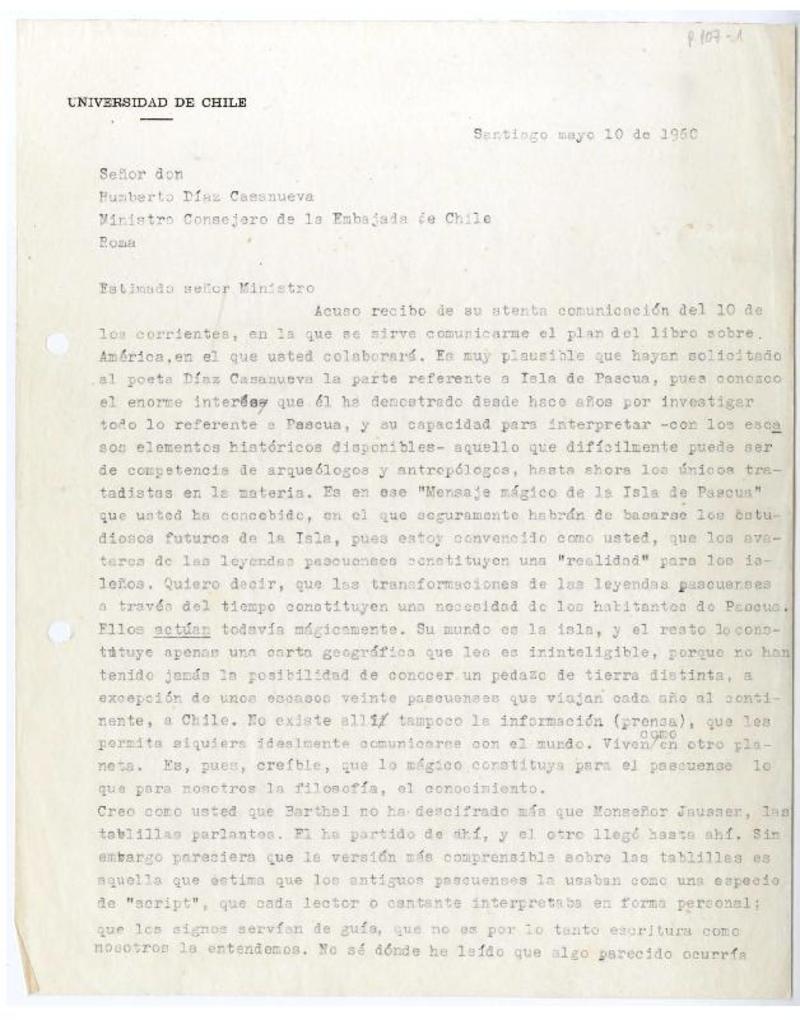 Viña del Mar, Chile [a] Salvador Reyes Carta, 1960 abril 10, [manuscrito] Eduardo Titus.