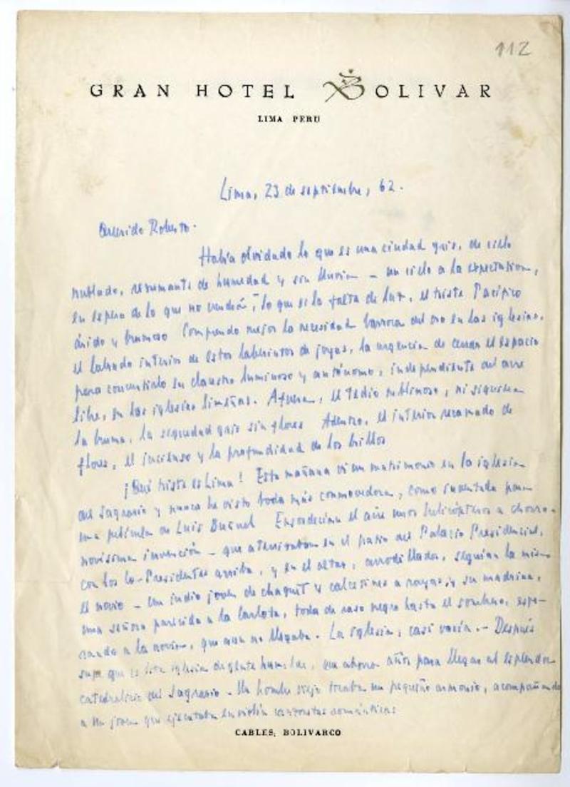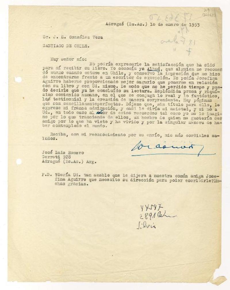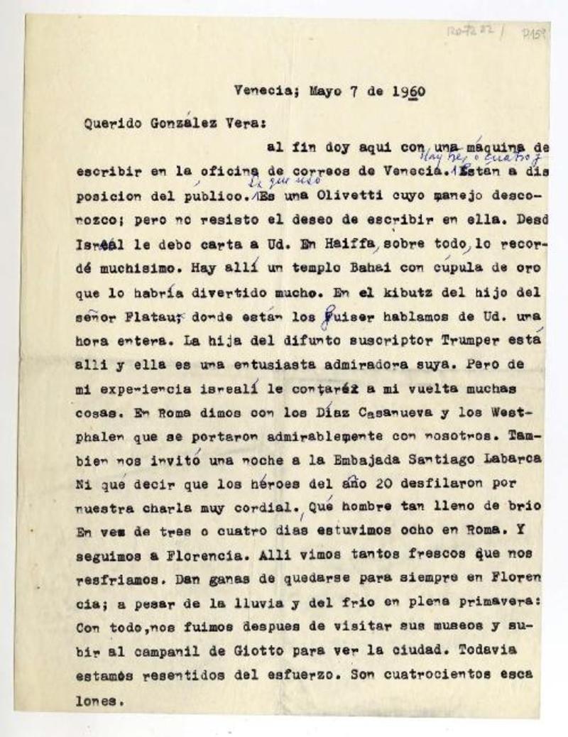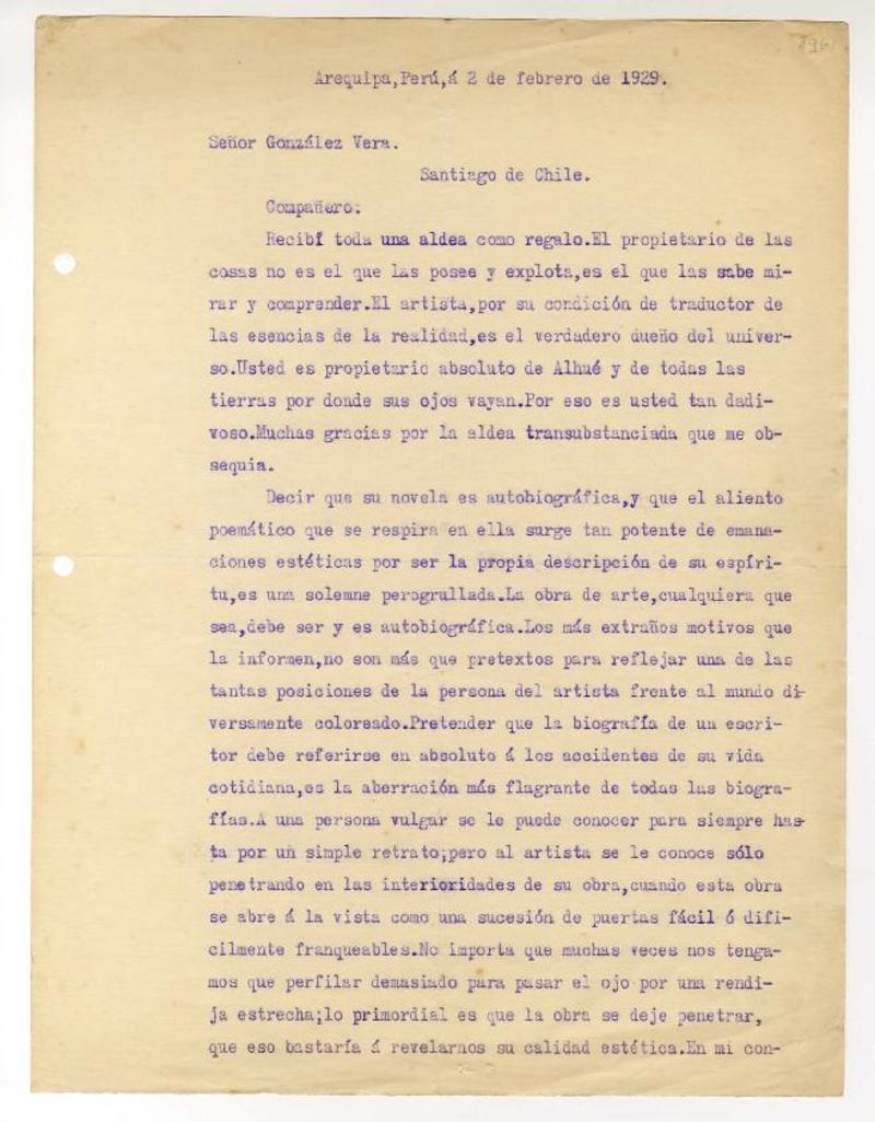 Correspondencia - Autores peruanos - González Vera, José Santos - Alegría, Ciro - Manuscritos peruanos - Autores chilenos