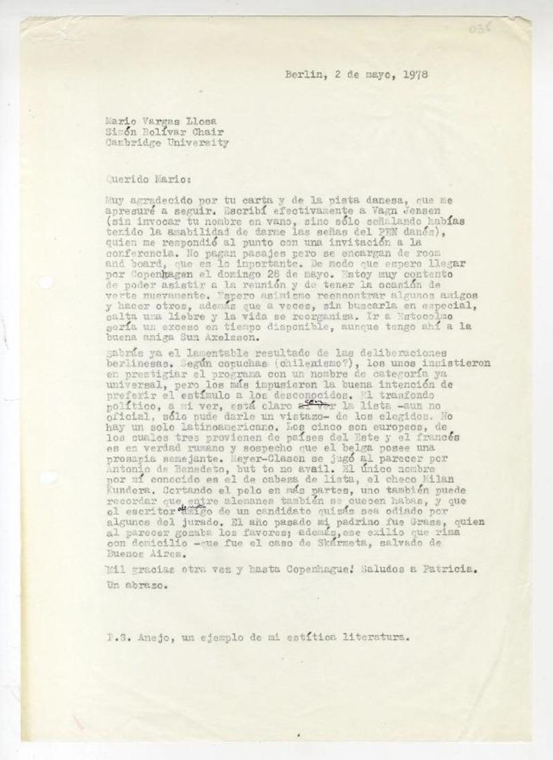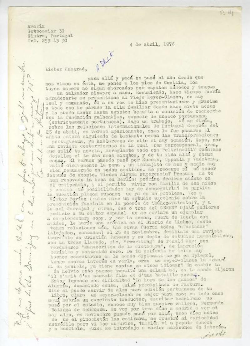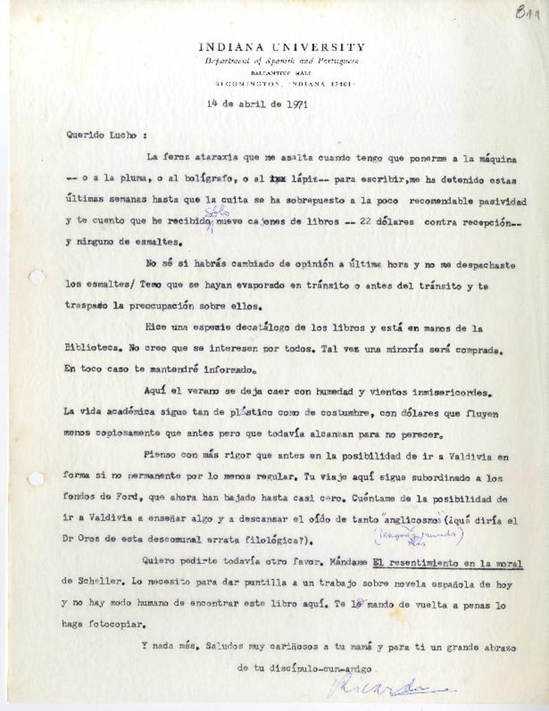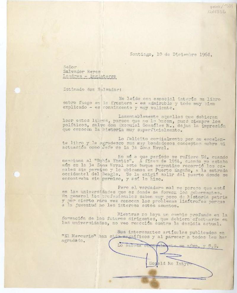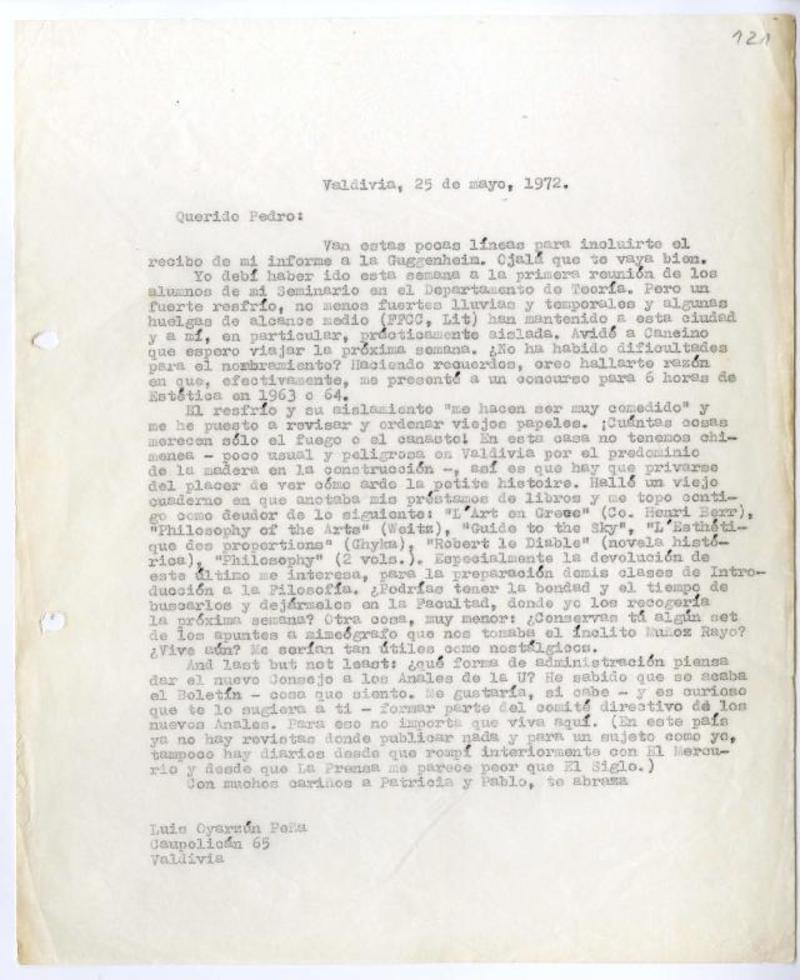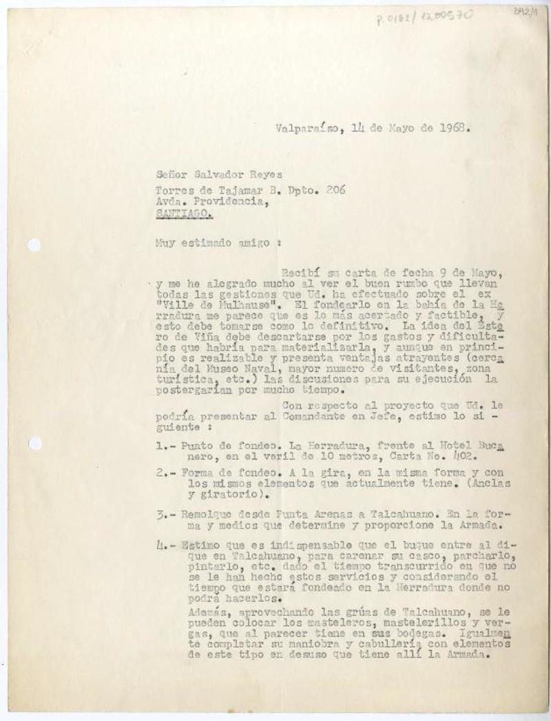 Valparaíso, Chile [a] Salvador Reyes, Santiago, Chile Carta, 1968 mayo 14, [manuscrito] Augusto Geiger Stahr.