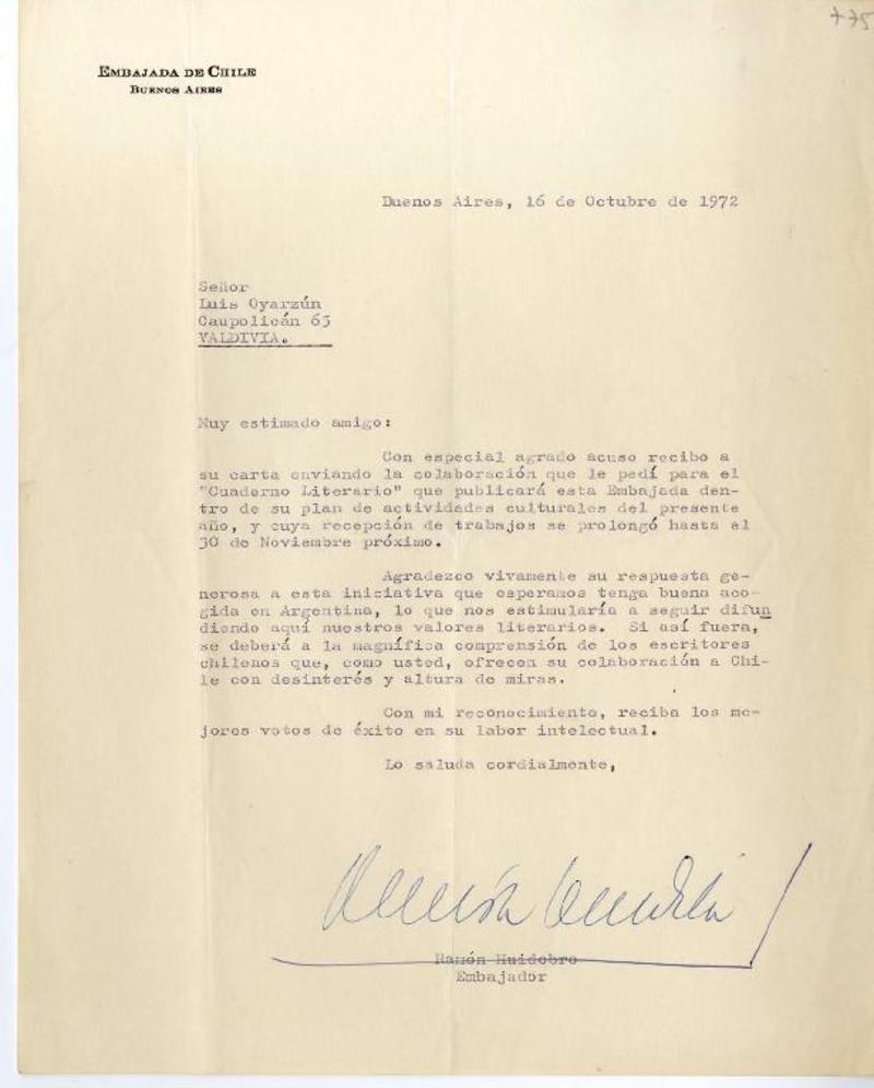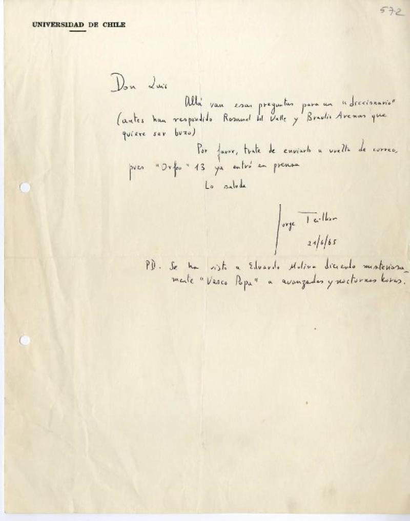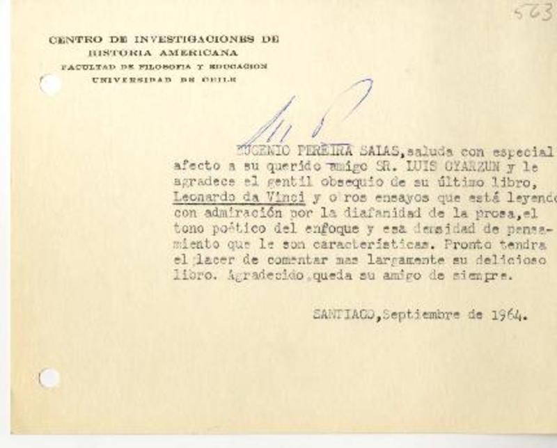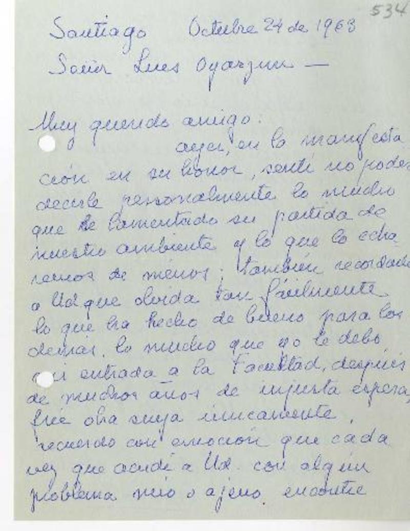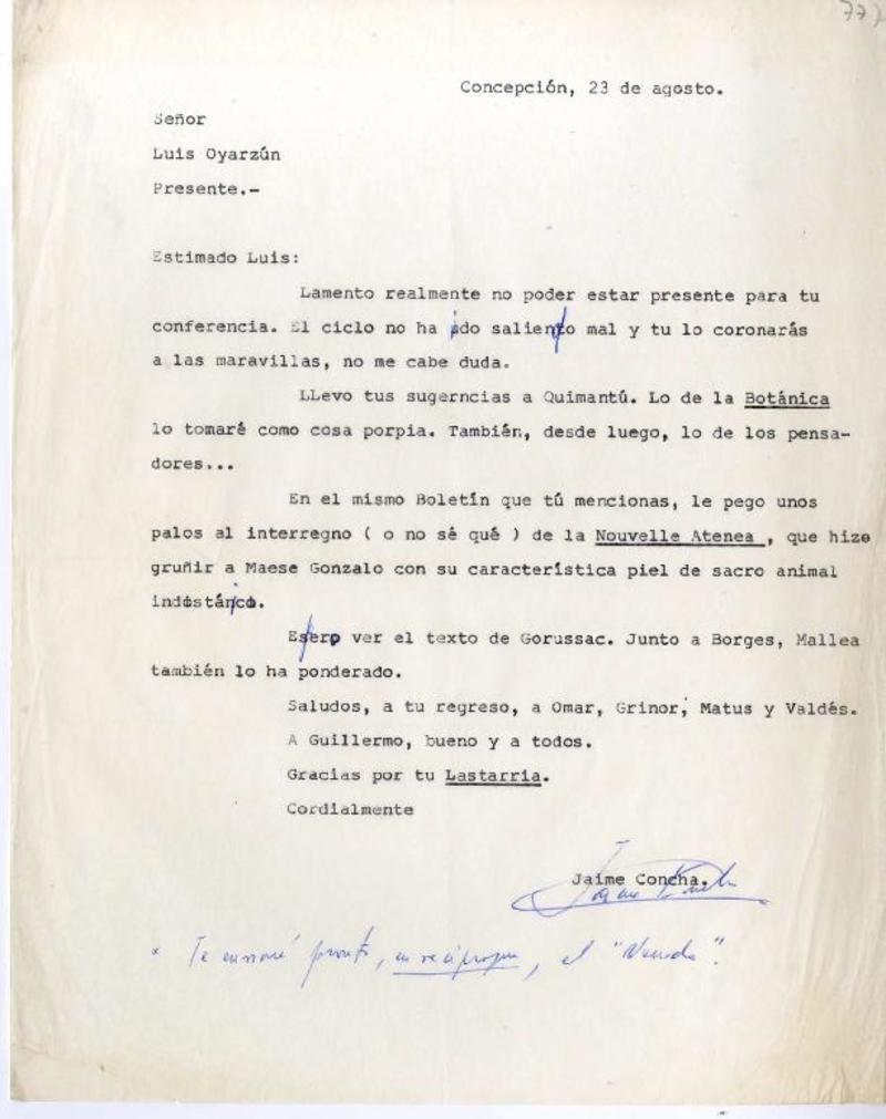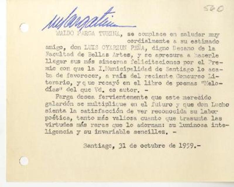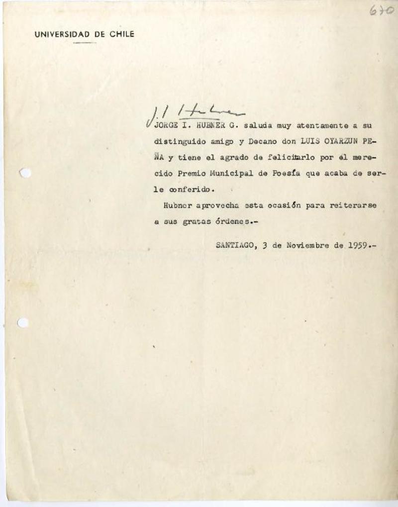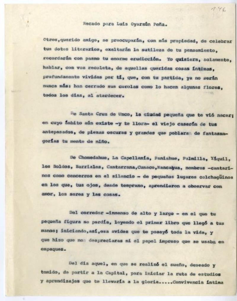 A Luis Oyarzún [manuscrito] Hortensia Peña.