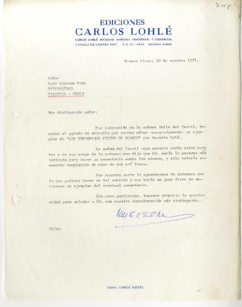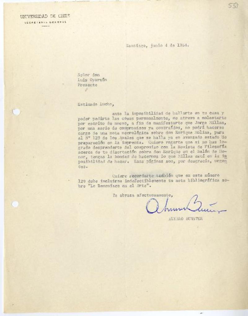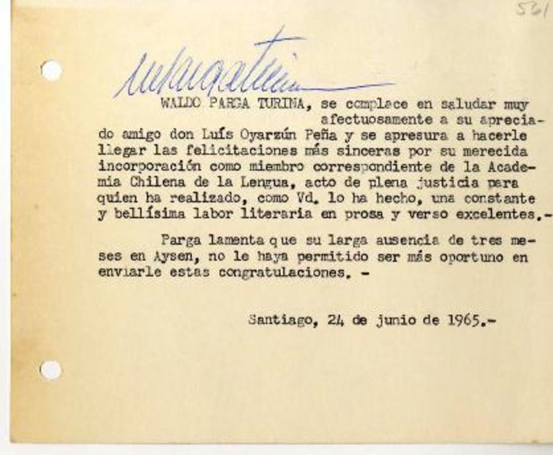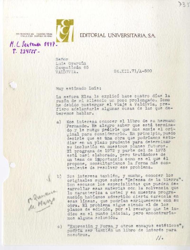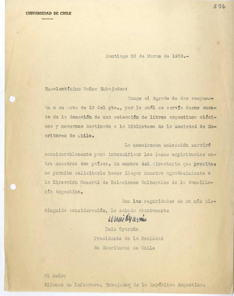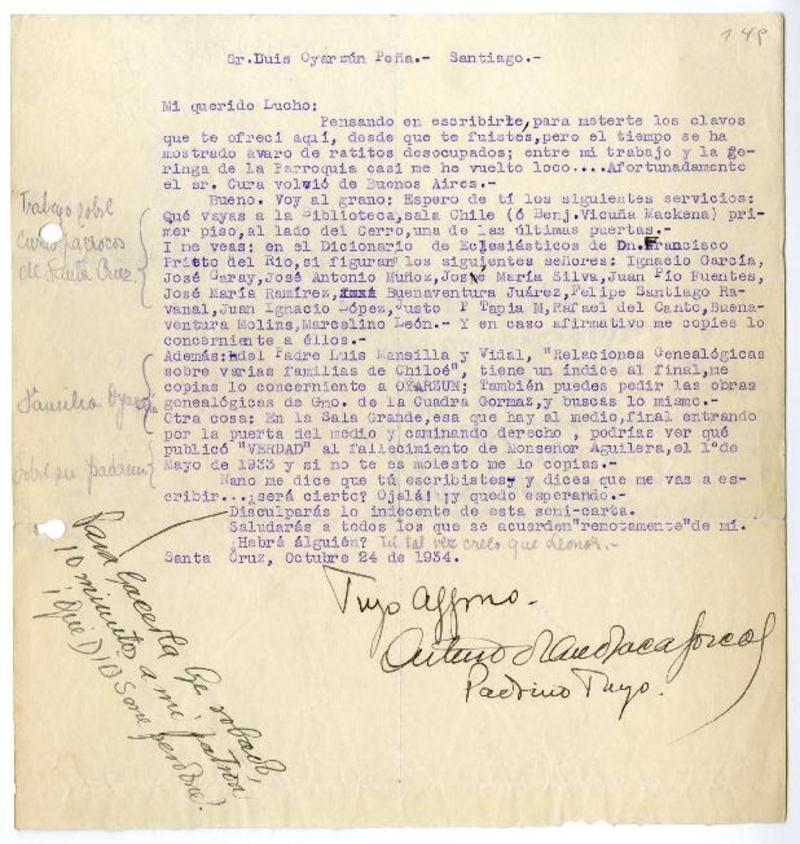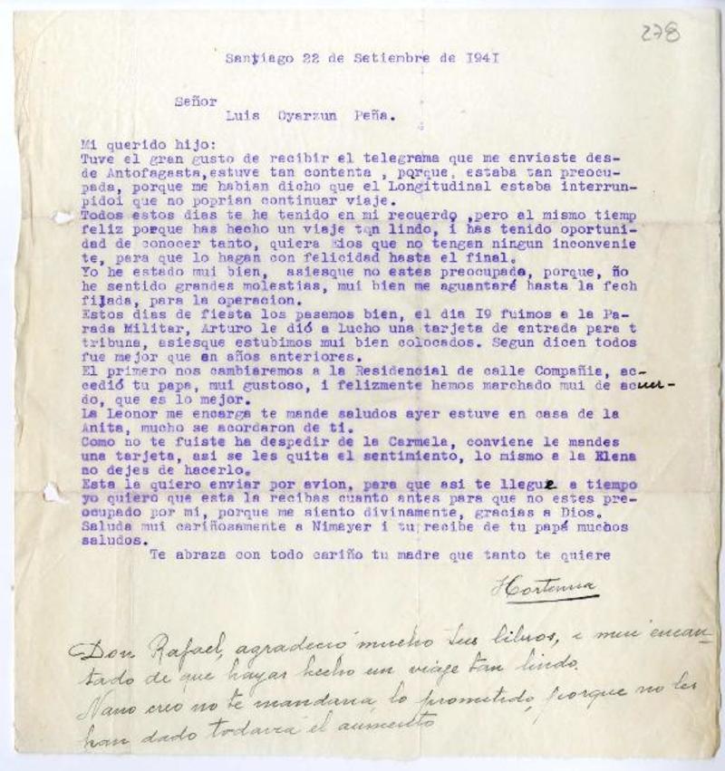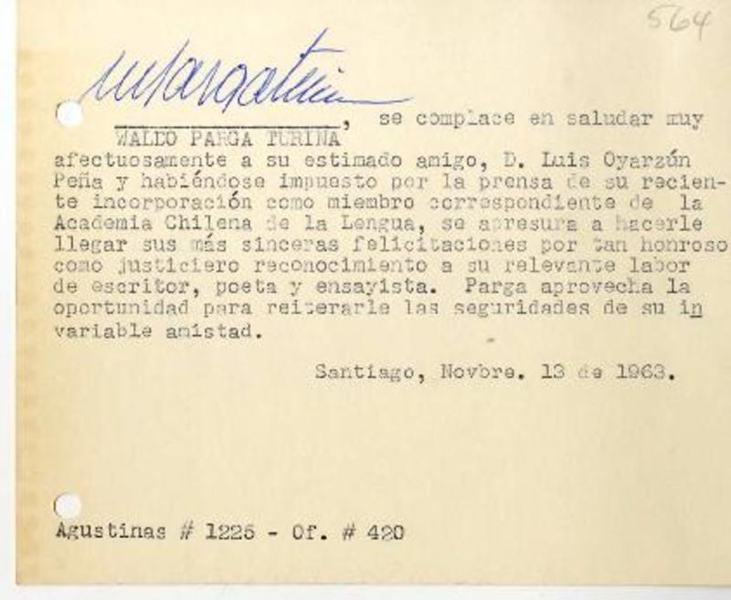 A Luis Oyarzún [manuscrito] Hortensia Peña.