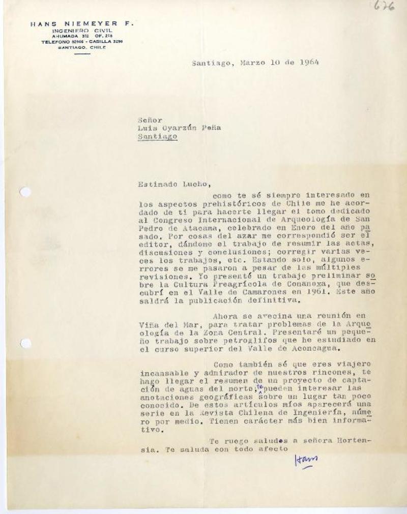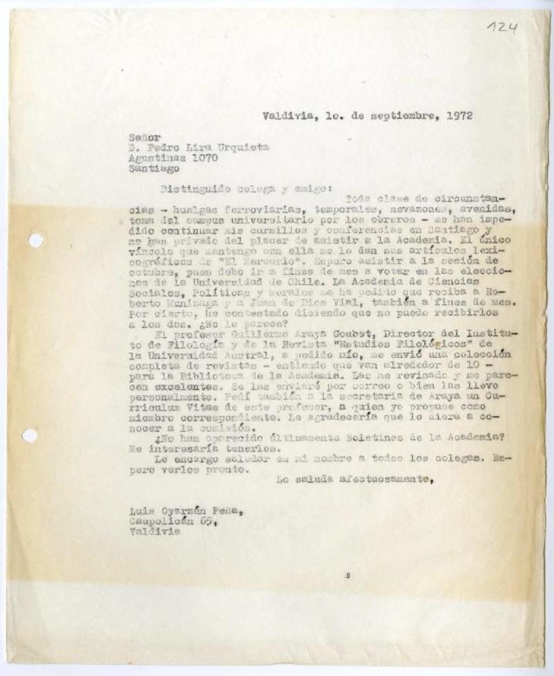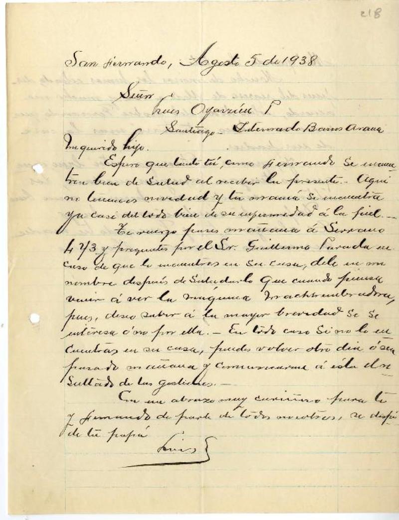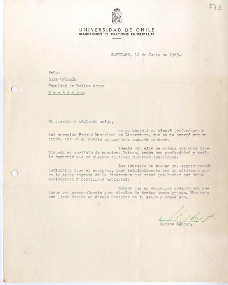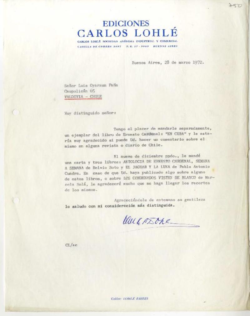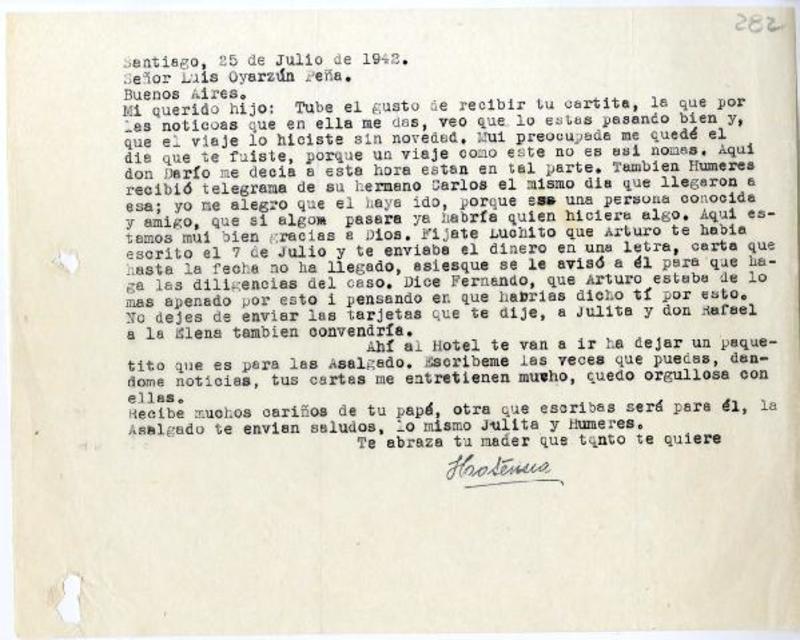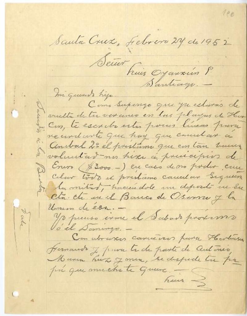 A Luis Oyarzún [manuscrito] Hortensia Peña.