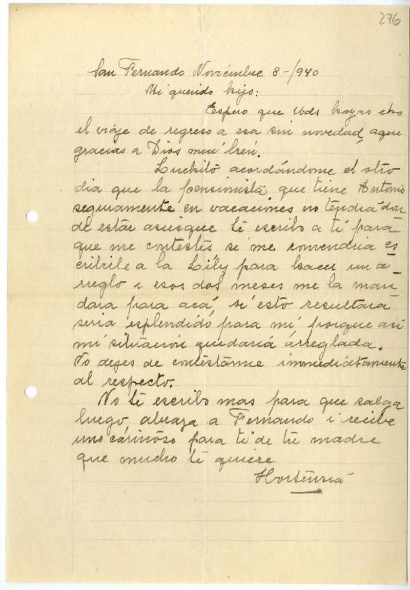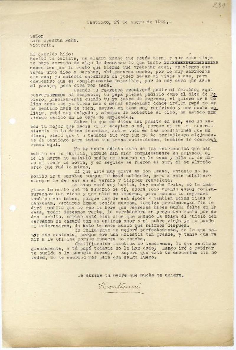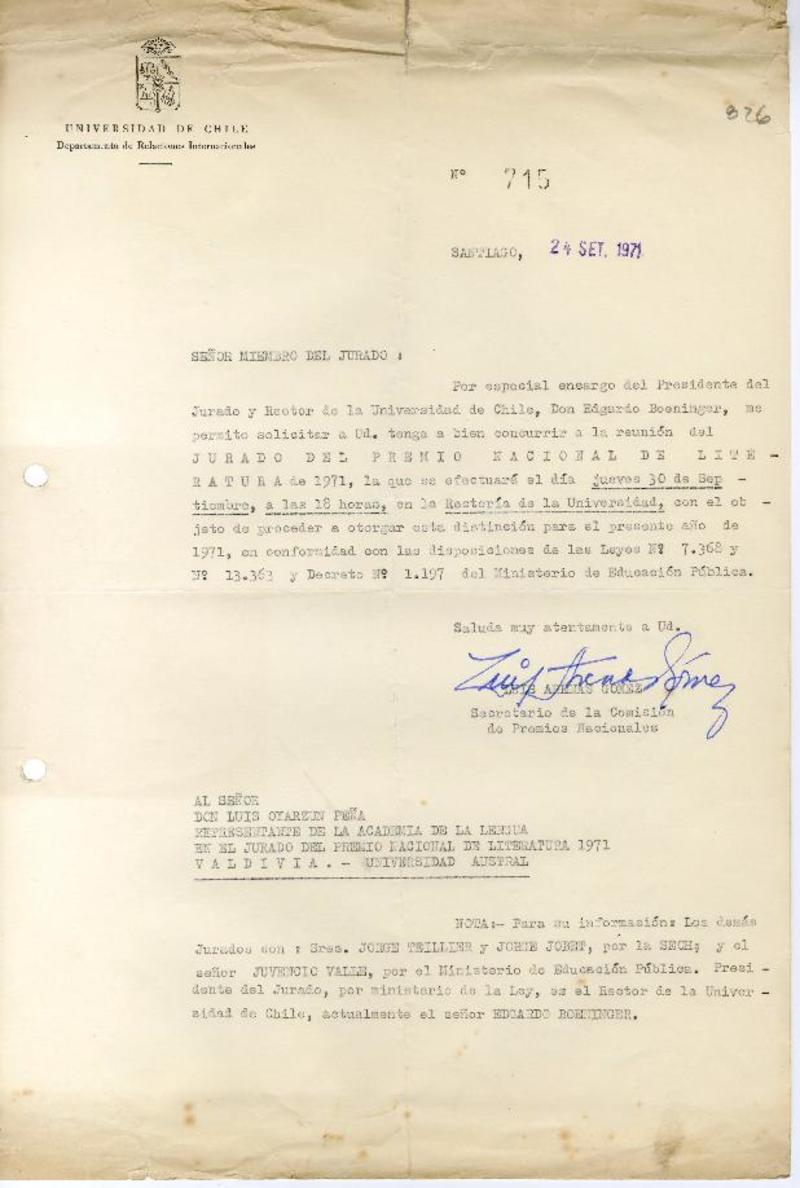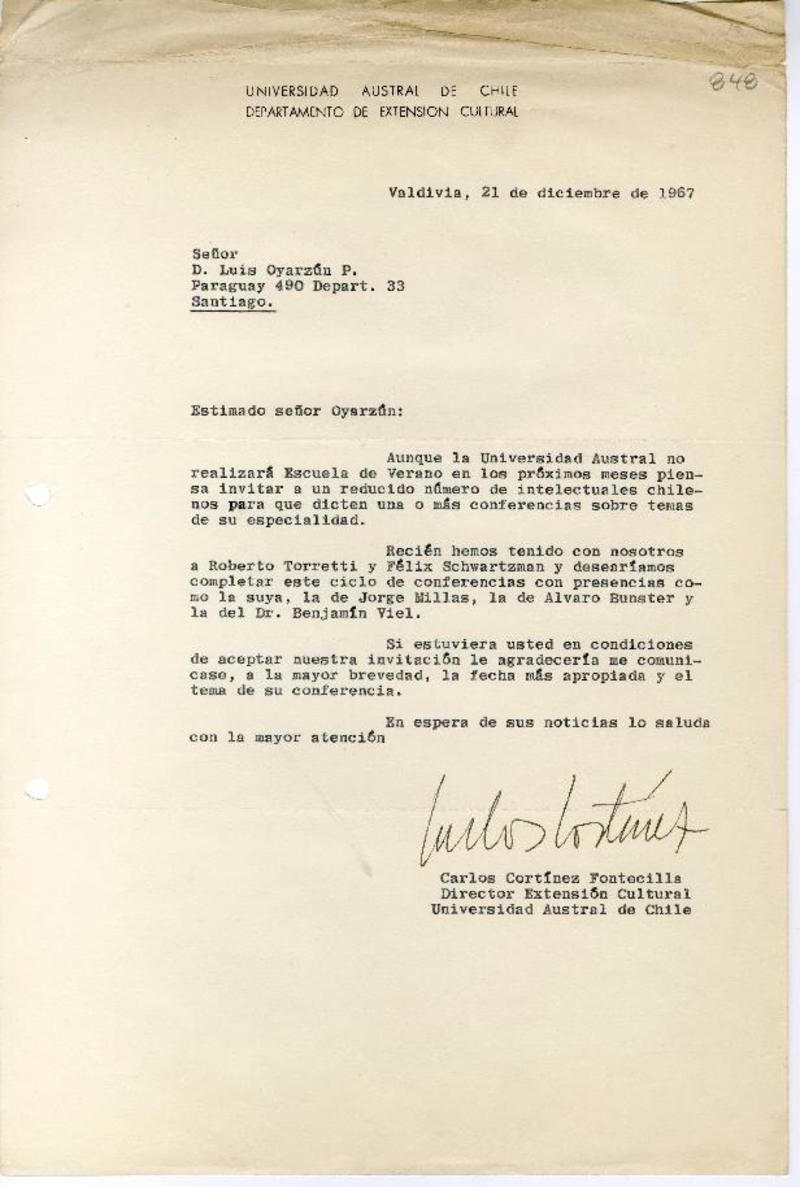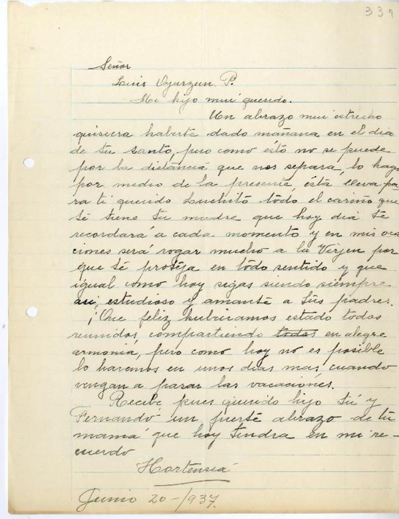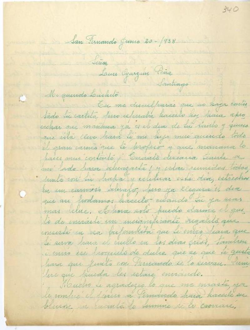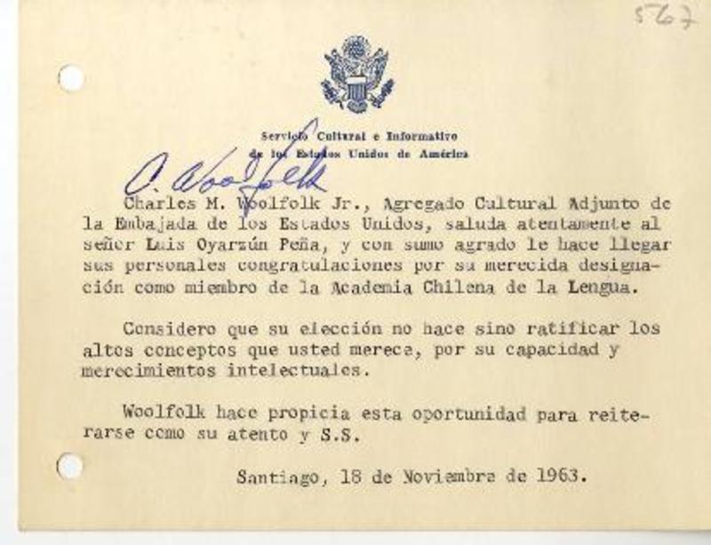 A Luis Oyarzún [manuscrito] Hortensia Peña.