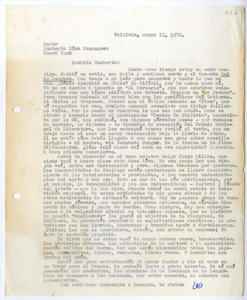 Archivo del Escritor / Humberto Díaz-Casanueva