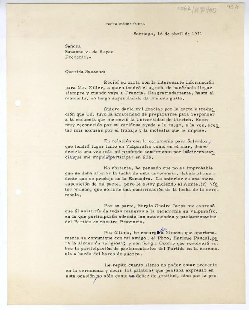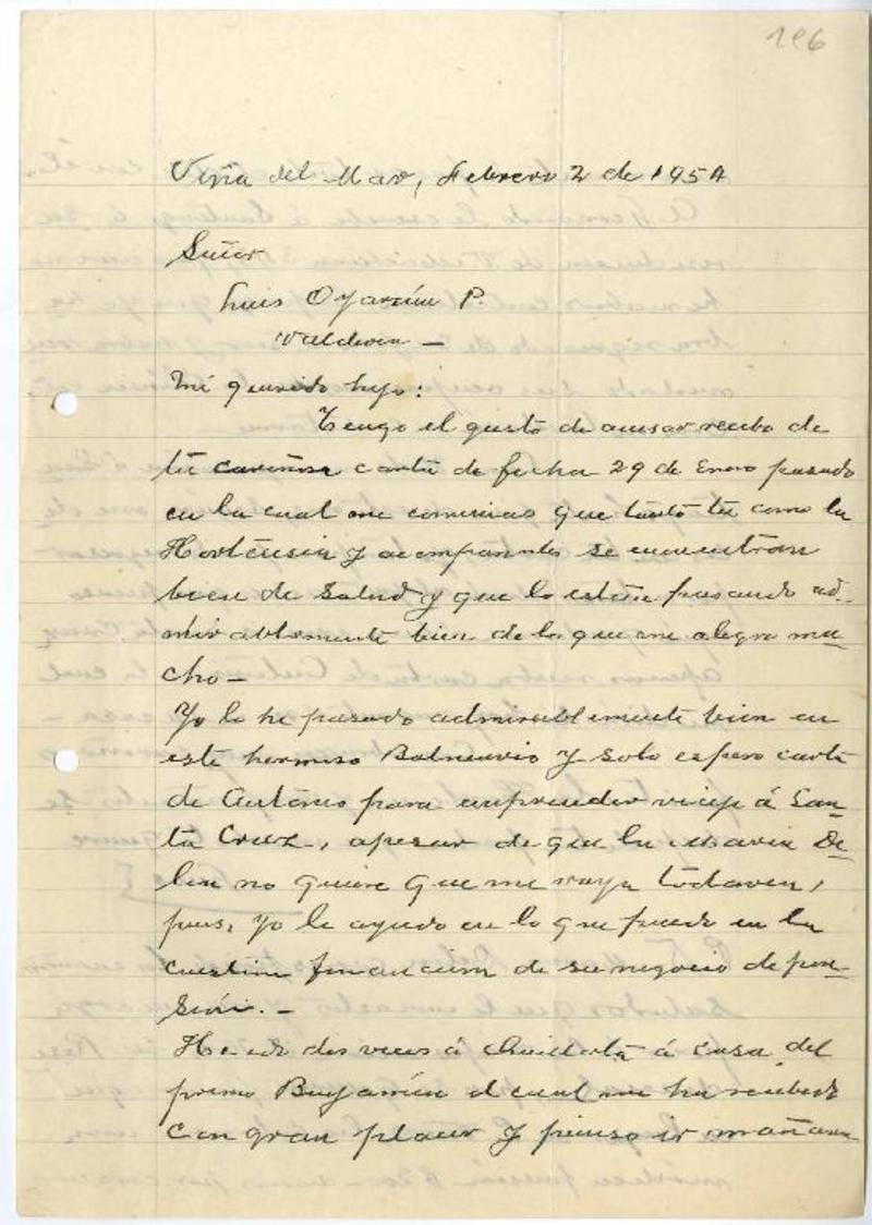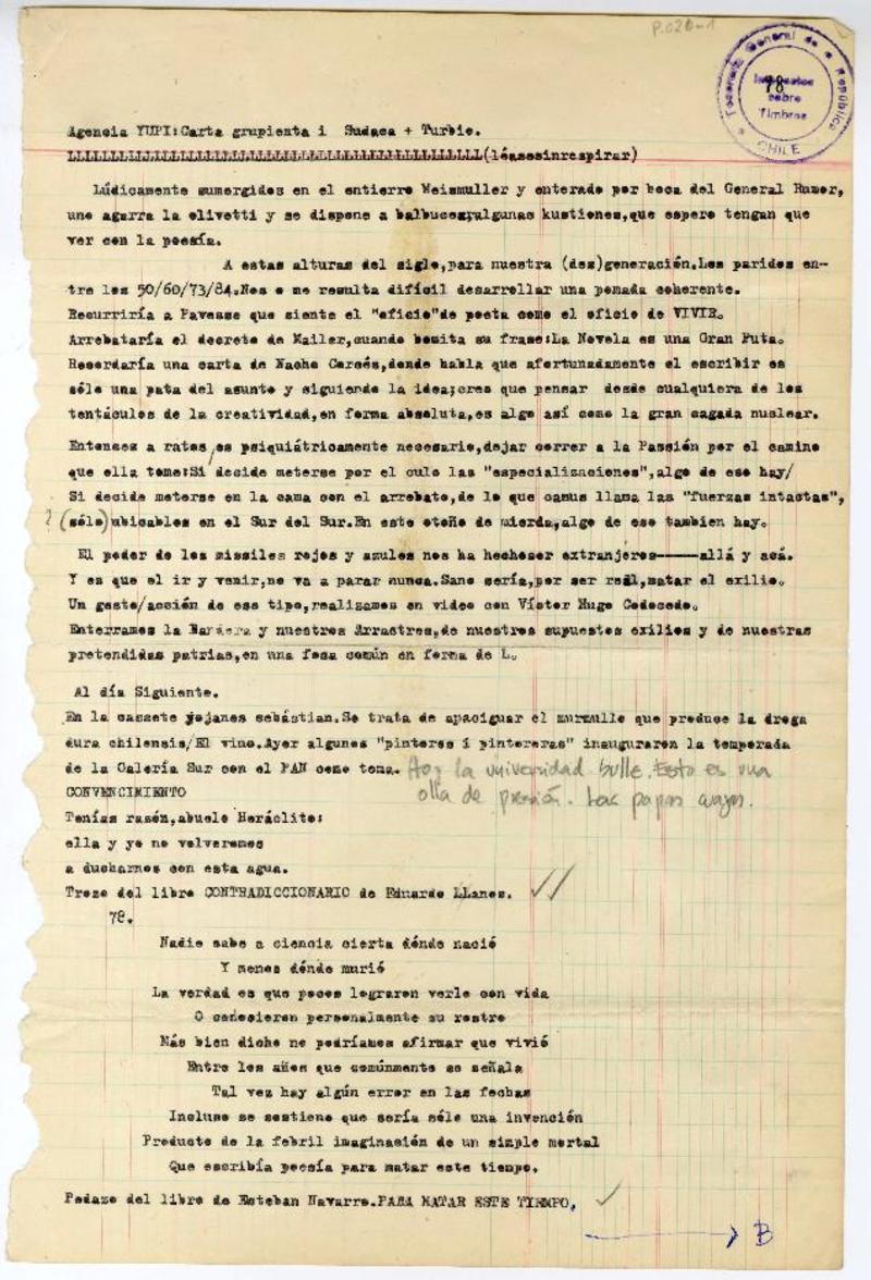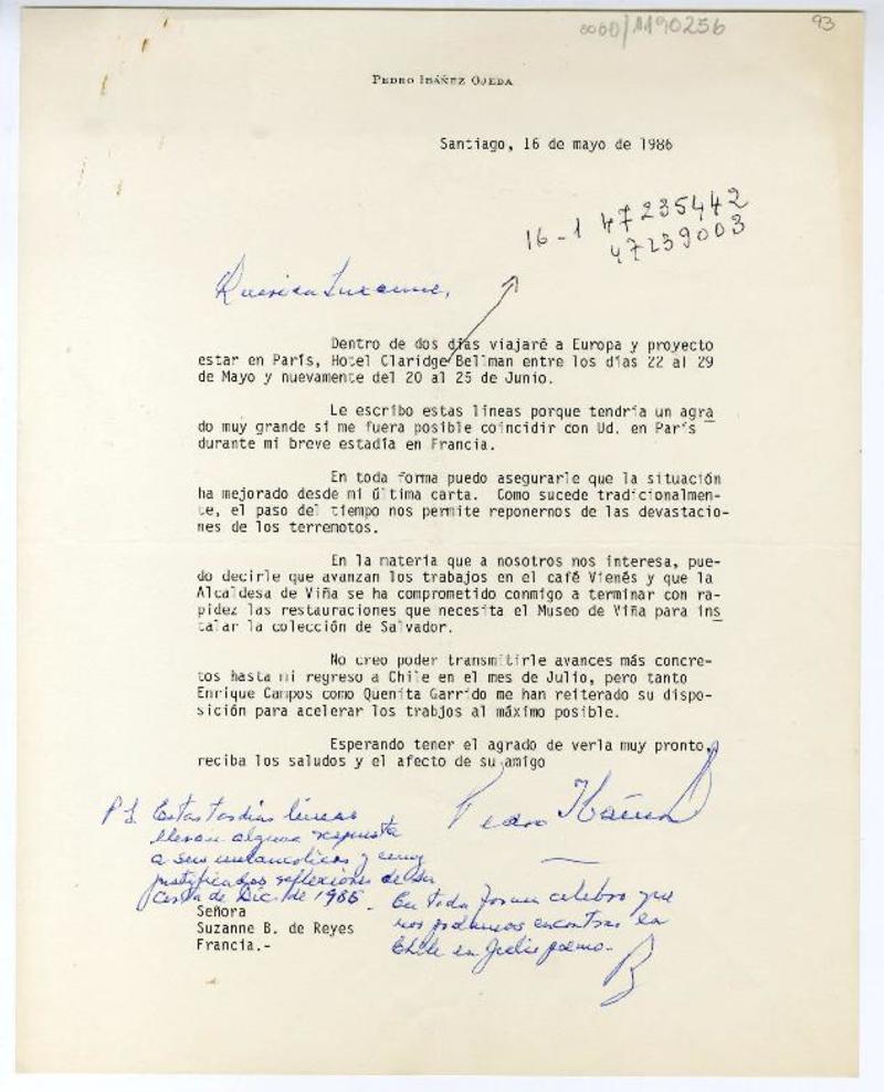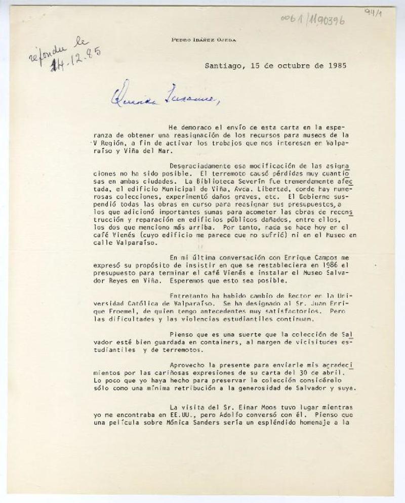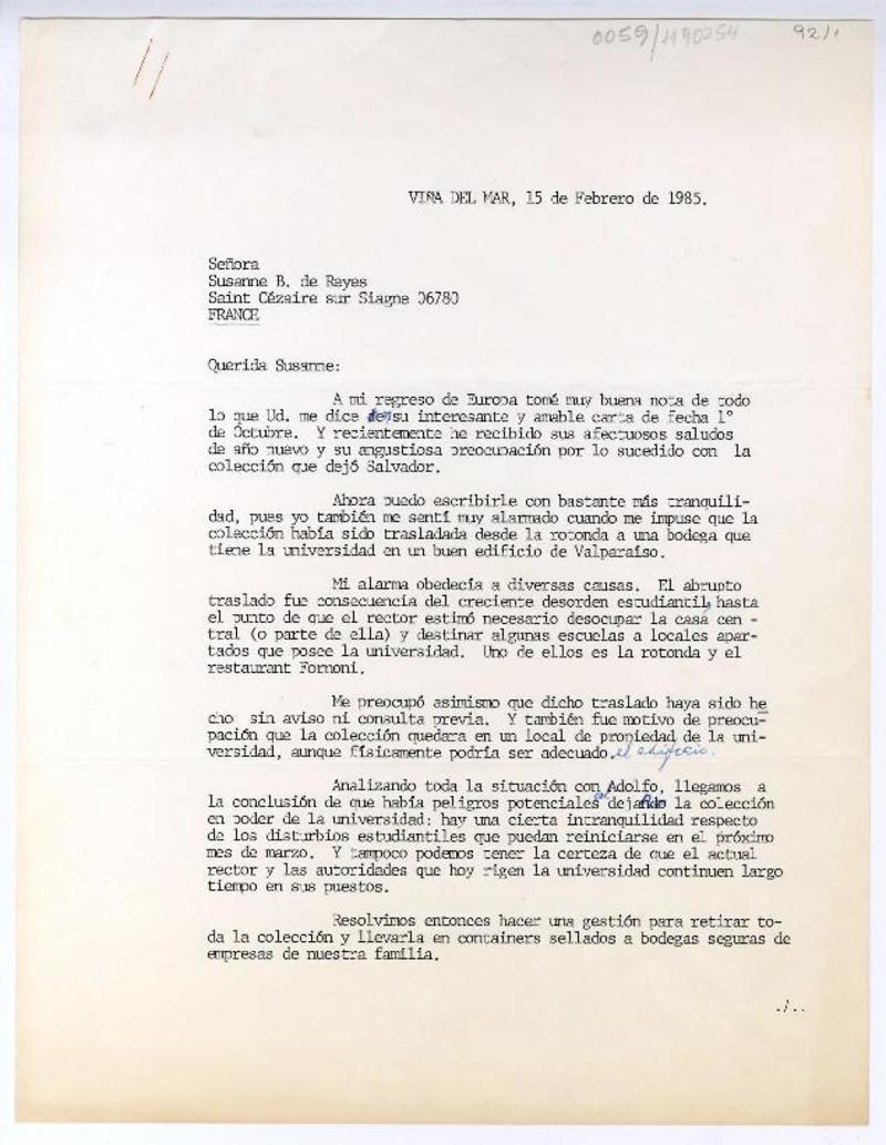 Viña del Mar, Chile [a] Suzanne Bertrand, Francia Carta, 1985 febrero 15, [manuscrito] Pedro Ibáñez Ojeda.