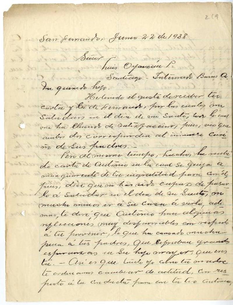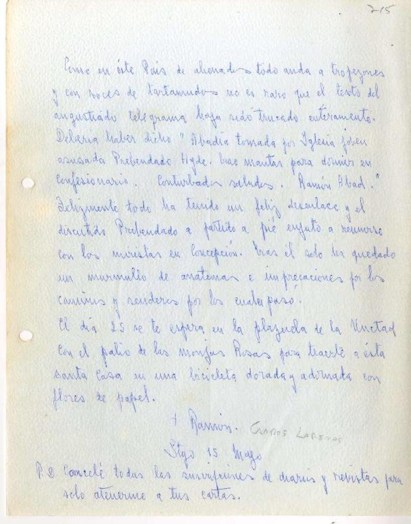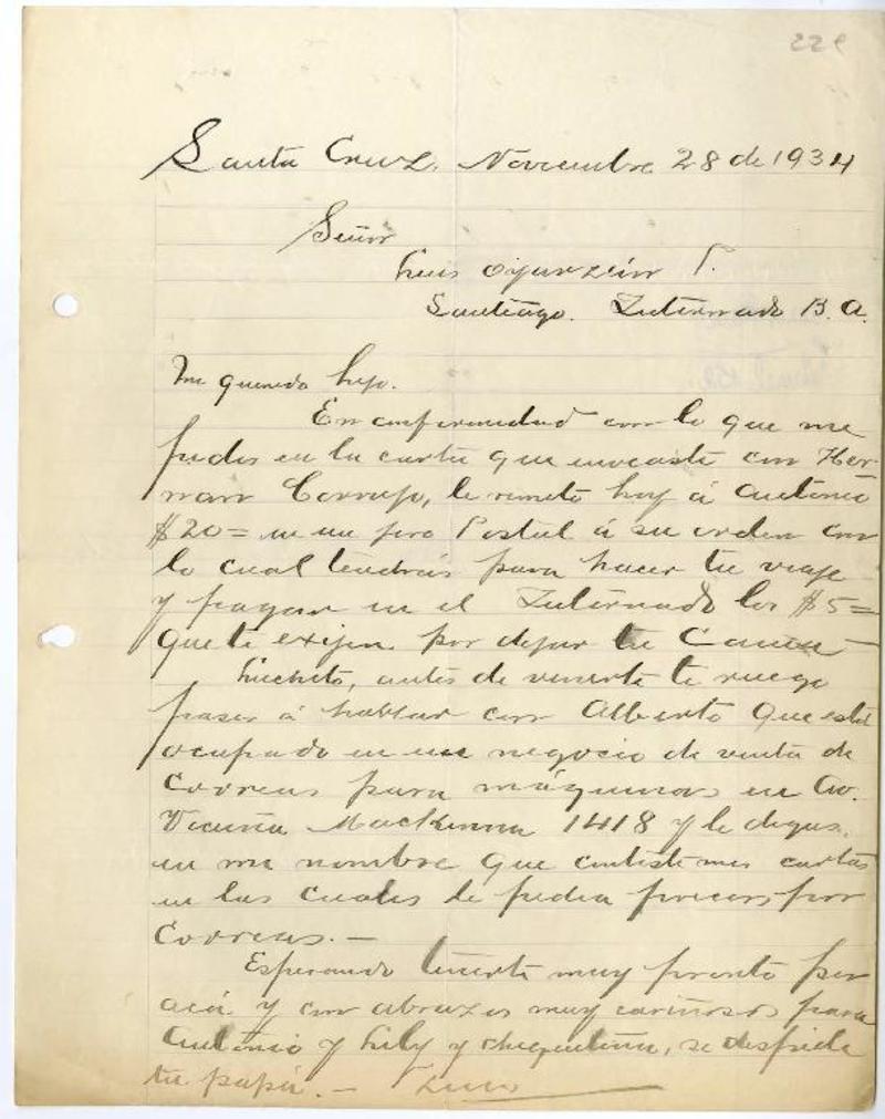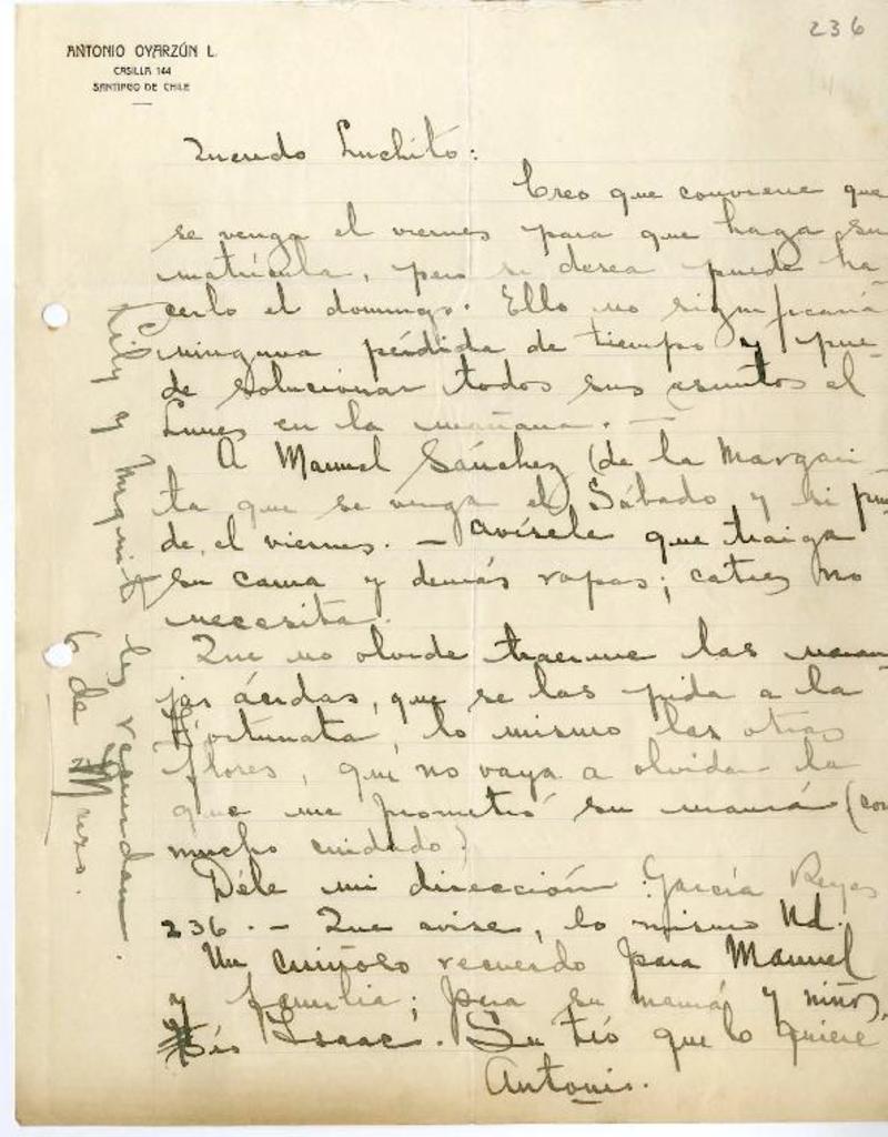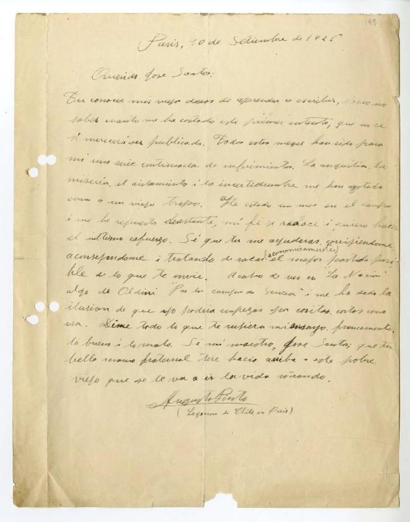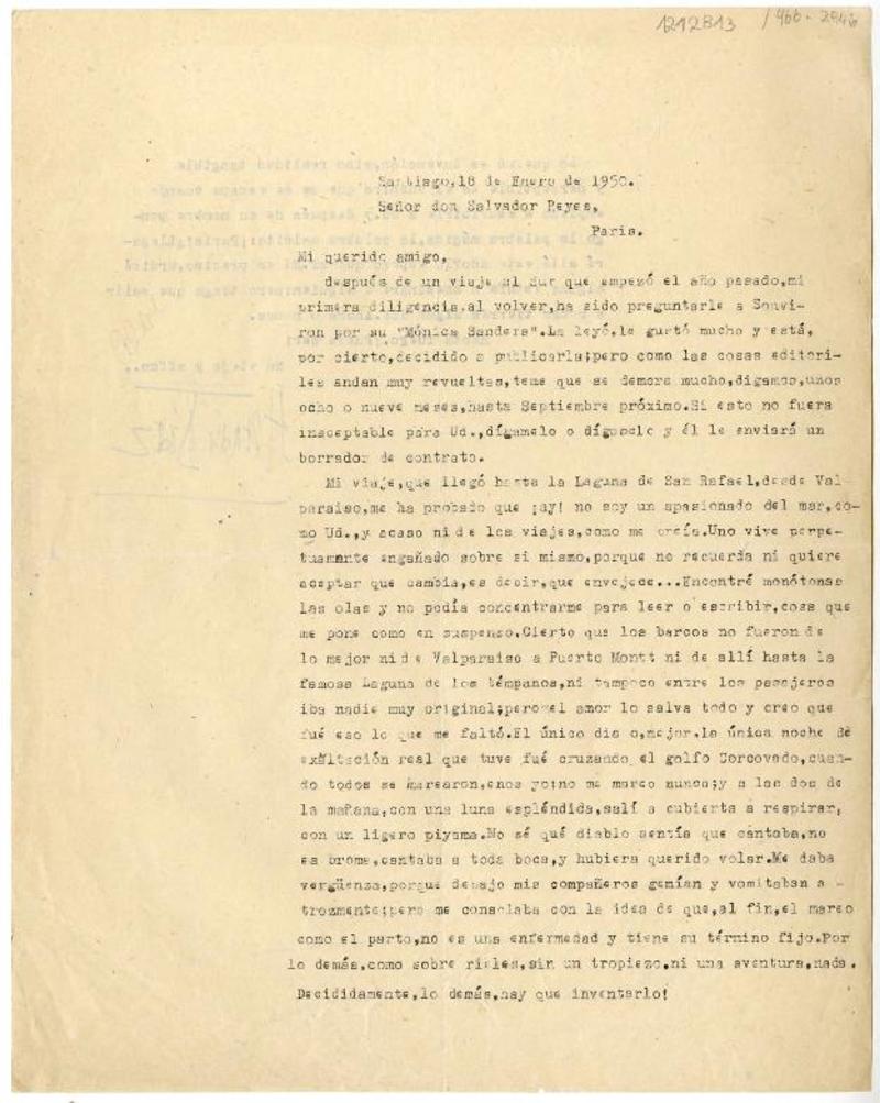 Sabella, Andrés - Correspondencia - Autores chilenos - Manuscritos chilenos - Reyes, Salvador
