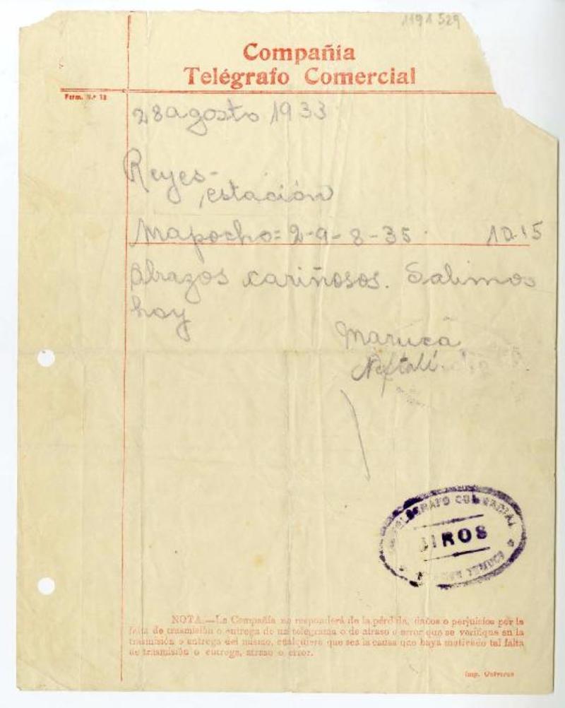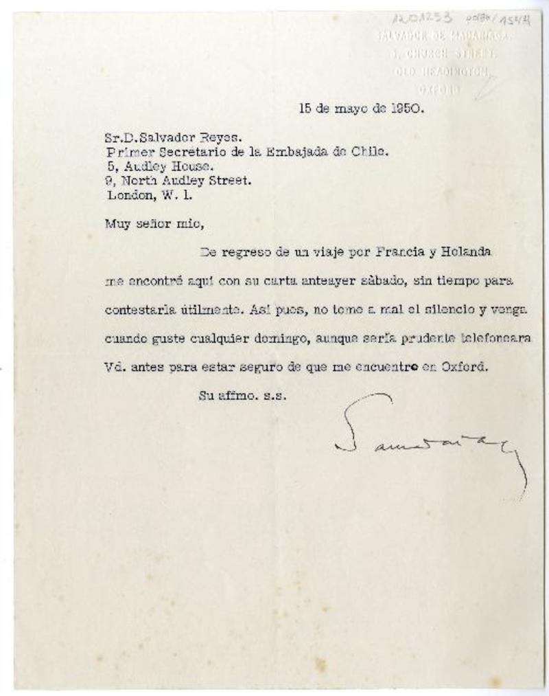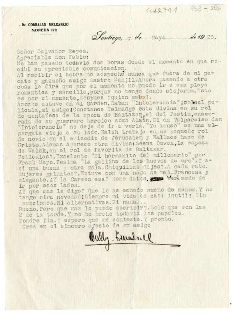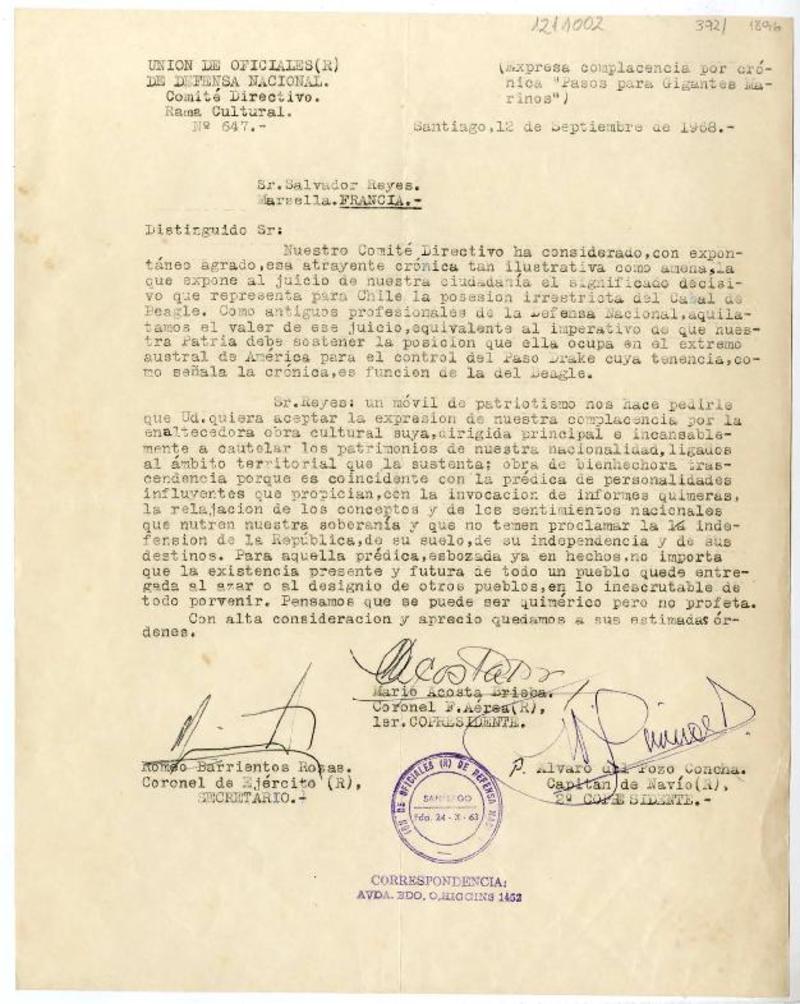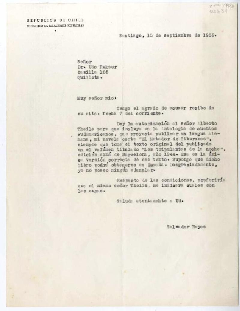 Geiger Stahr, Augusto - Correspondencia - Autores chilenos - Manuscritos chilenos - Reyes, Salvador