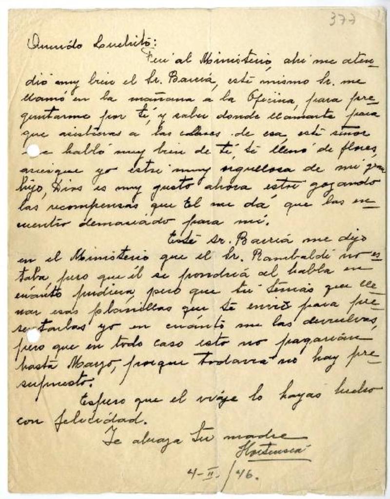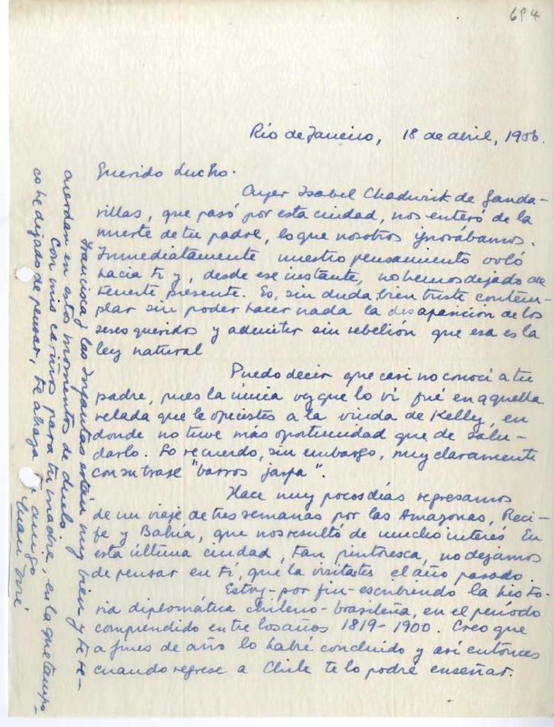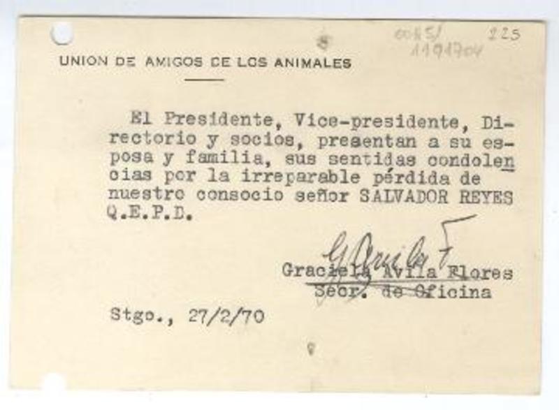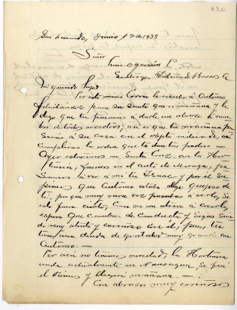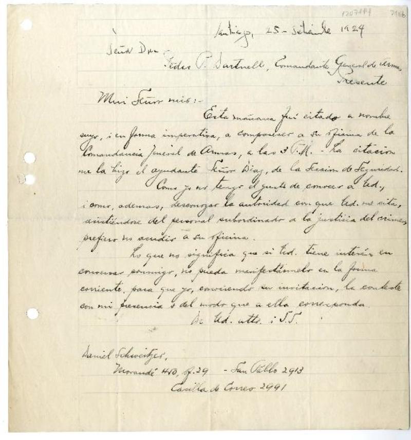 Geiger Stahr, Augusto - Correspondencia - Autores chilenos - Manuscritos chilenos - Reyes, Salvador