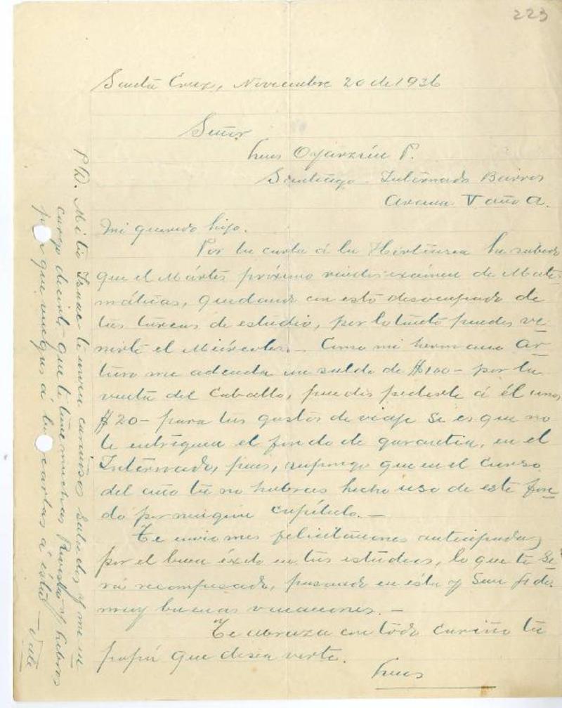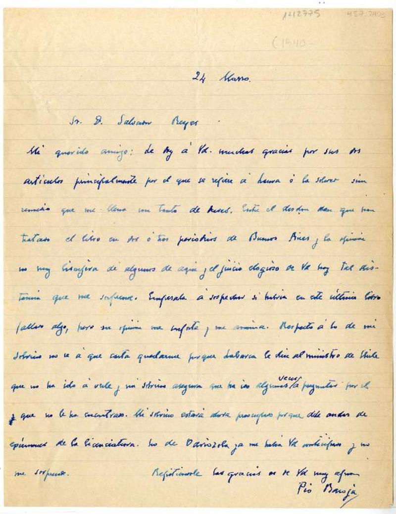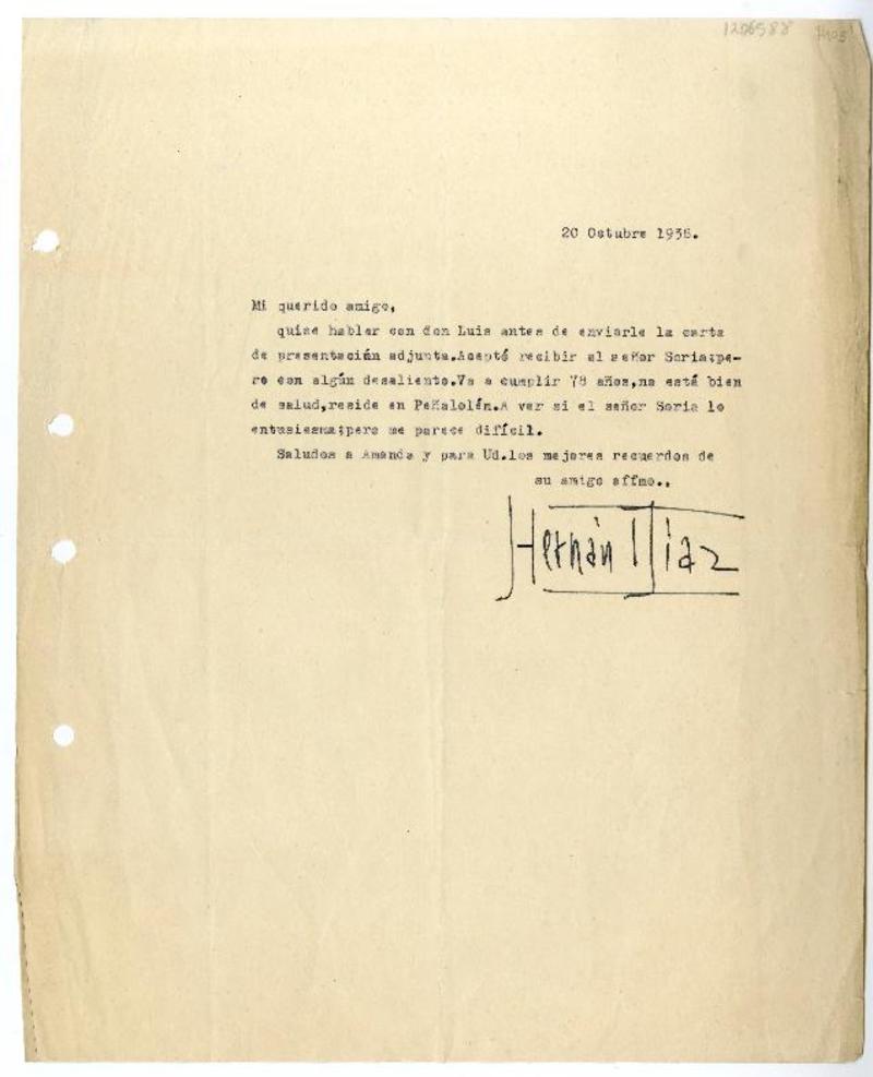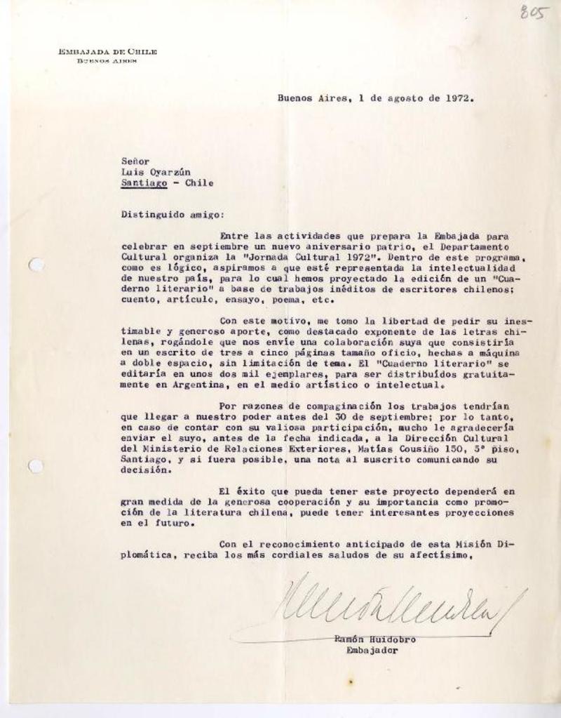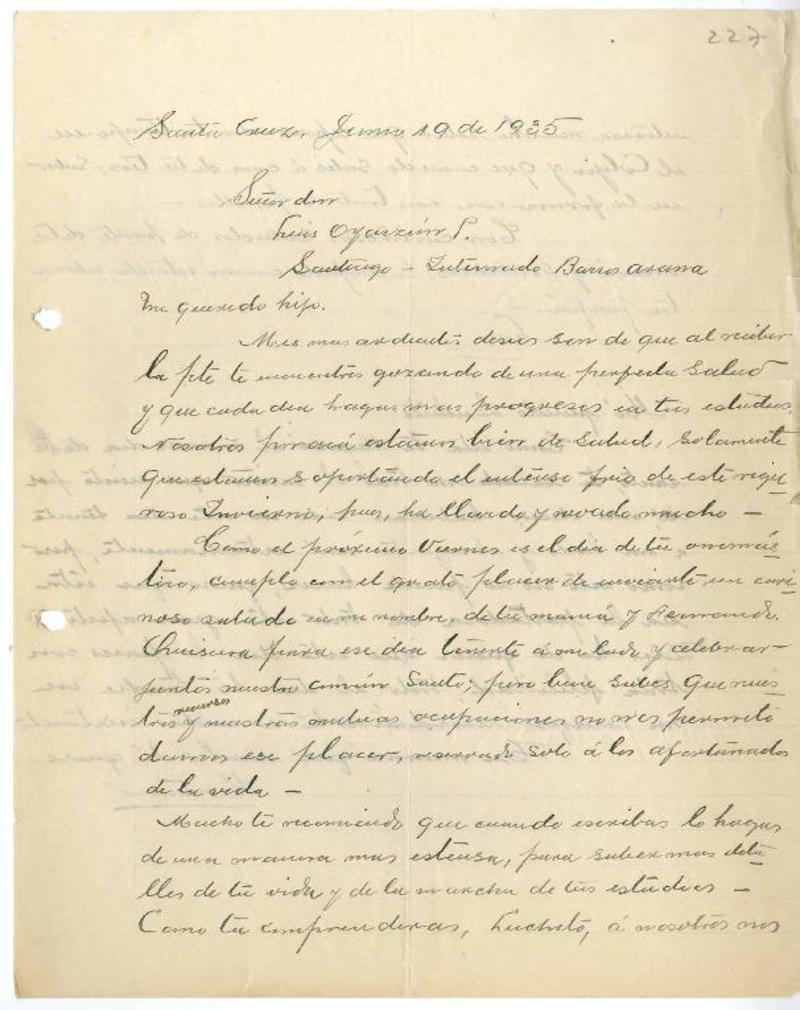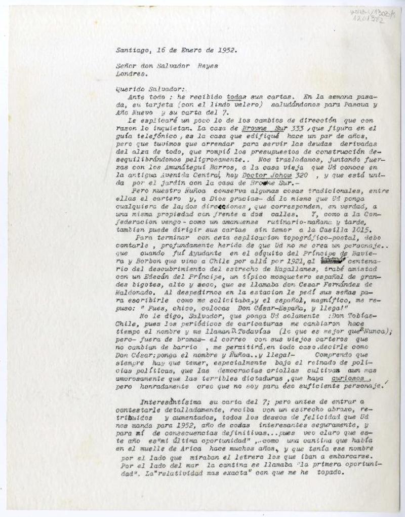 Díaz Buzeta, Santiago - Correspondencia - Autores chilenos - Manuscritos - Reyes, Salvador