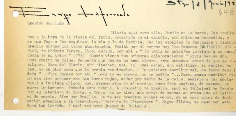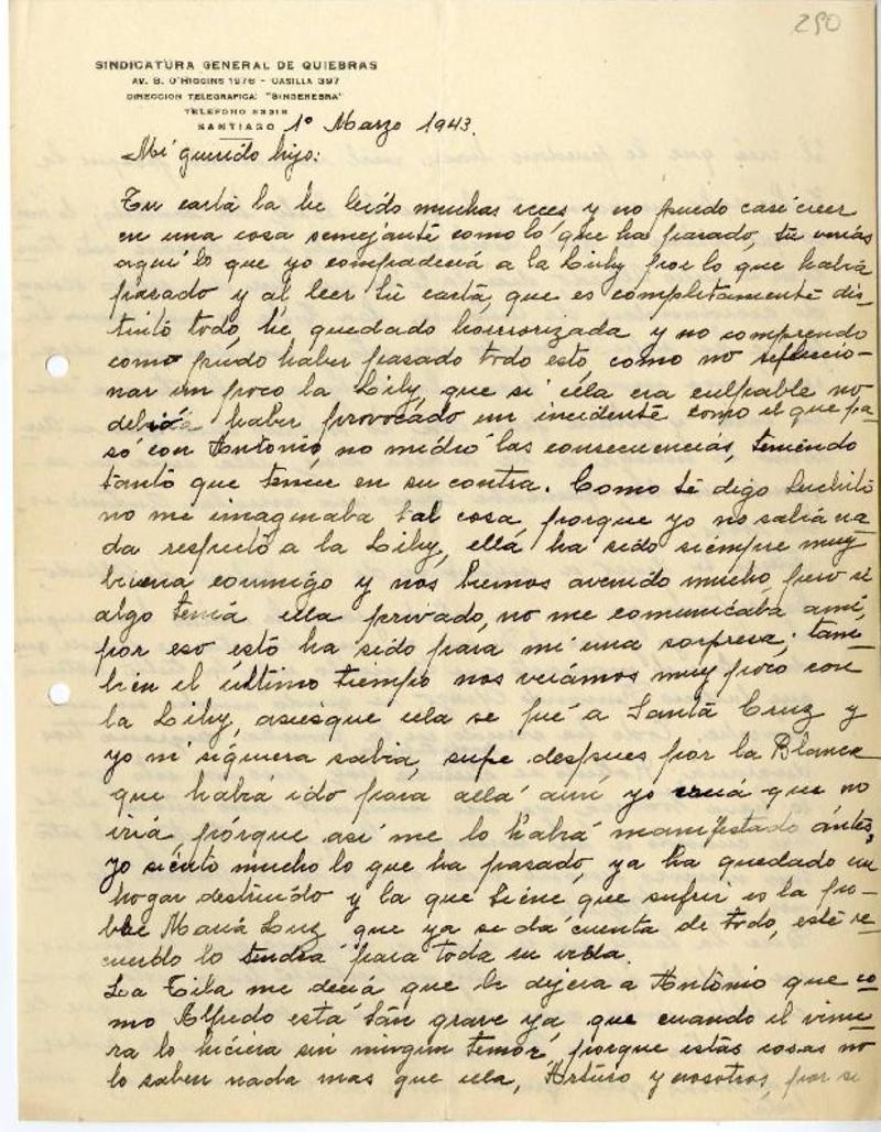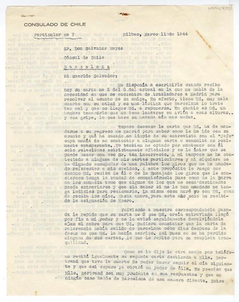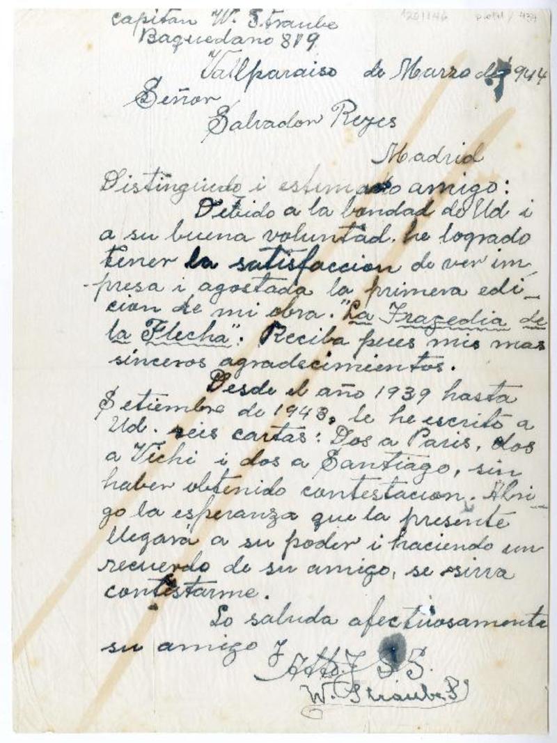 Valparaíso, Chile [a] Salvador Reyes, Madrid, España Carta, 1944 marzo, [manuscrito] Williams Straube S.