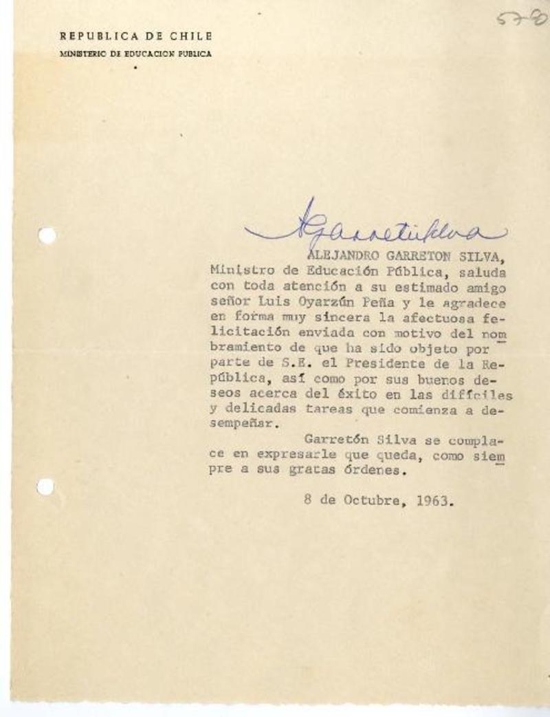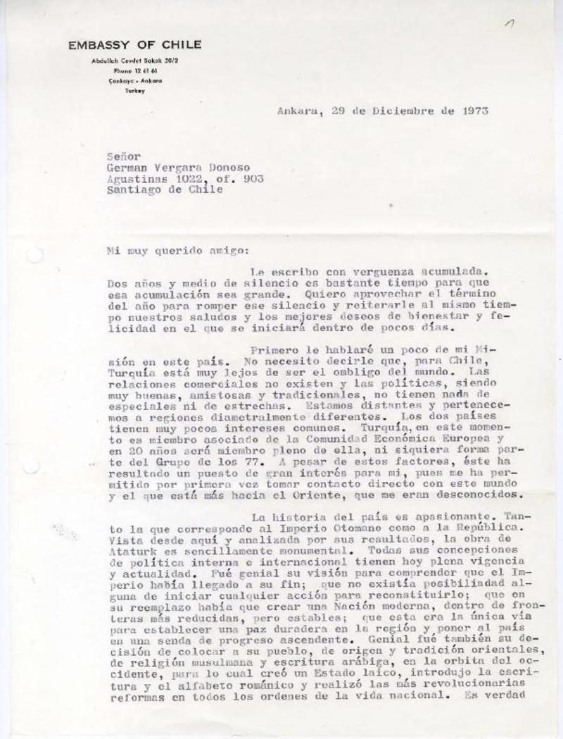 Ankara, Turquia [a] Ministerio de Relaciones Exteriores (Chile) Oficios, Entre 1962 y 1963, [manuscrito] Salvador Reyes.