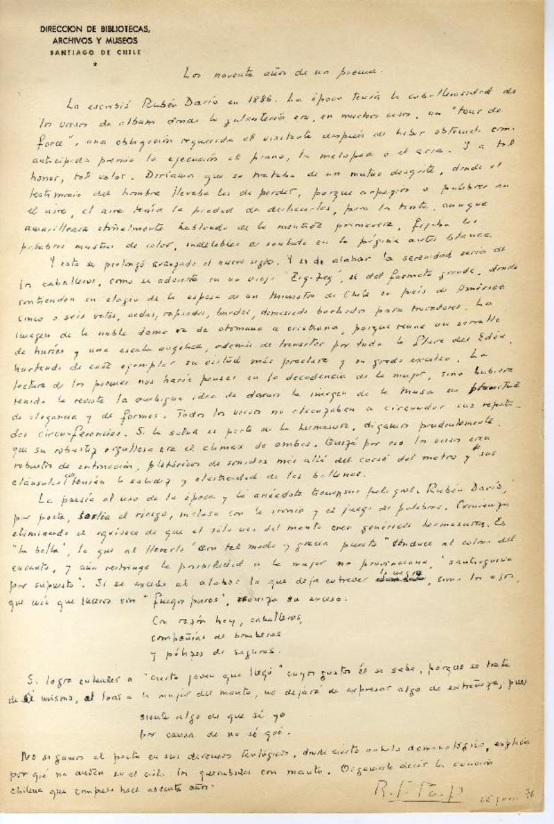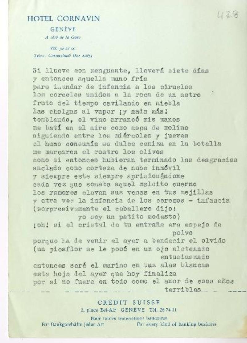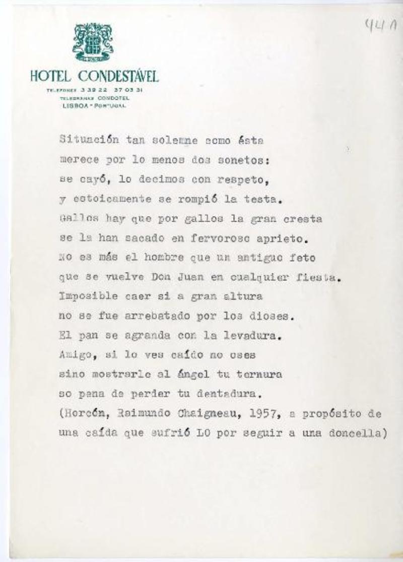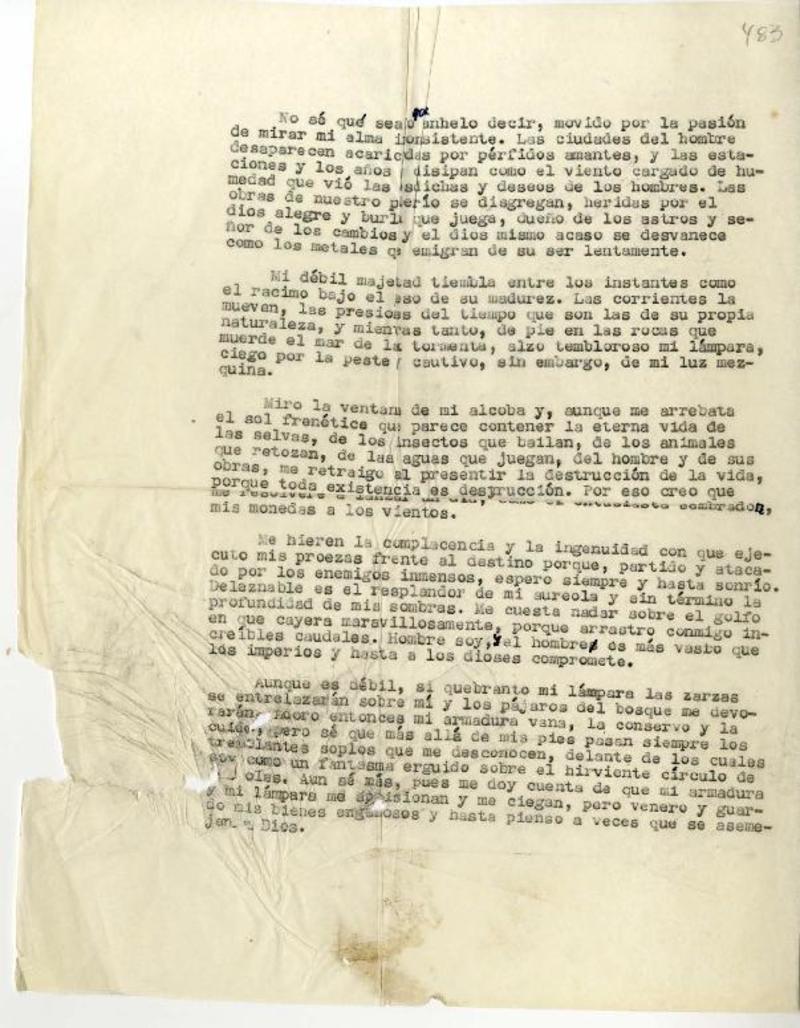 [Yo no creo haber vivido...] : [manuscrito] [Oscar Castro].