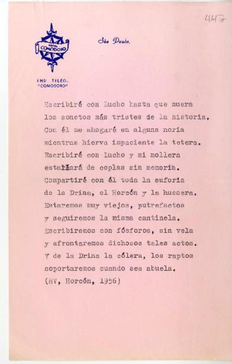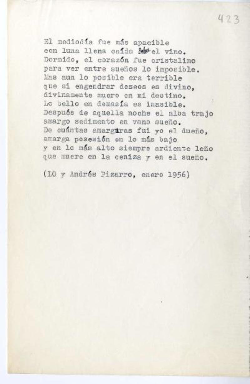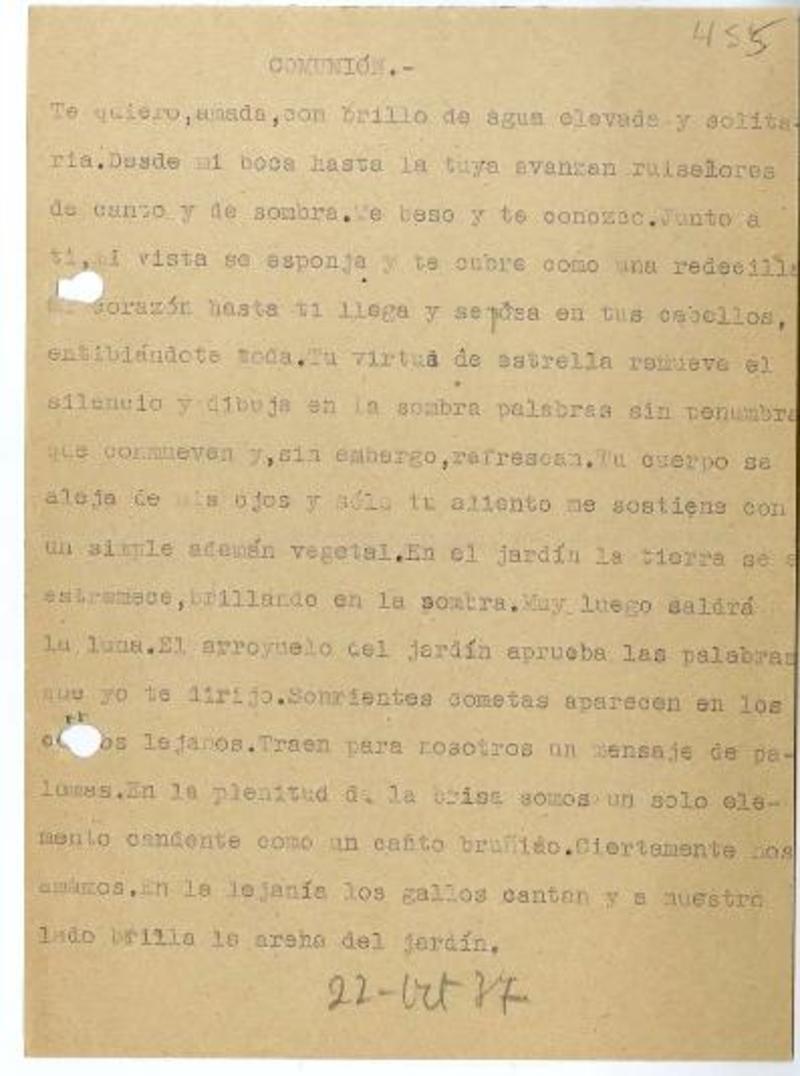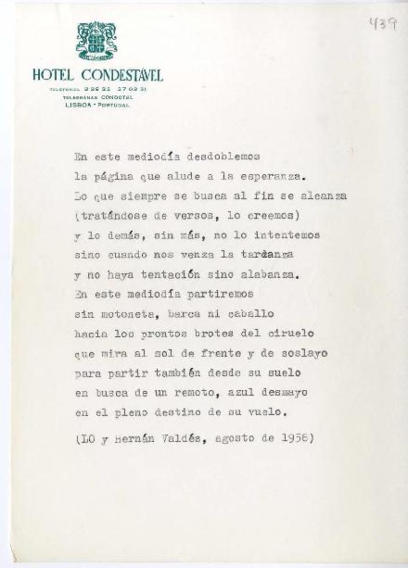 [Yo te concedo. Niña, la luz, y te consagro...]. [manuscrito] Oscar Castro.